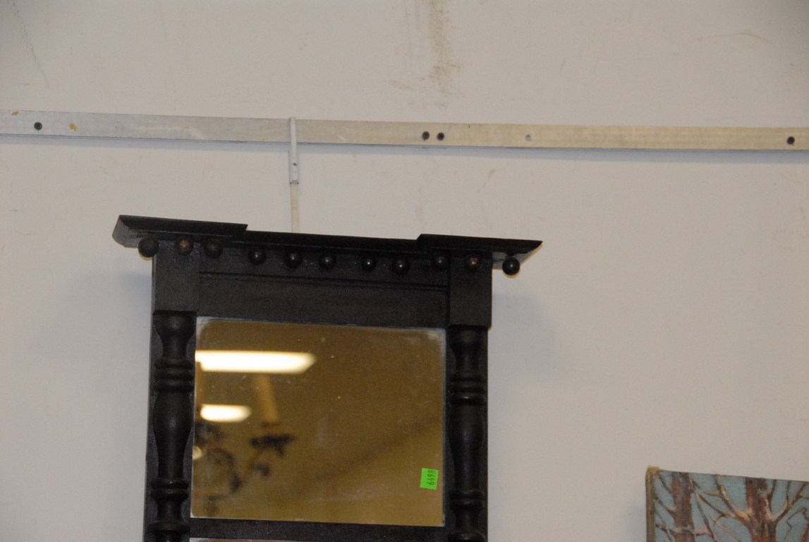 Lot 341: Federal mahogany two part mirror having turned columns and original paper label on reverse Ruggles Eagle Looking Glass, Hartford 182…