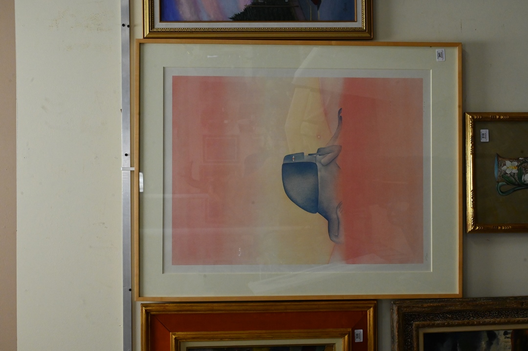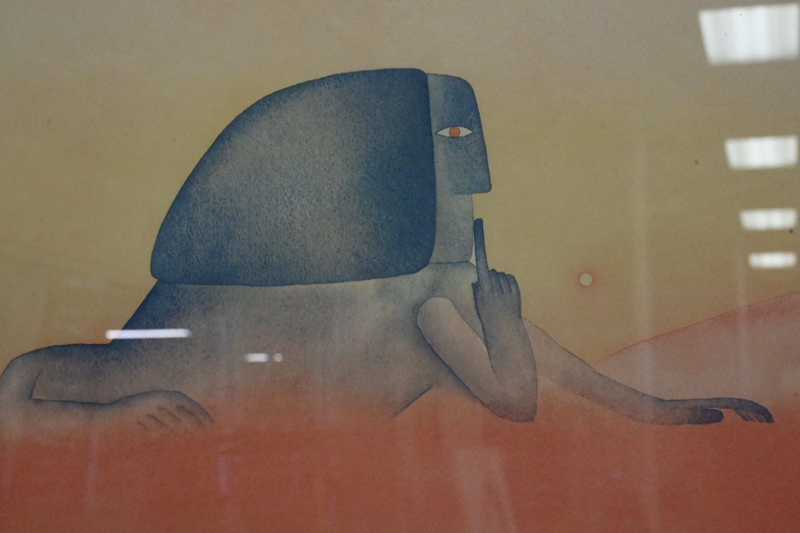 Jean Michel Folon (1934 -2005), Sphinx, serigraph, pencil signed and numbered 105/200, 32″ x 25″.