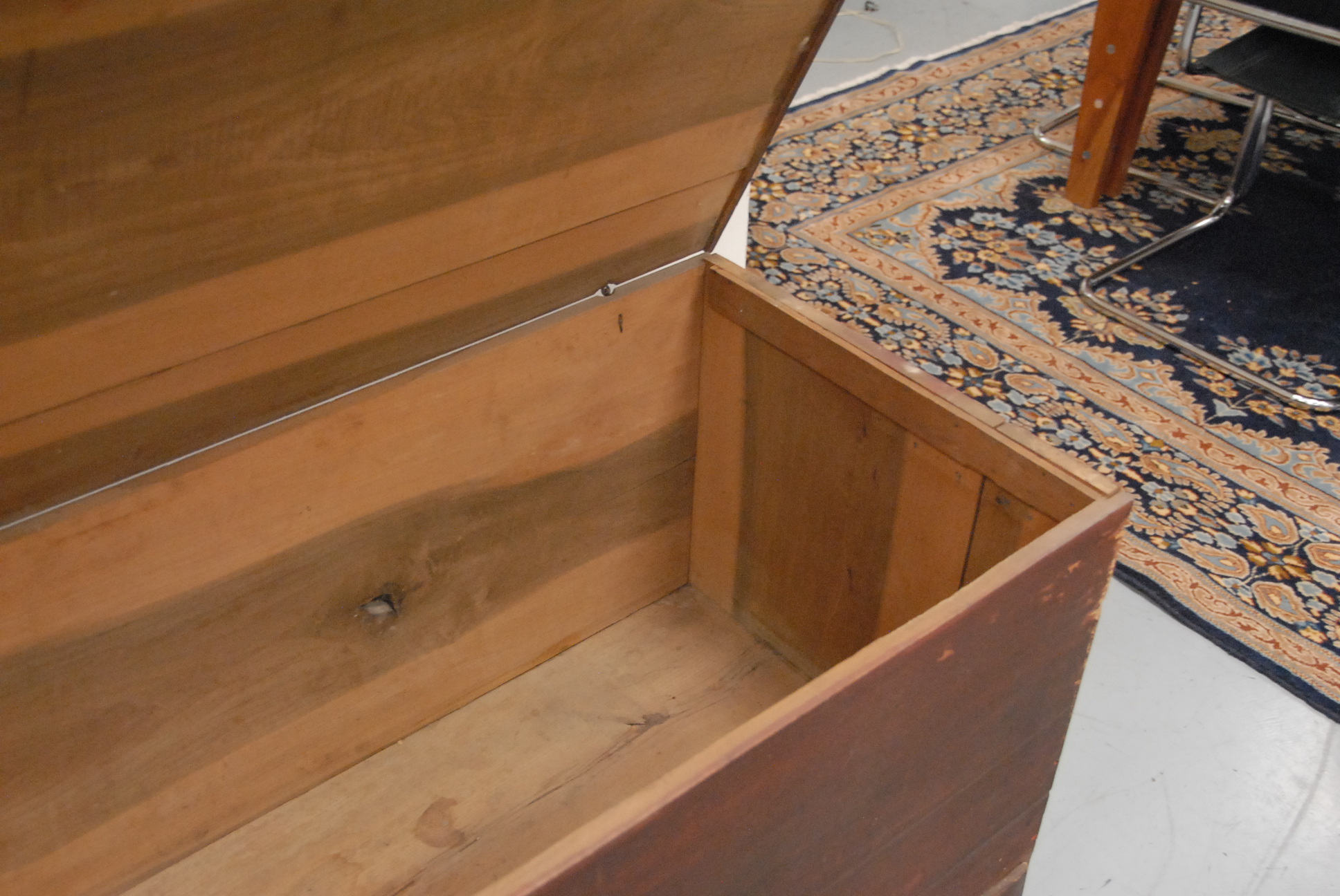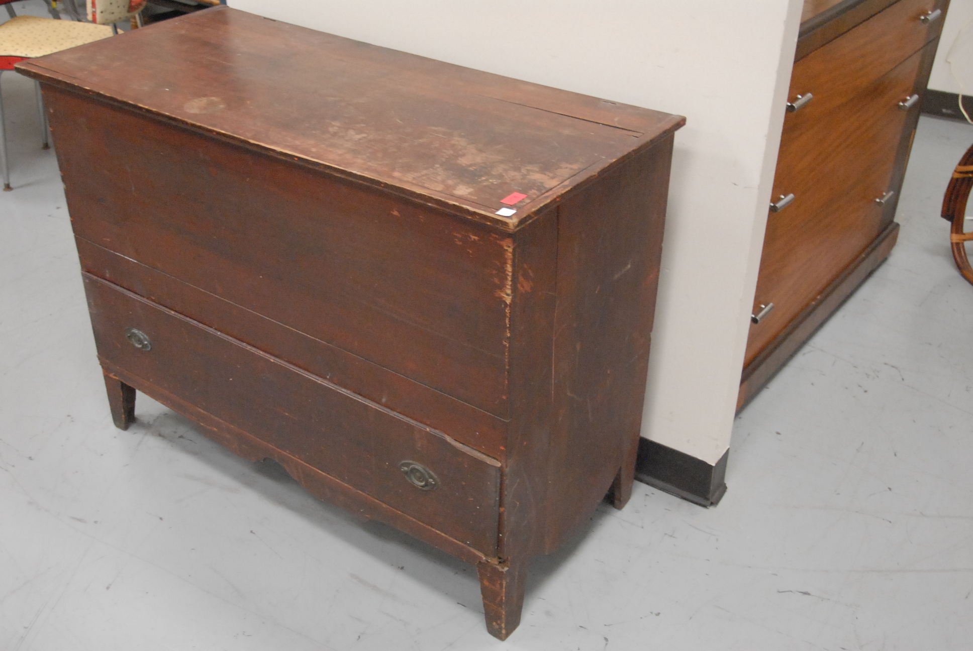 Primitive lift top blanket chest with drawer, circa 1790-1810.
