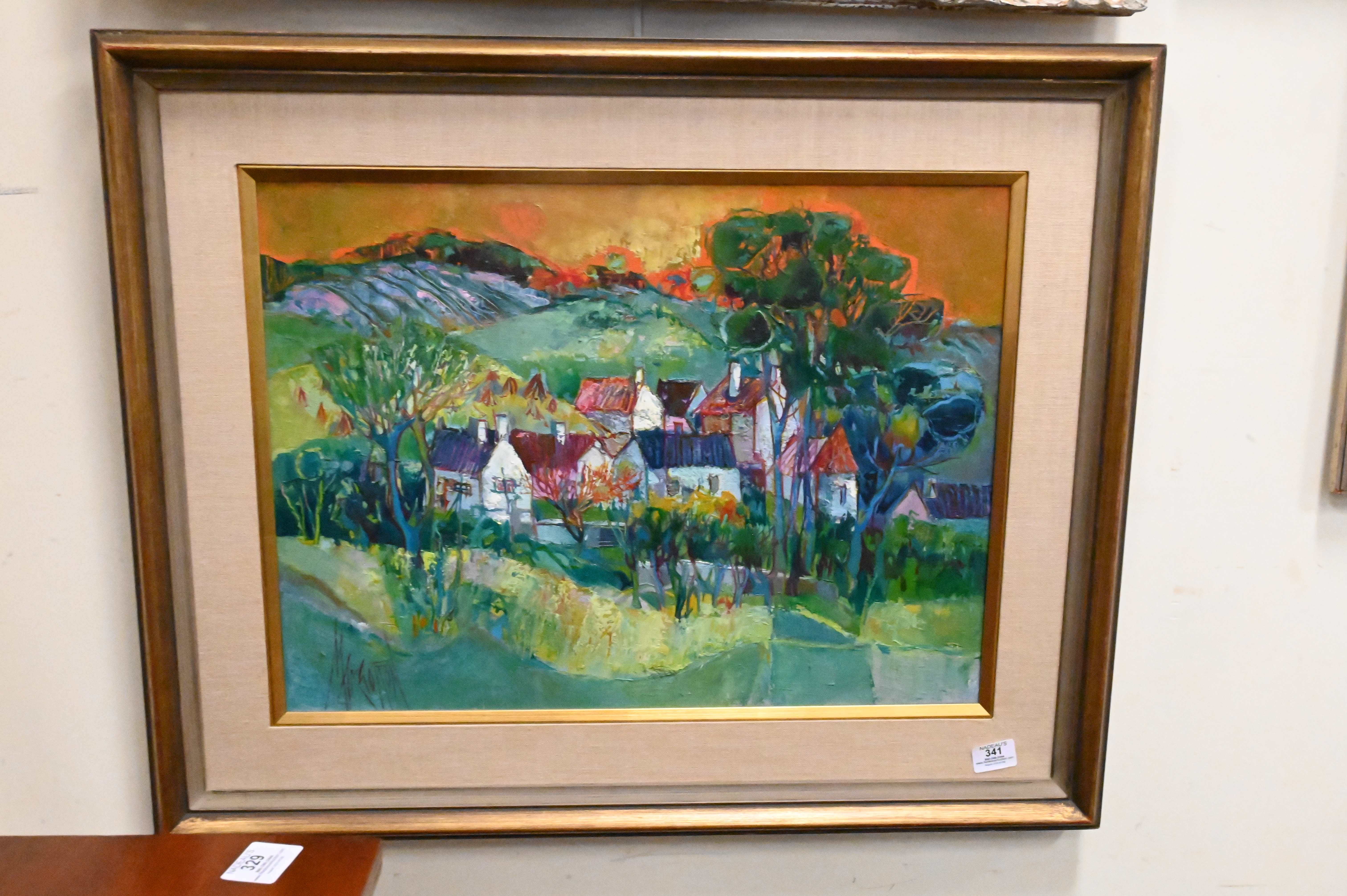Signed lower left Margotton, signed and titled on verso Le Petit Hameau Rene Margotton