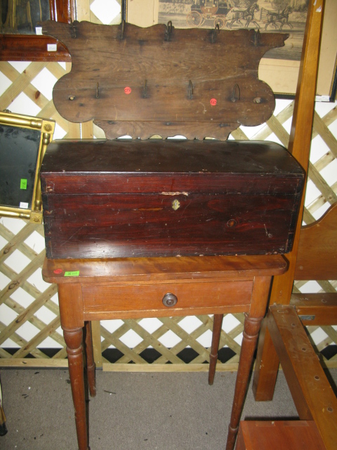 Three piece lot to include one drawer stand, board with meat hooks and dome top chest