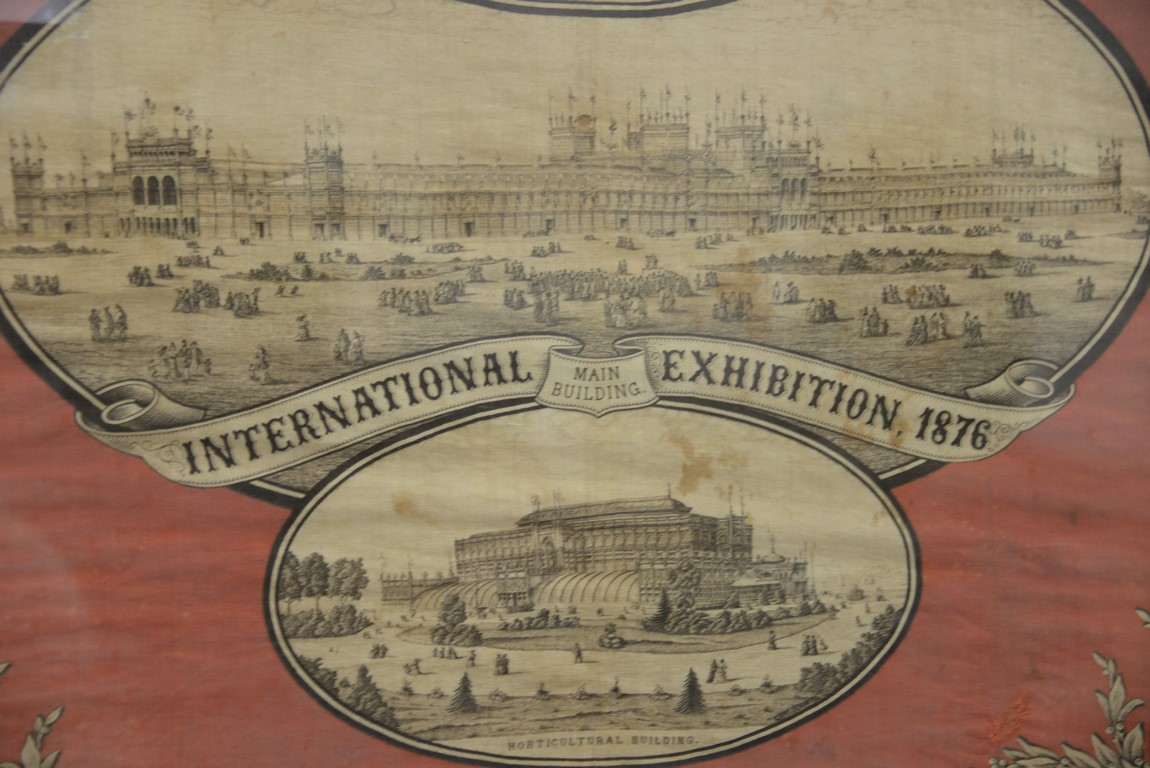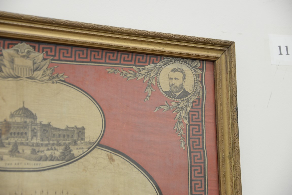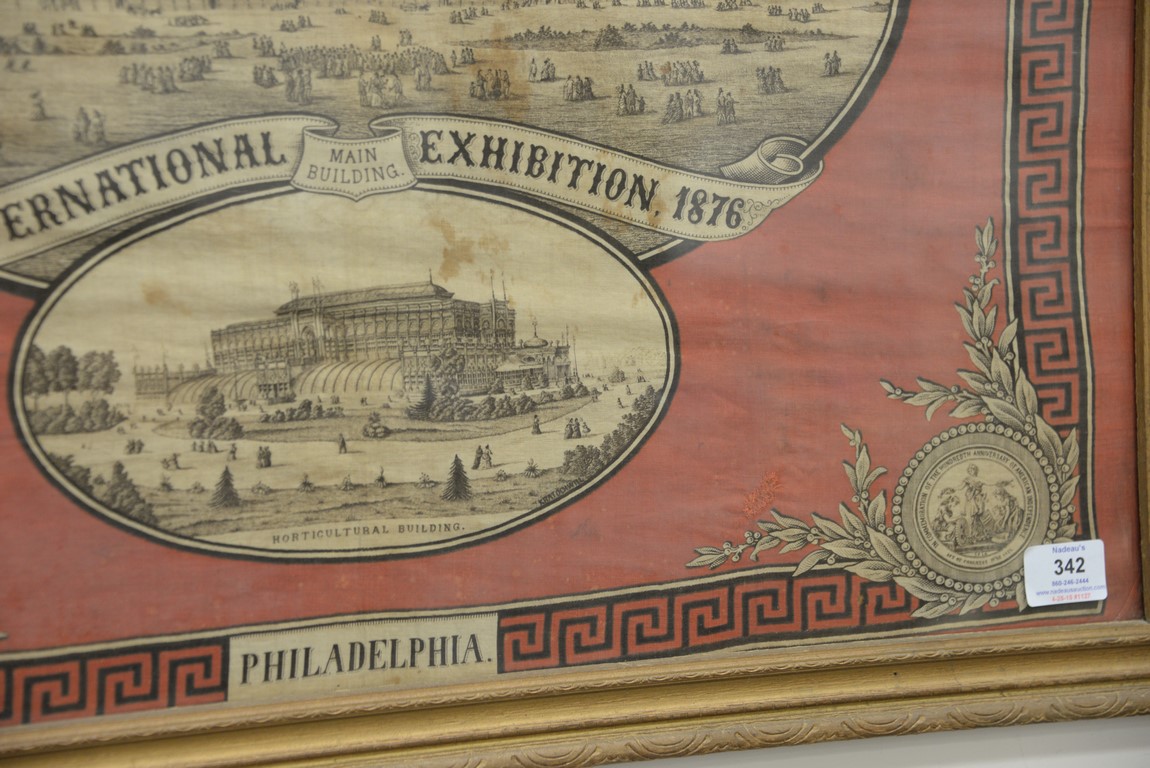 Lot 342: Centennial Internation Exhibition 1876 Philadelphia, Presidential framed advertising cloth along with Franklin Roosevelt Fight Infa…