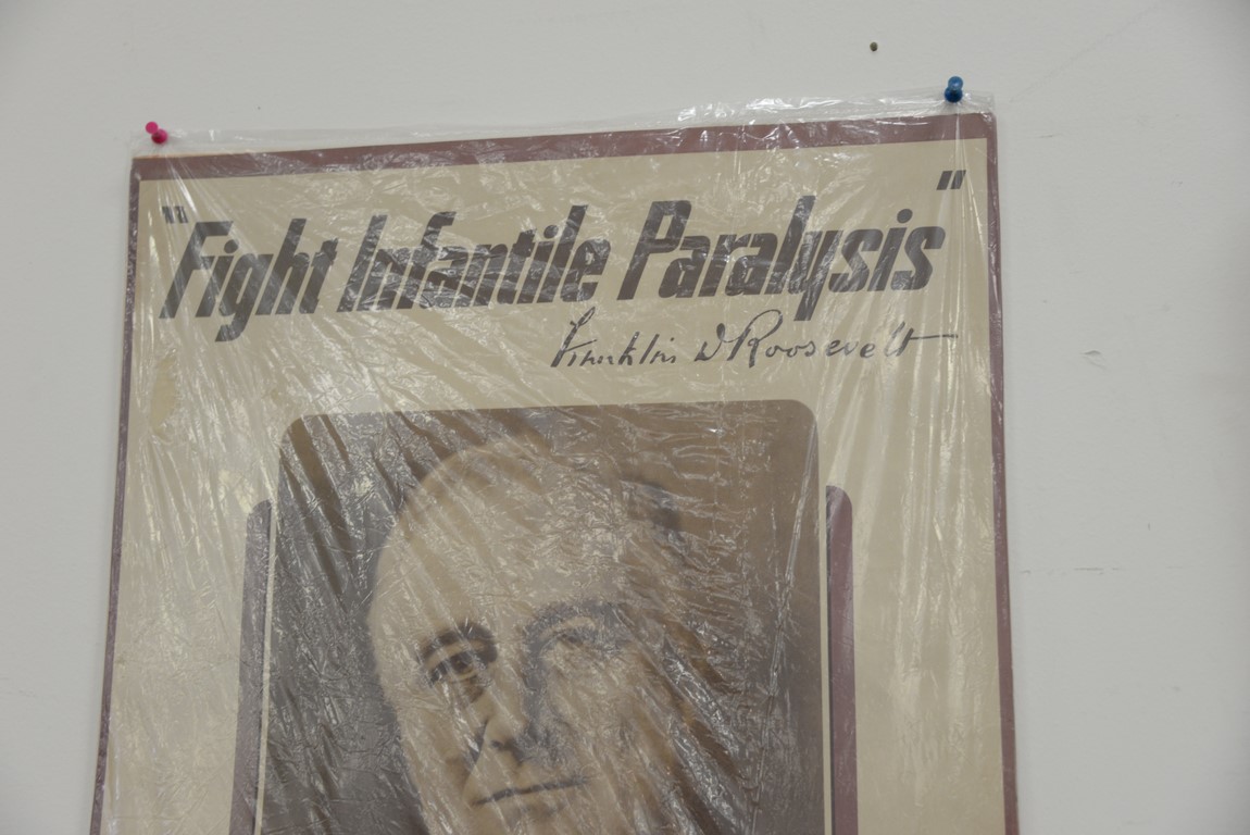 Centennial Internation Exhibition 1876 Philadelphia, Presidential framed advertising cloth along with Franklin Roosevelt Fight Infantile Paralysis poster.
