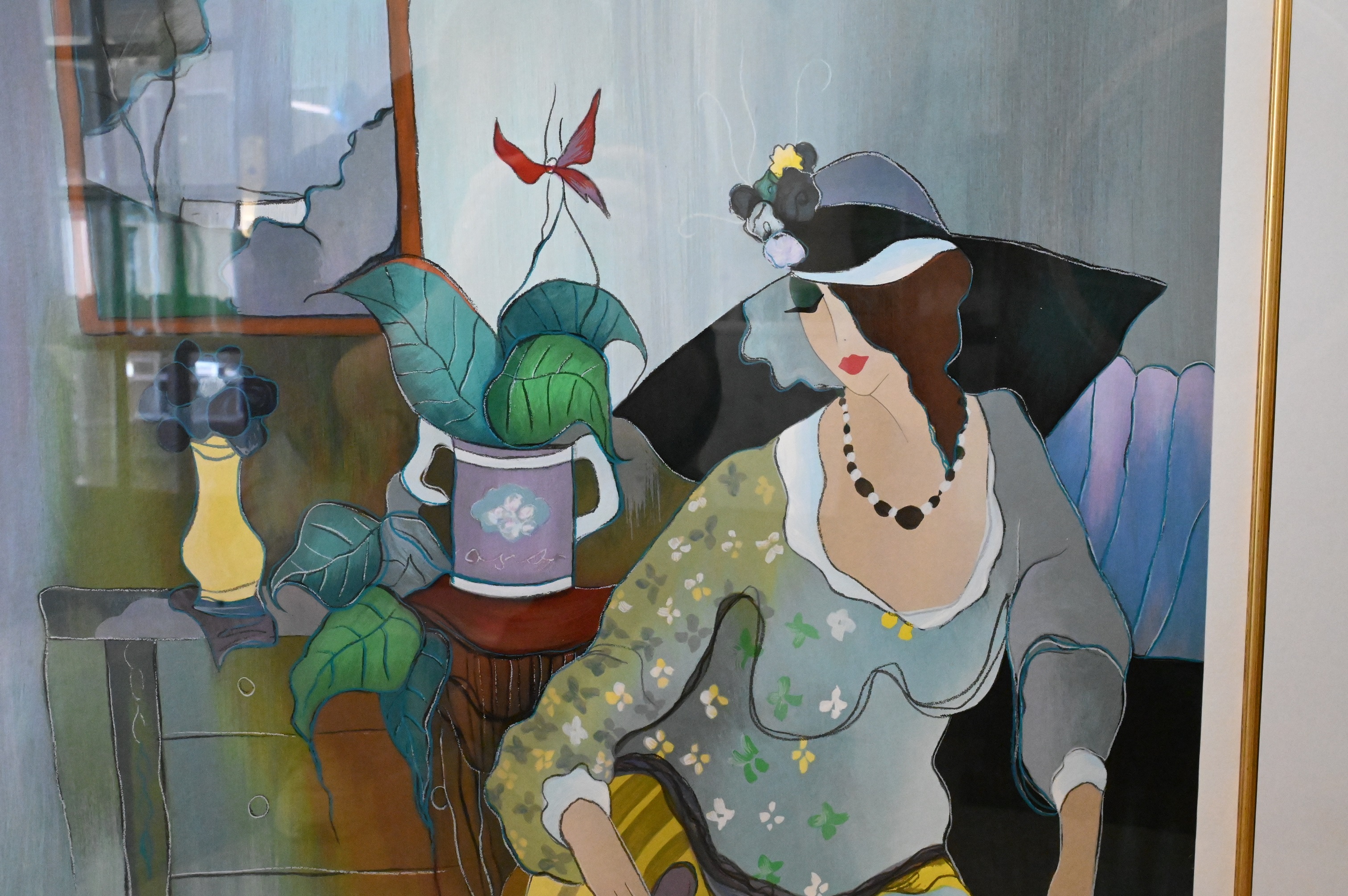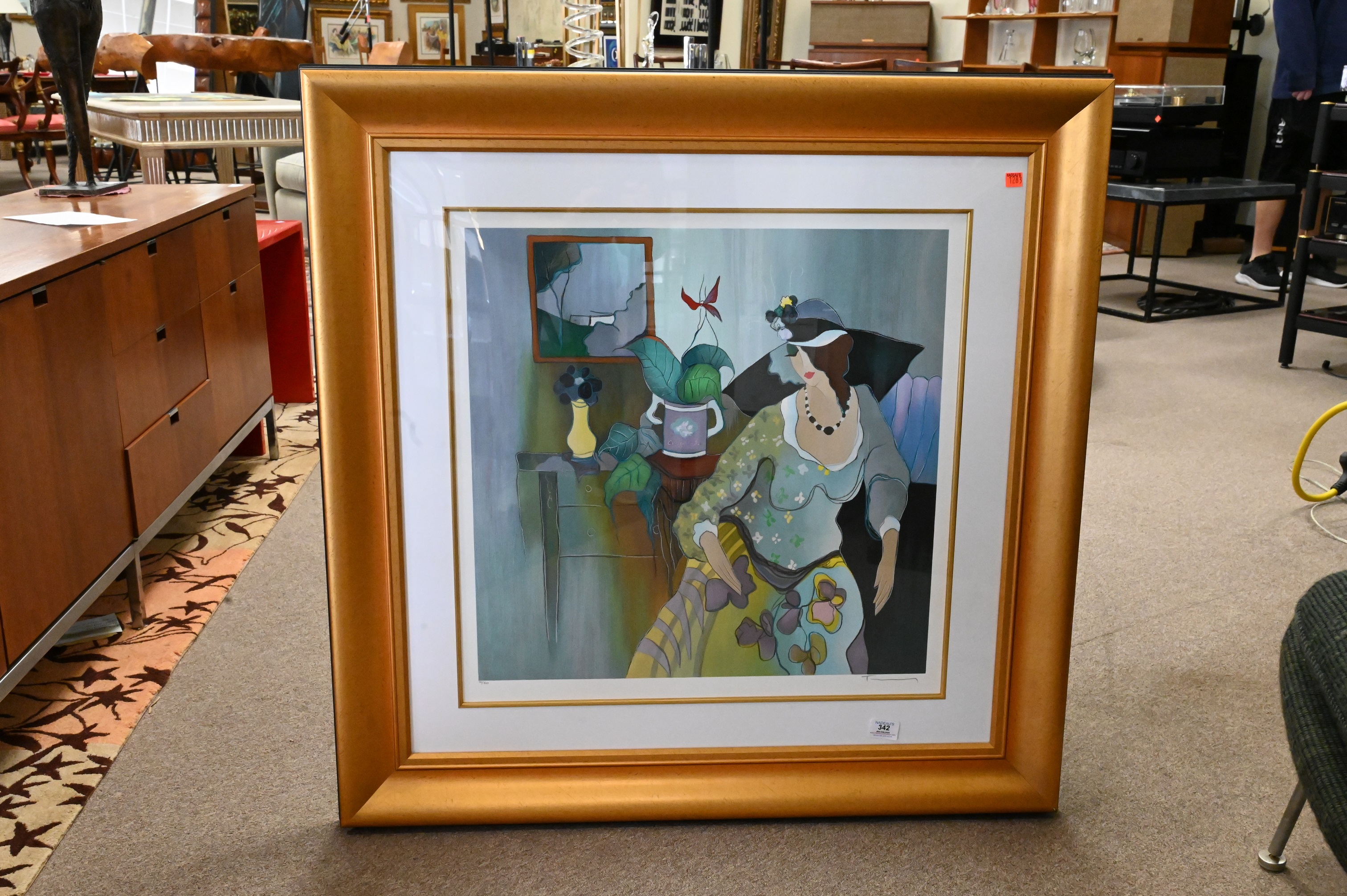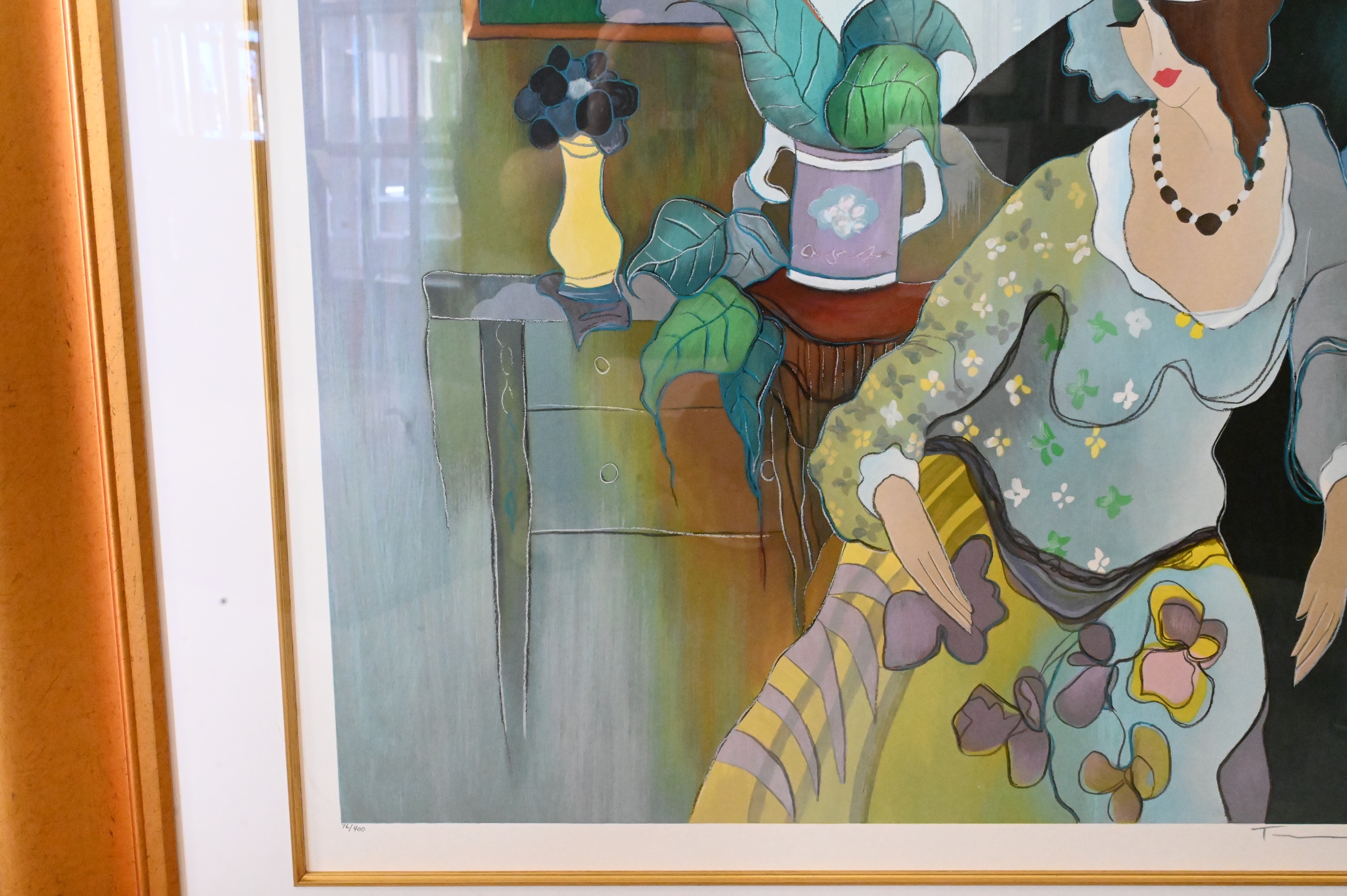 Itzchak Tarkay, serigraph, untitled woman lady sitting, signed lower right Tarkay, numbered 76/400, 24″ x 24″.