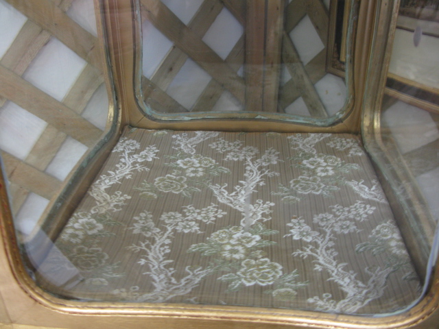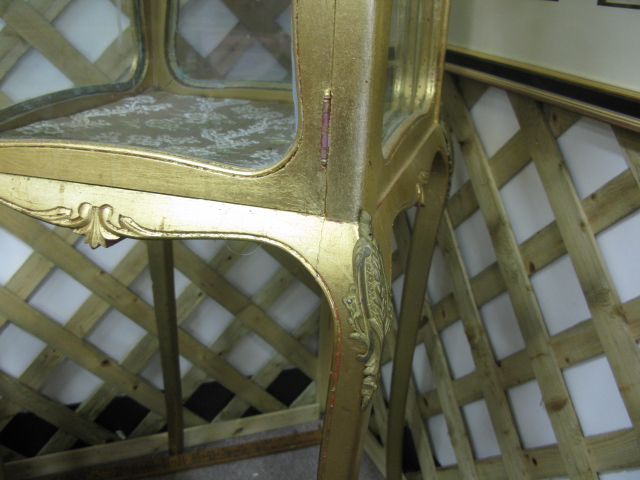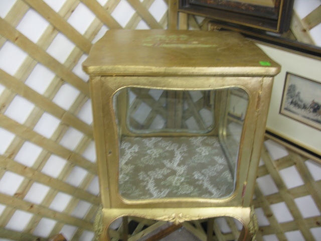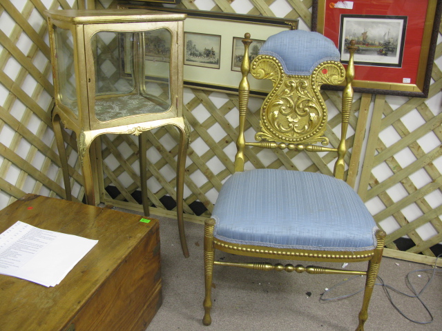 Two piece lot gilt decorated chair and gilt decorated small curio case