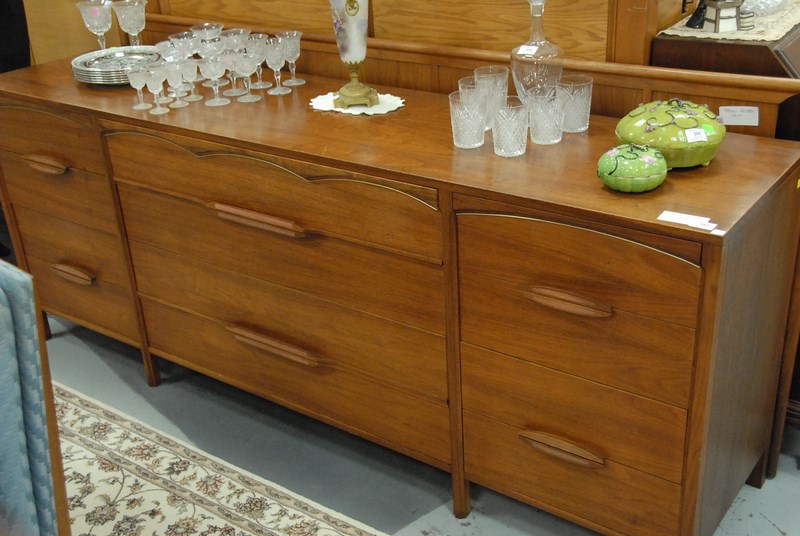 Lot 342: Two piece lot to include John Keal credenza by Brown Saltman California, ht. 32in. lg. 82in. dp. 19in. and Brown Saltman king size…