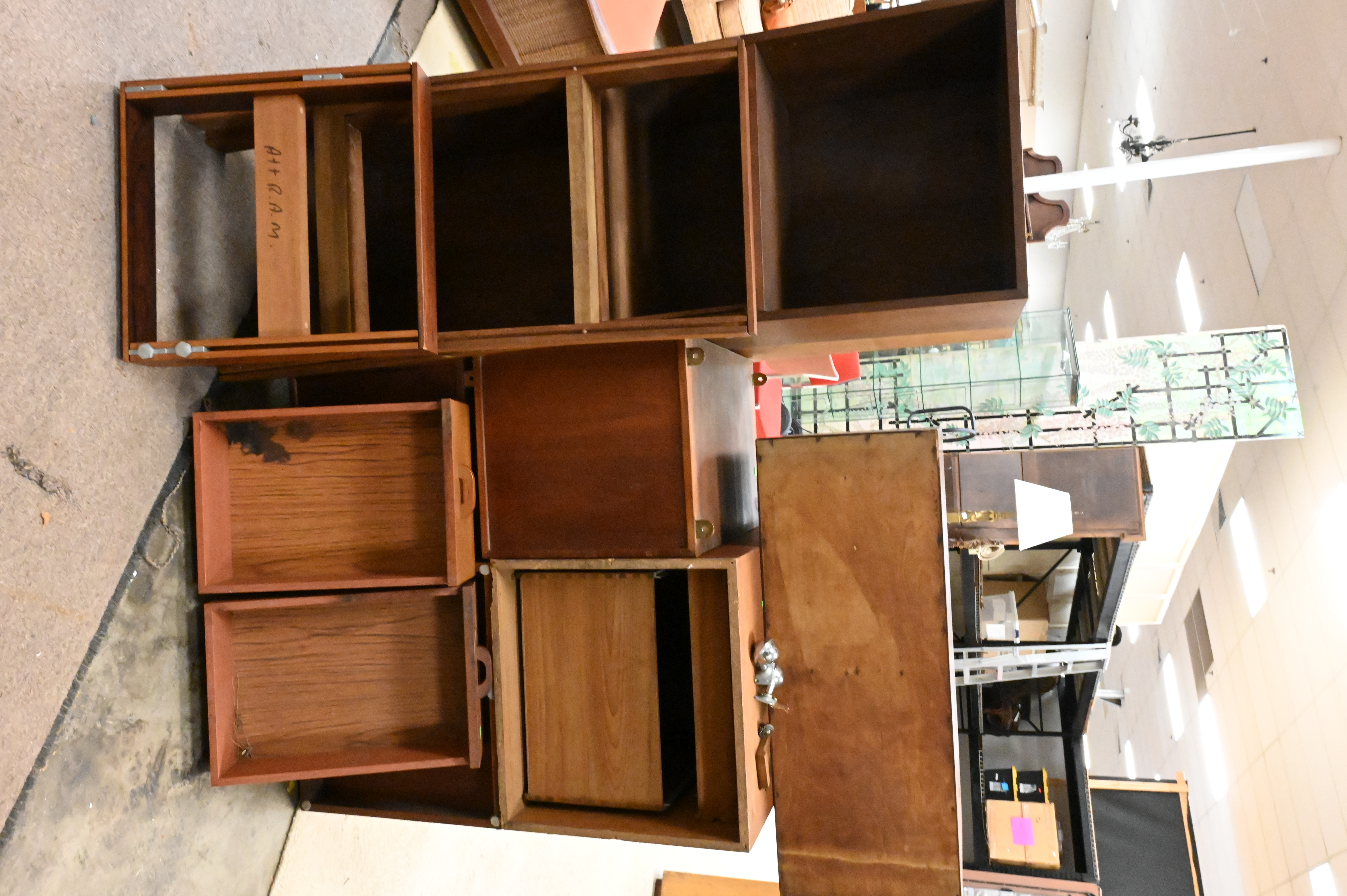 Lot 342A: Group of Mid-Century Modern Wood Storage Cabinets and Shelves