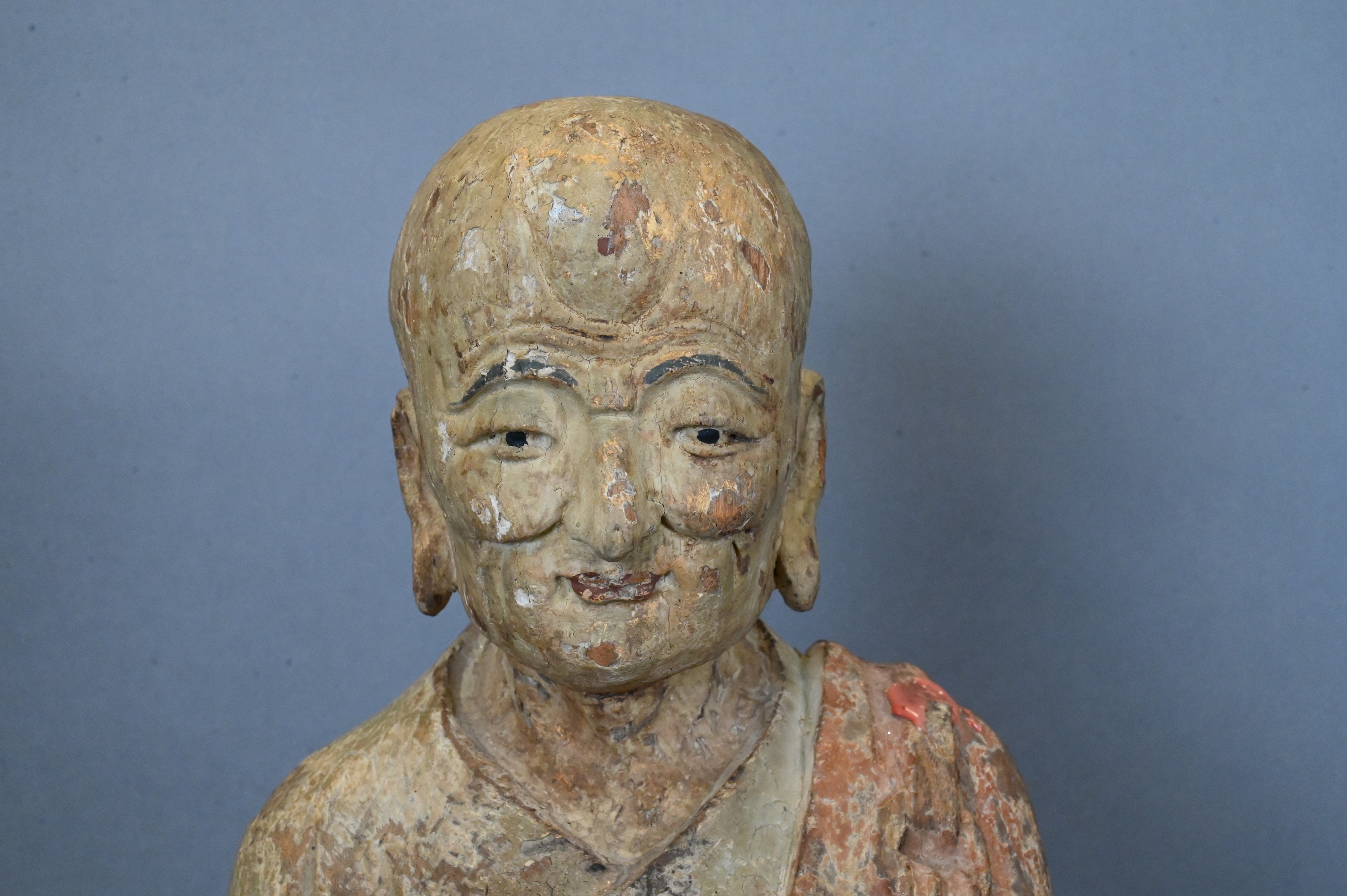 Lot 343: Carved and Polychrome Figure of a Buddhist Monk