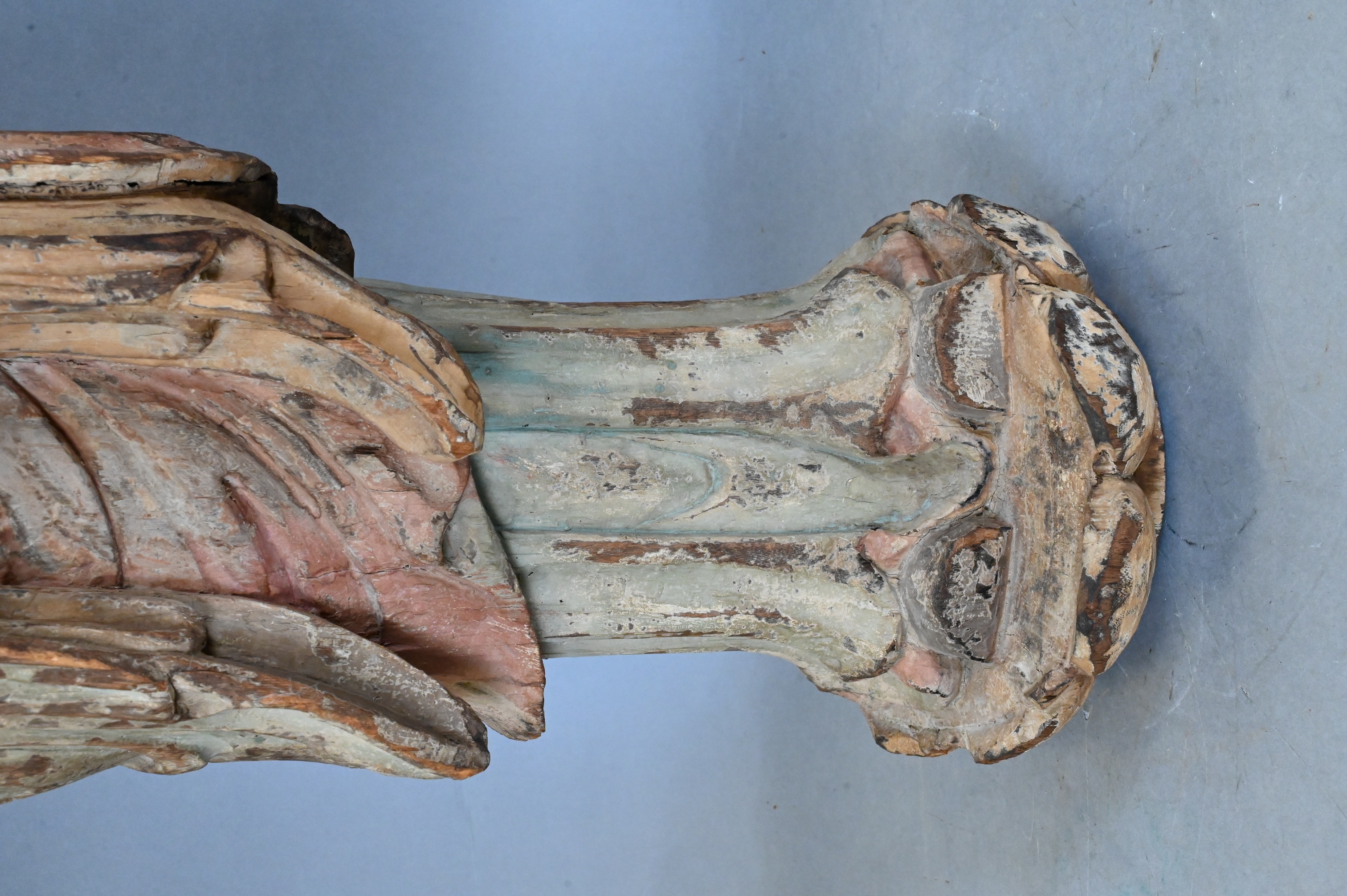 Condition: Surface wear, losses to polychrome, age cracks, minor chips to base and robe edges.