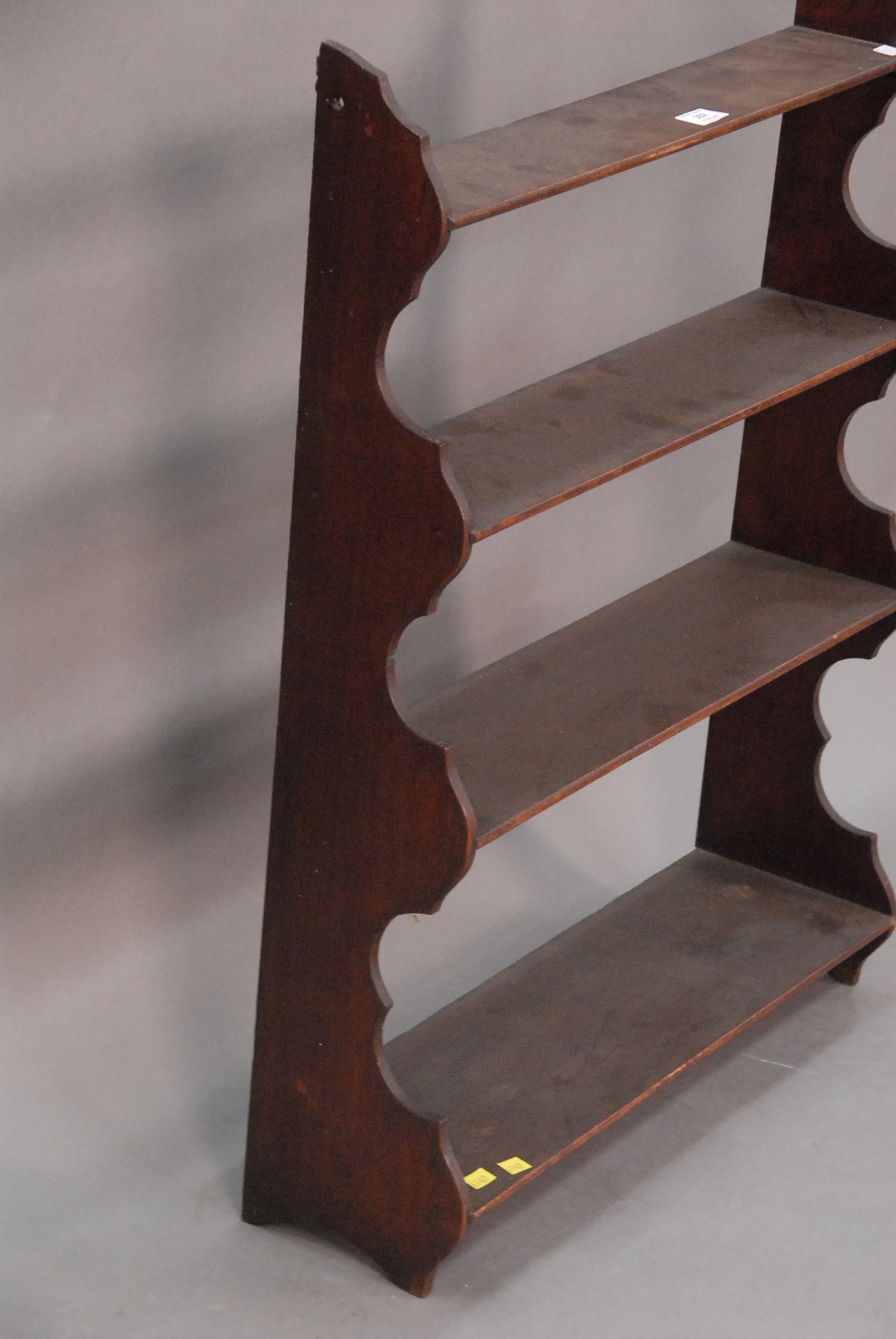 Early hanging shelf, four tier with scalloped sides. ht. 35in. wd. 26 1/2in.