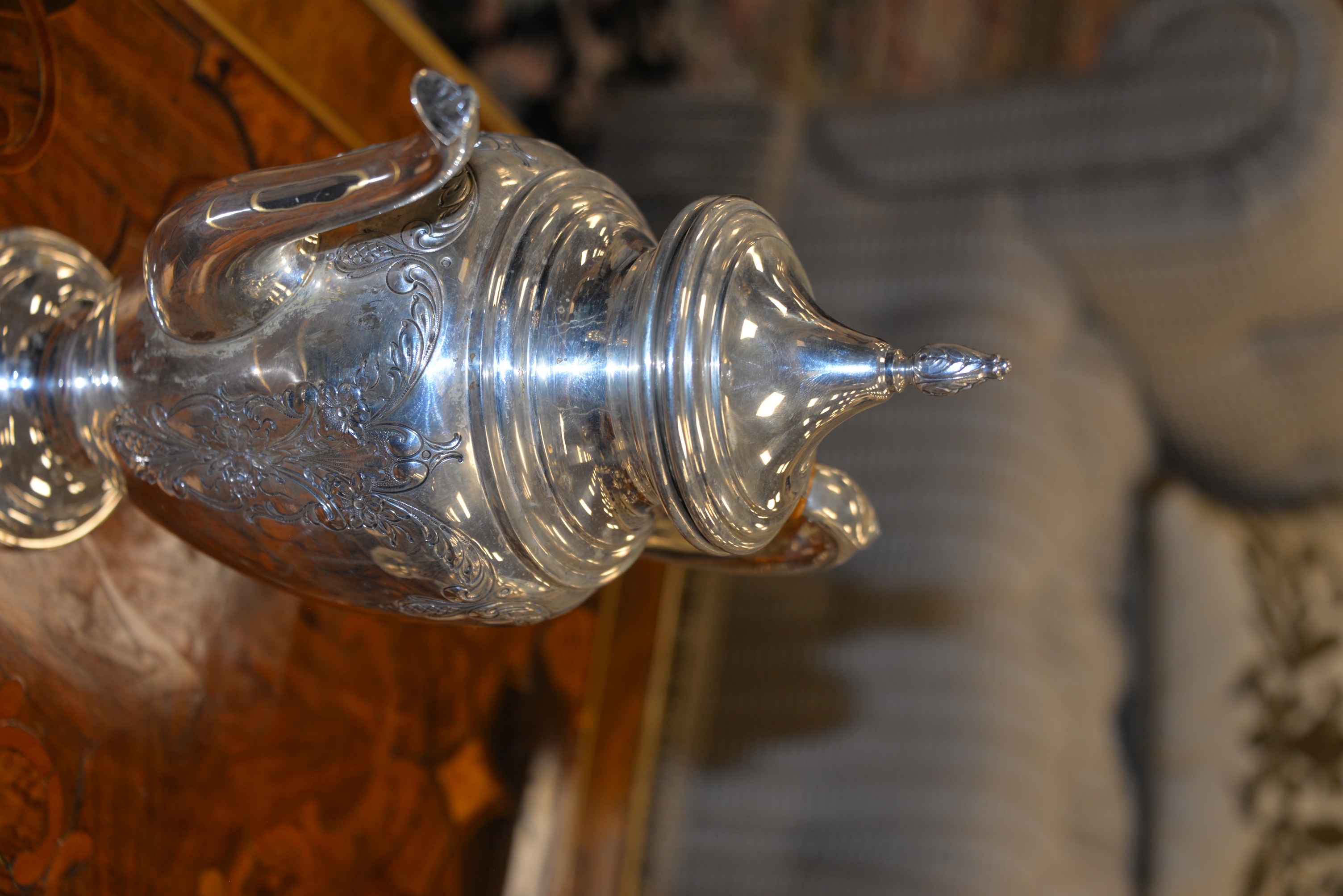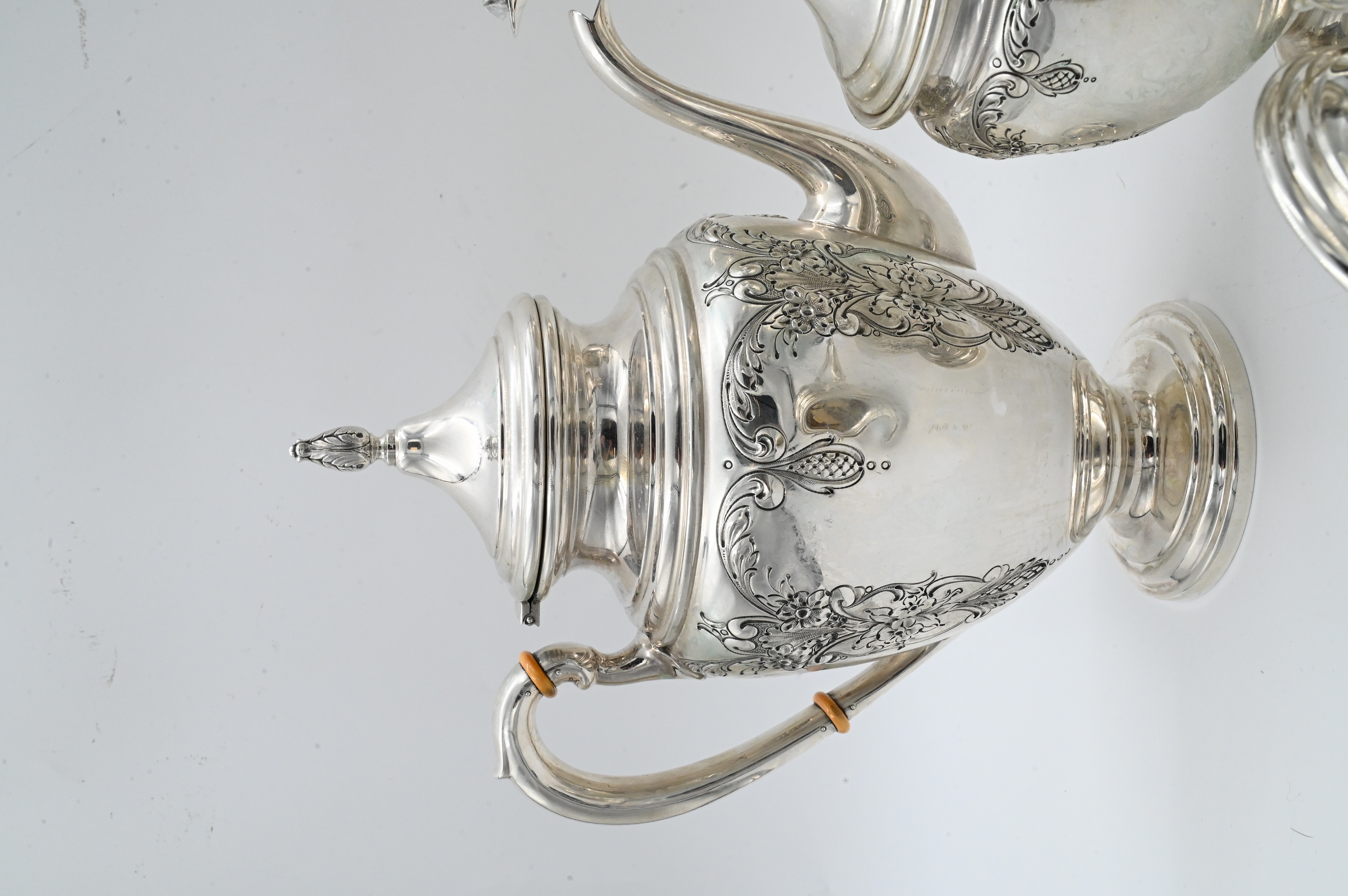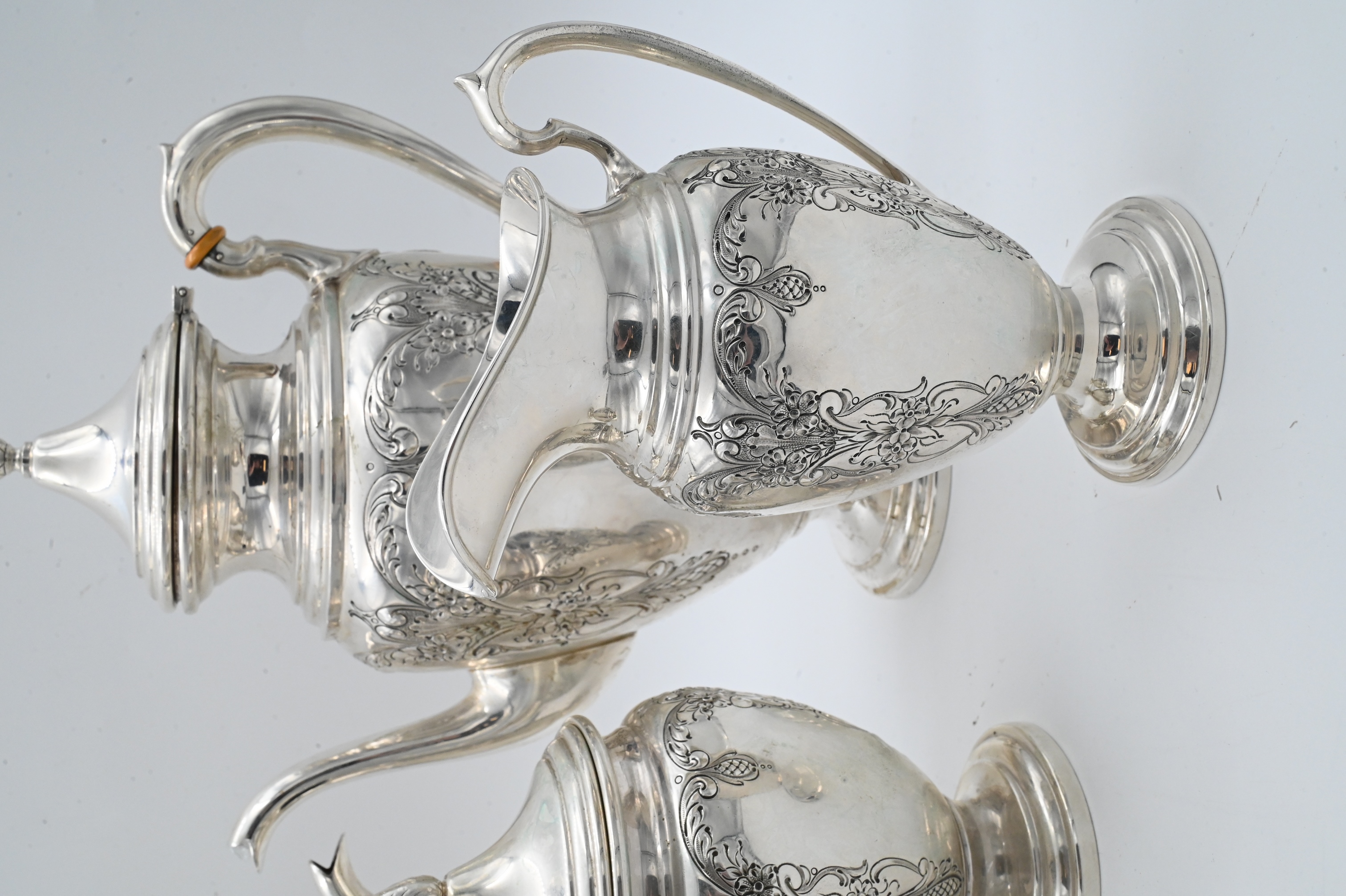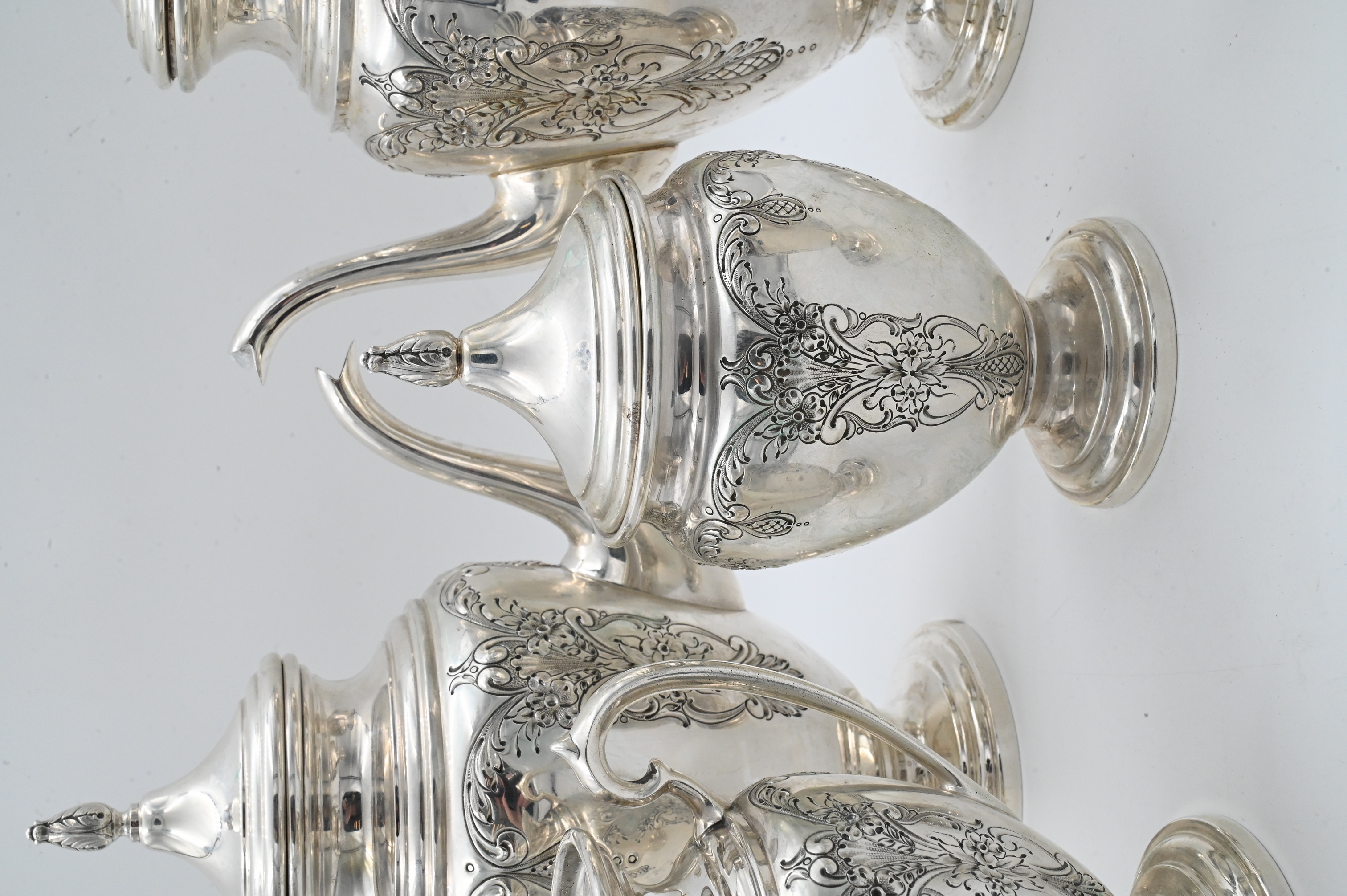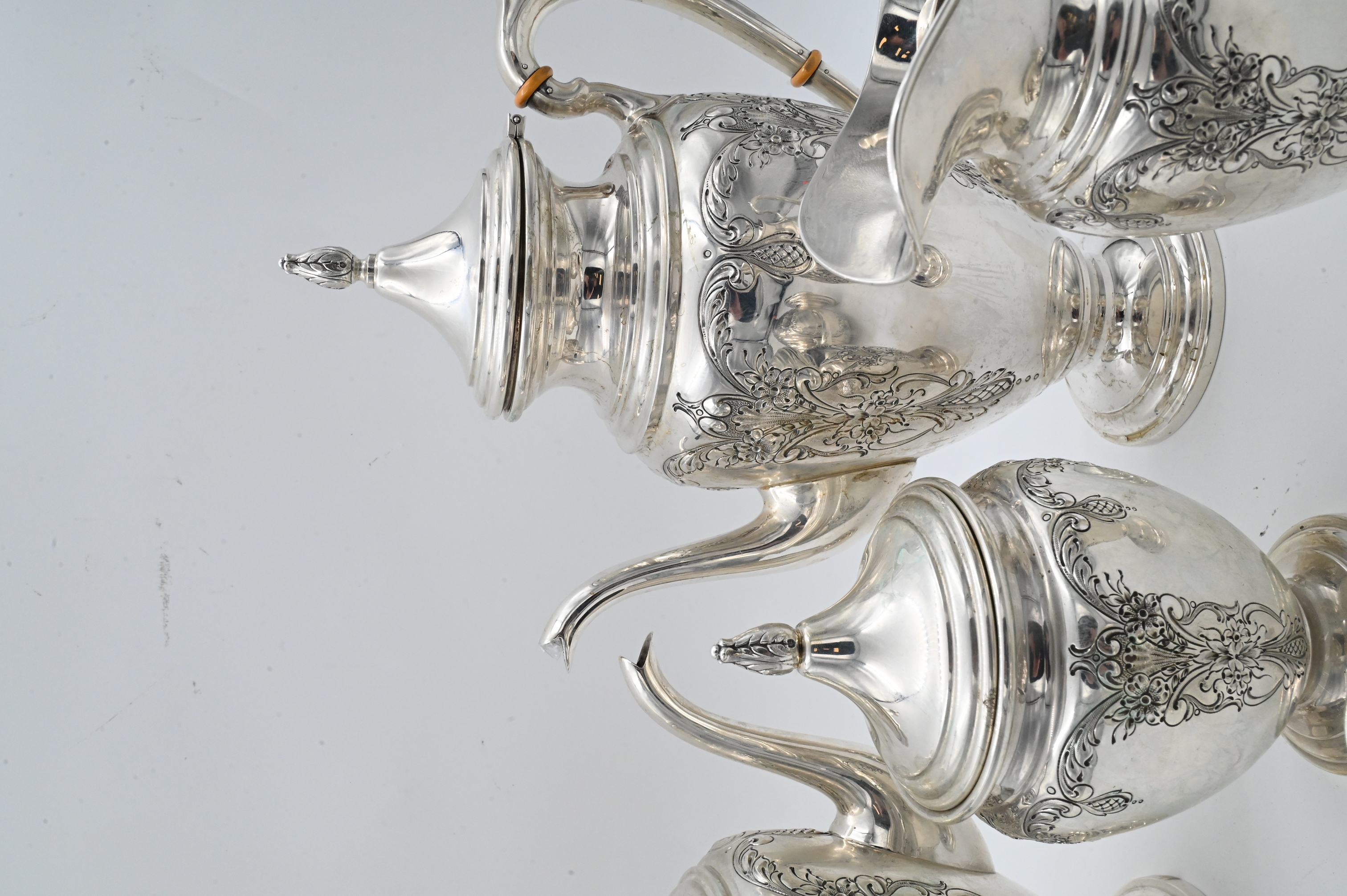 to include tea pot, coffee pot, creamer, covered sugar bowl, open sugar bowl, all hand chased