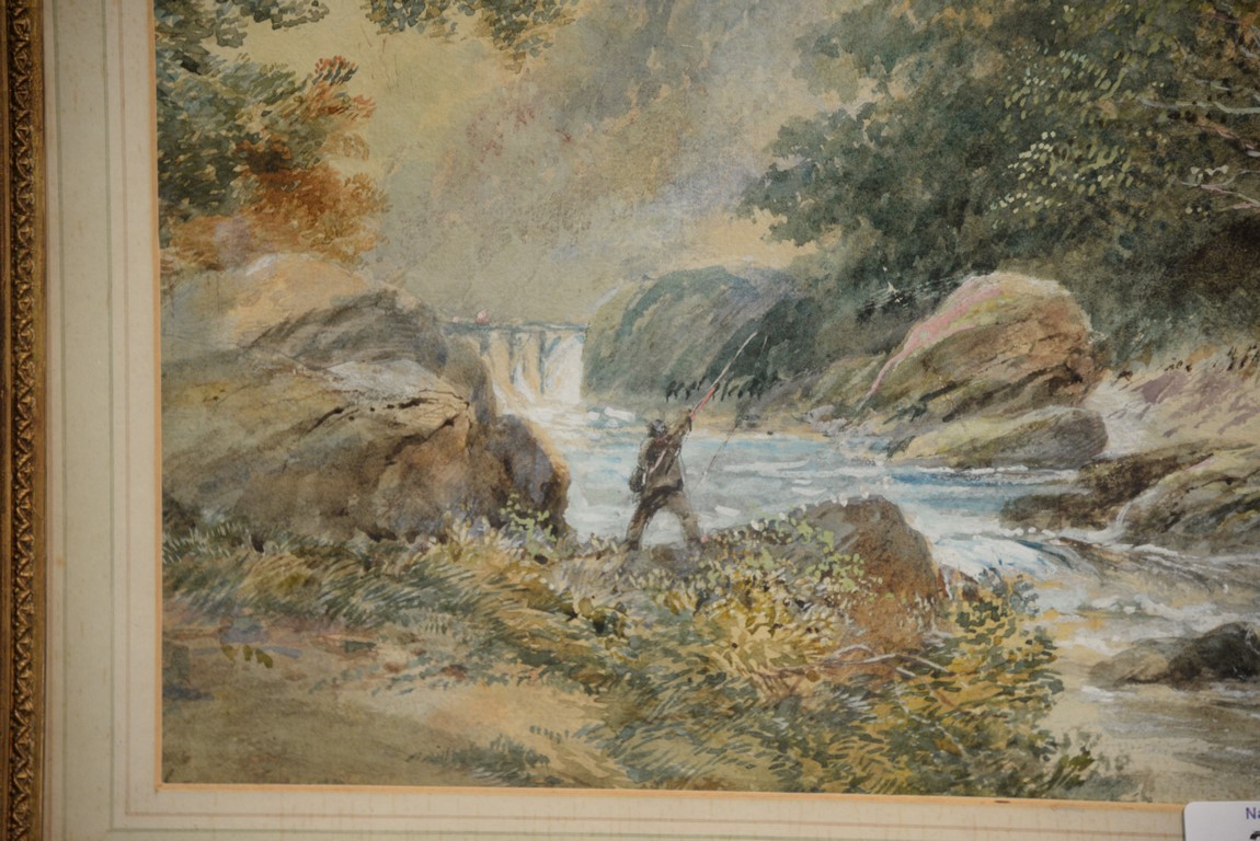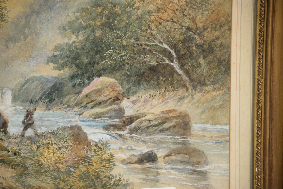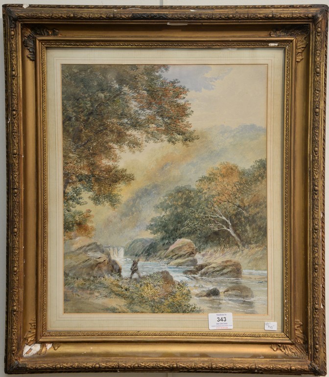 Fly Fishing a Stream watercolor unsigned 18 x 15