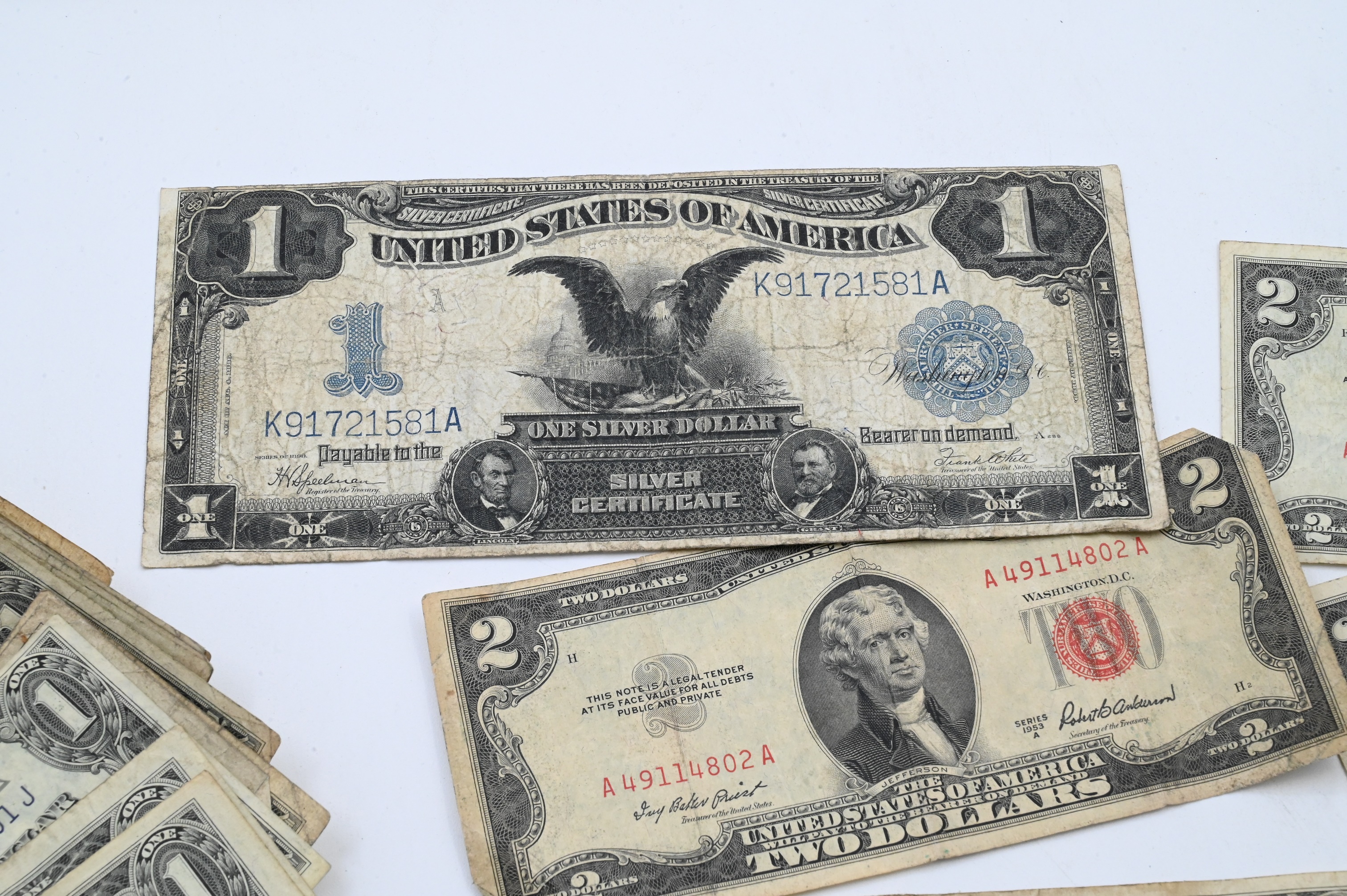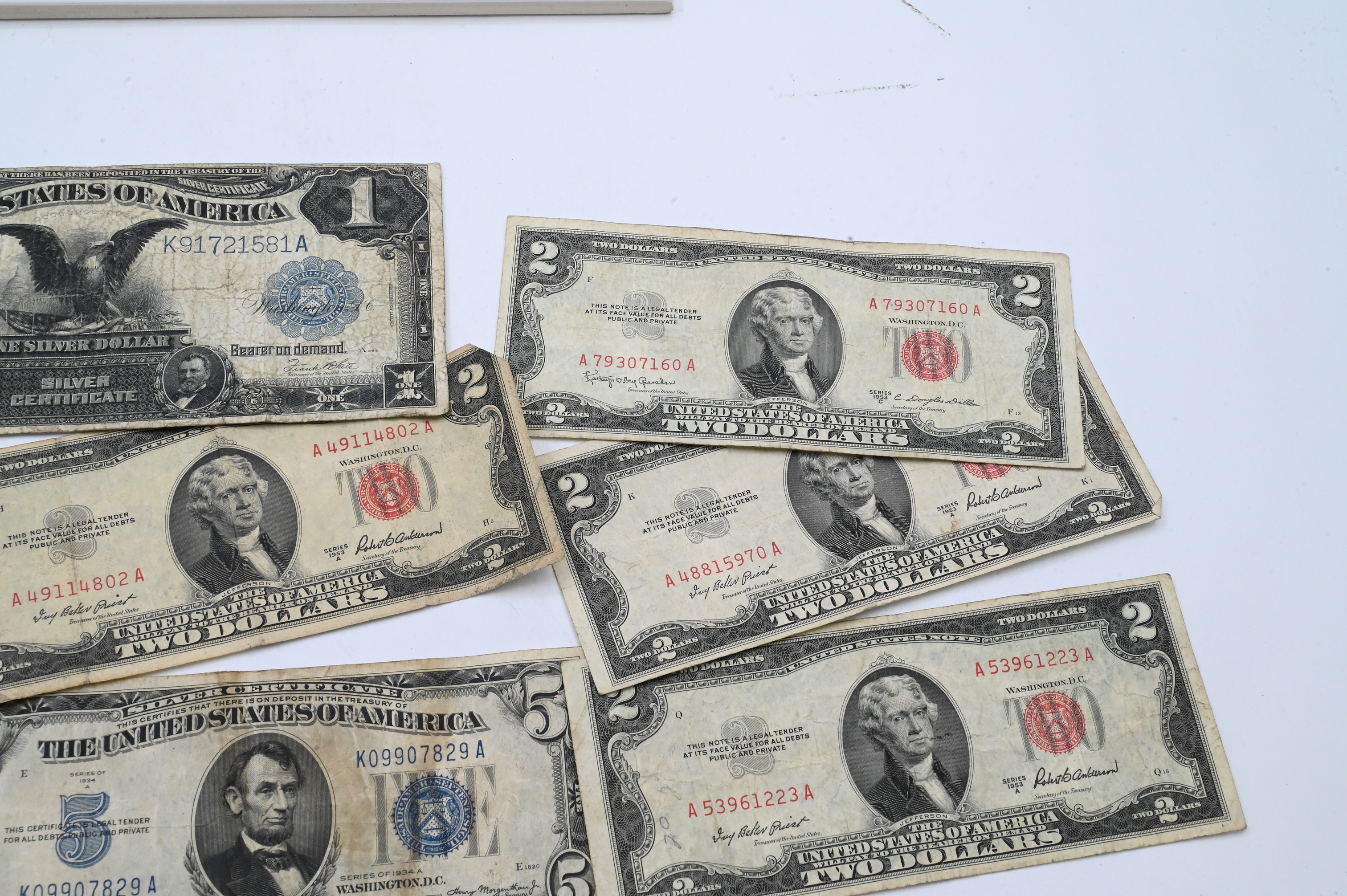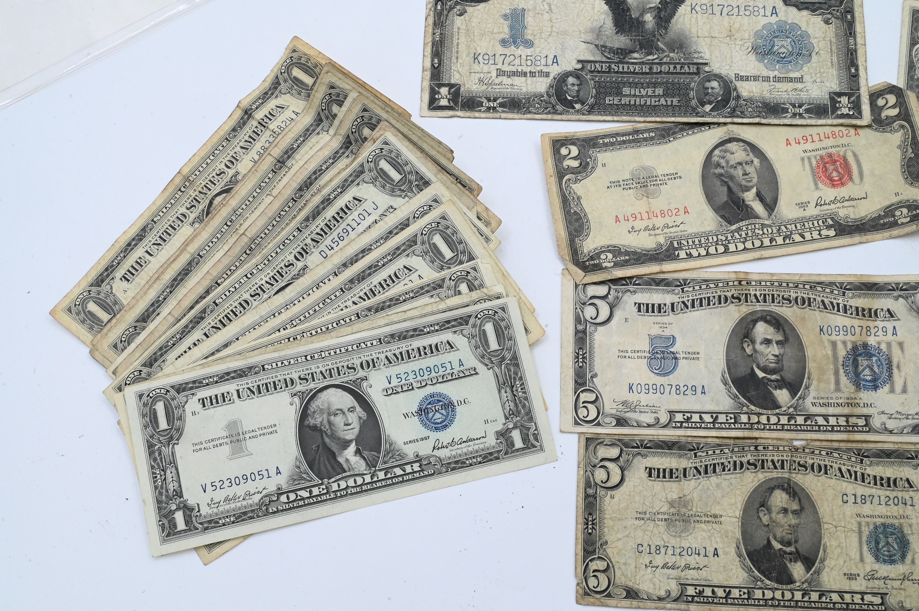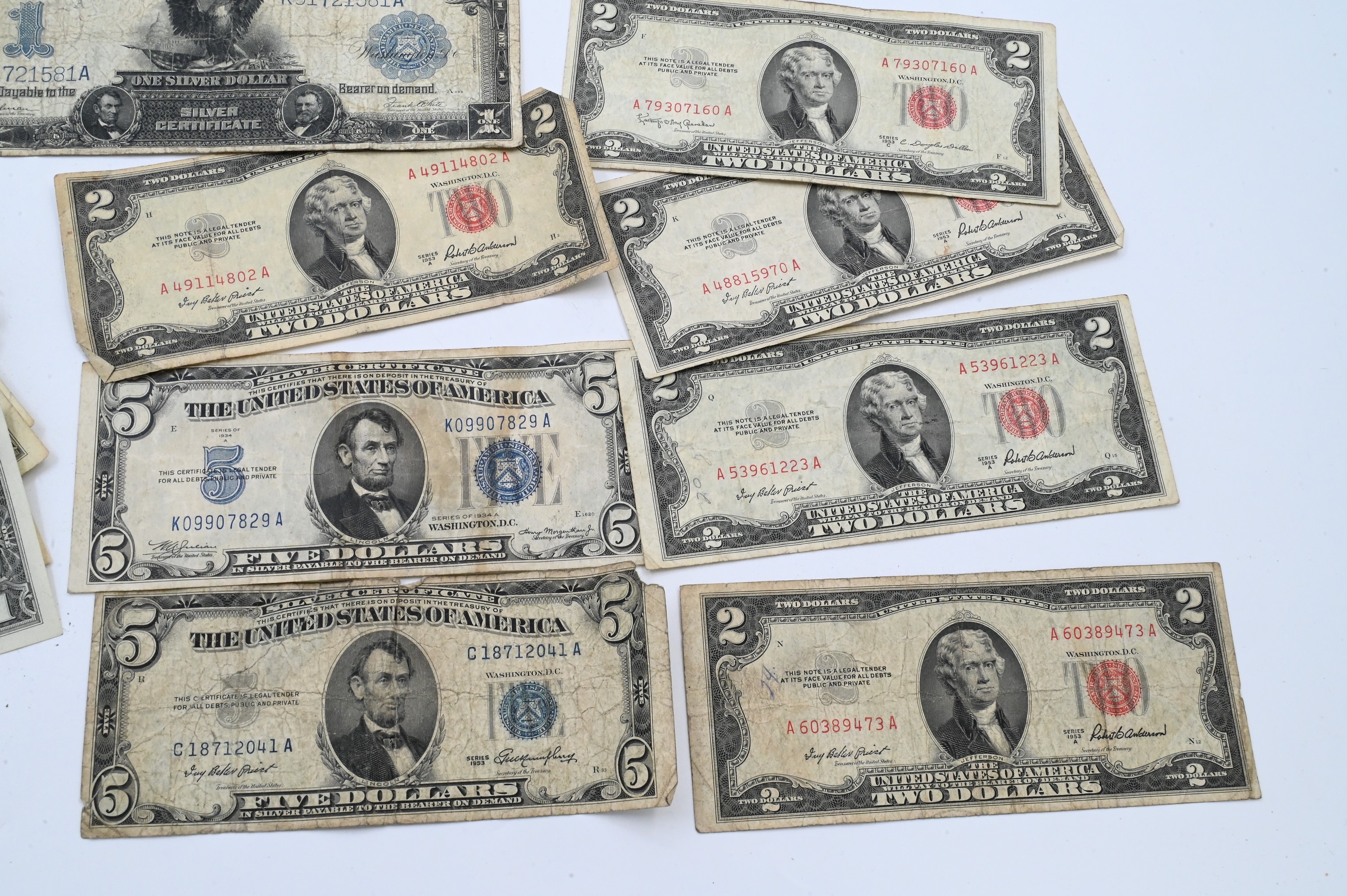 to include sixteen $1 silver certificates, five $2 red notes, two $5 silver certificates