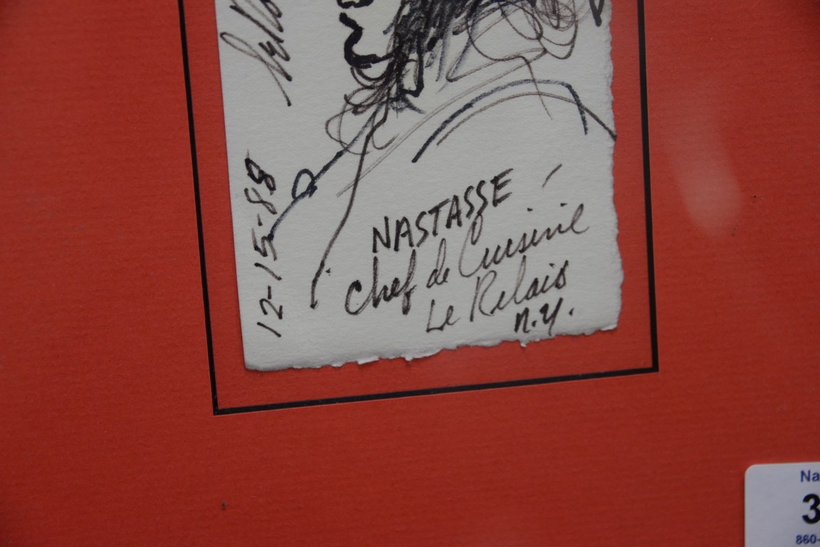 Lot 343: Leroy Neiman 1921-2012 sketch Nastasse Chef de Cuisine le Relais, N.Y. 12-15-18 Leroy Neiman. 5 1/2 x 3 1/2