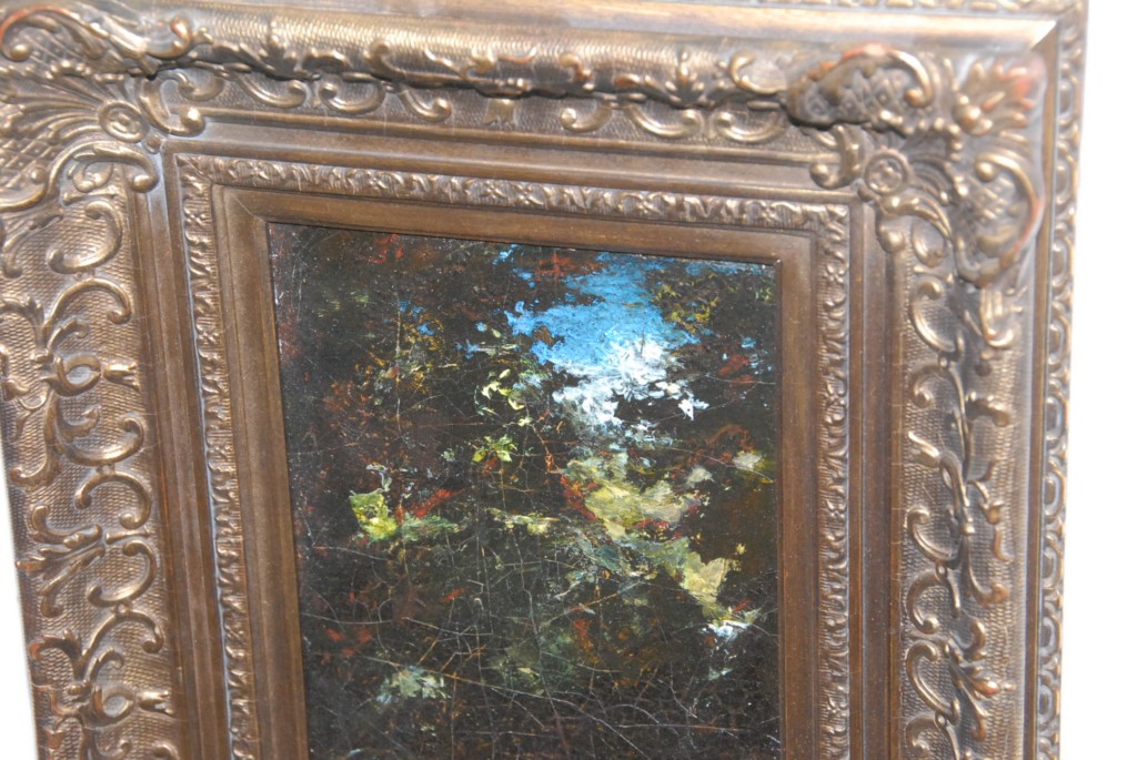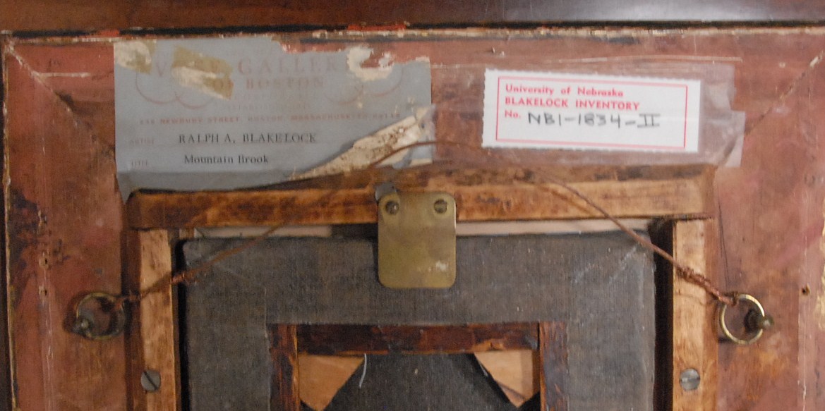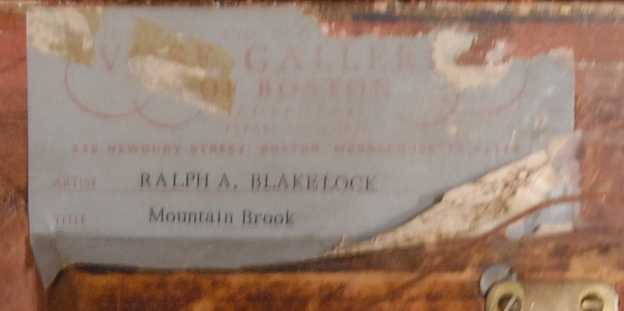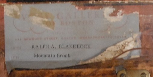 Ralph Albert Blakelock 1847-1919 MOUNTAIN BROOK oil on canvas signed lower left R. A. Blakelock titled on reverse Mountain Brook Vose Gallery of Boston label on back University of Nebraska no. NB1-1834-II 8 x 6