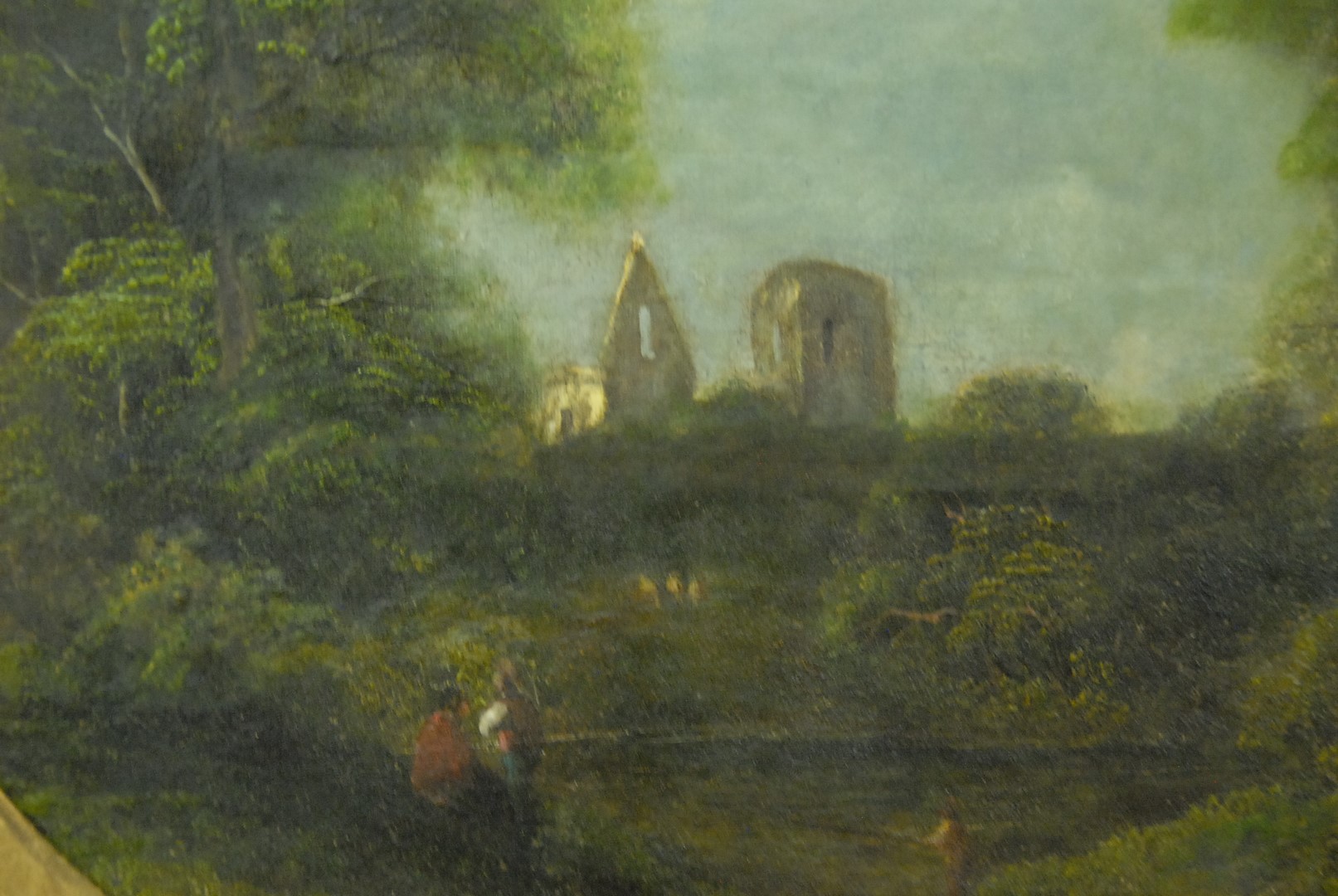 Round landscape oil on canvas mounted on board unsigned. dia. 20