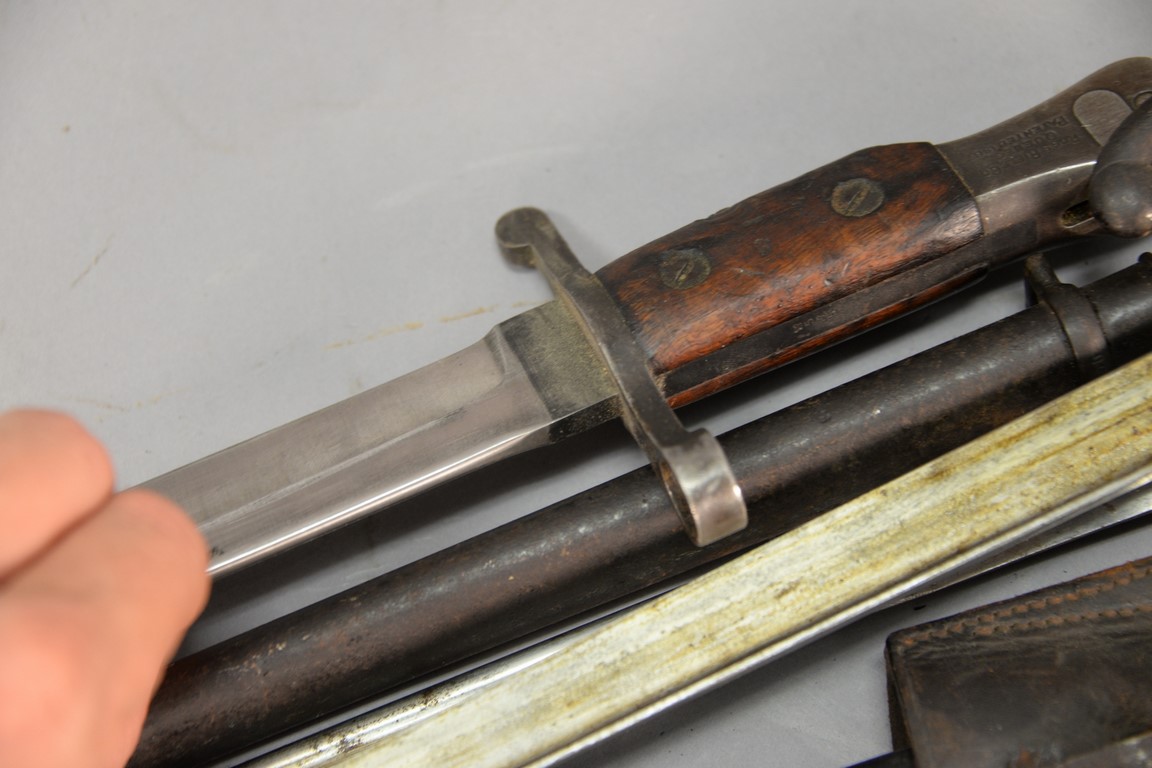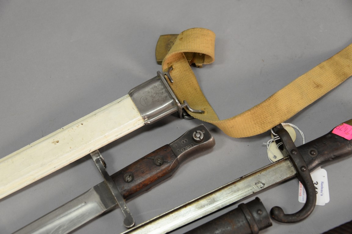 Lot 343: Three military bayonets including one by Wm. Solinger, a U.S. by Ross Rifle Co., and the last with press marks. lg. 14 1/2in. to 25 …