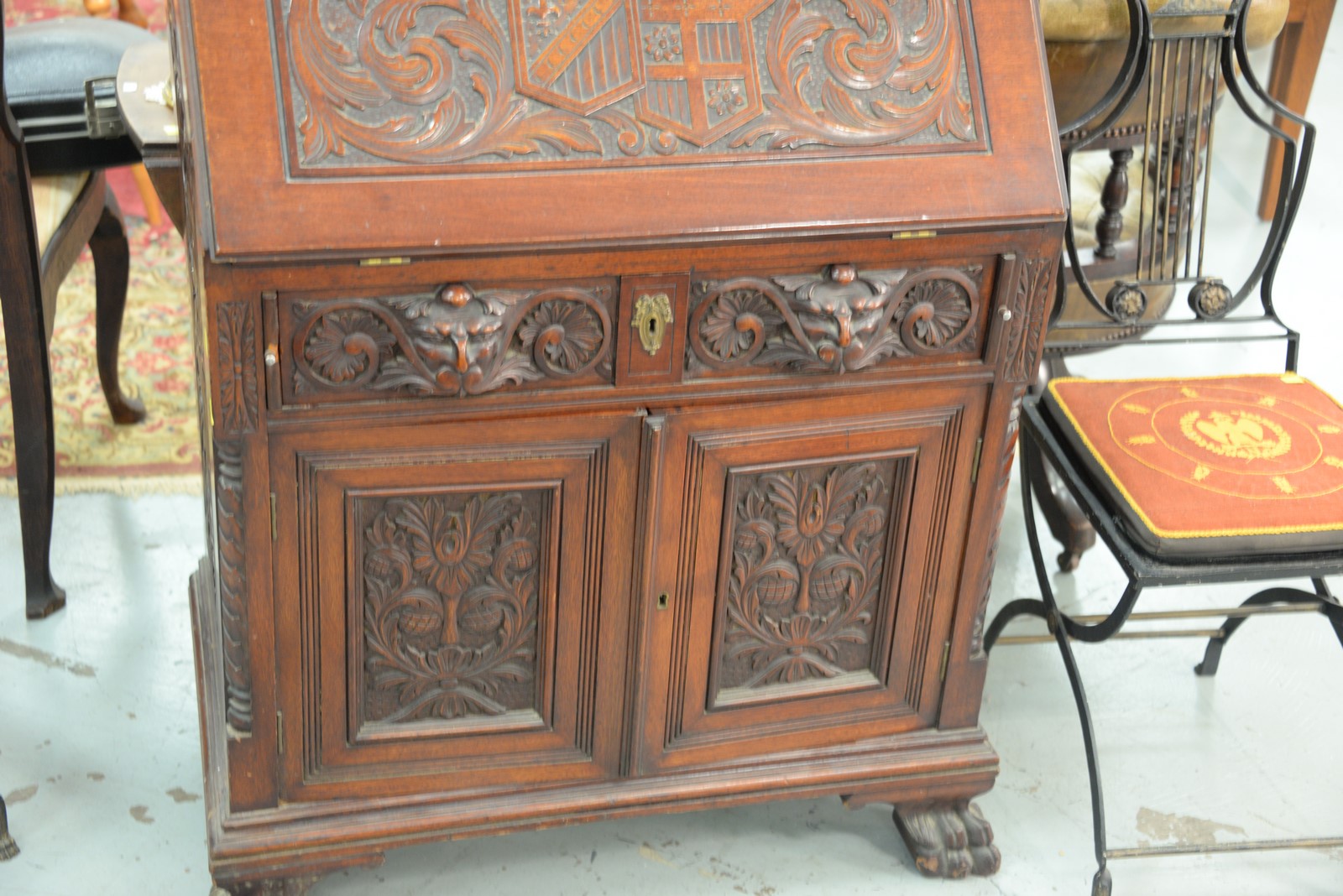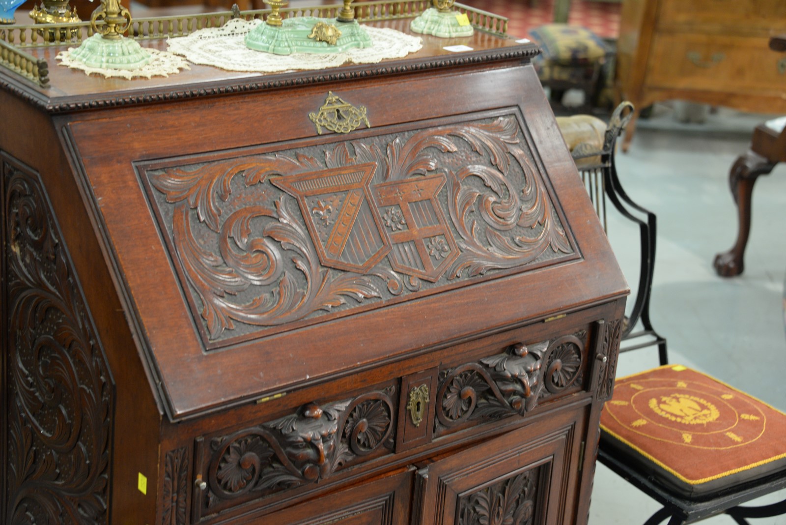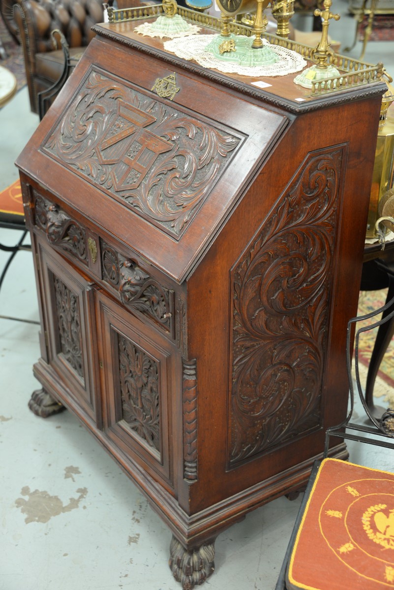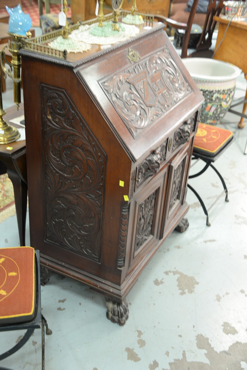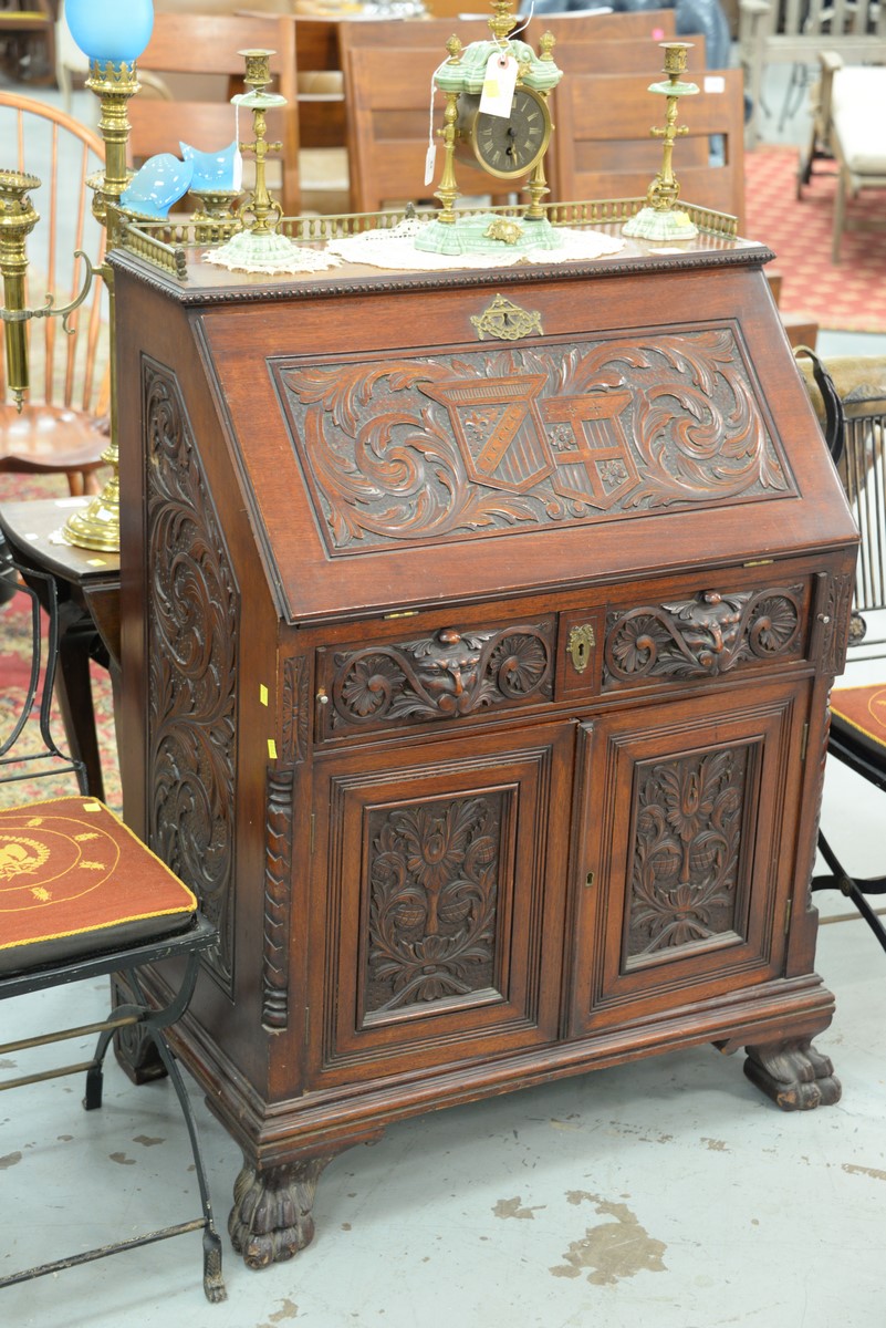 Victorian desk with carved front and sides. ht. 42 1/2 in. wd. 30 in. dp. 18 1/2 in.