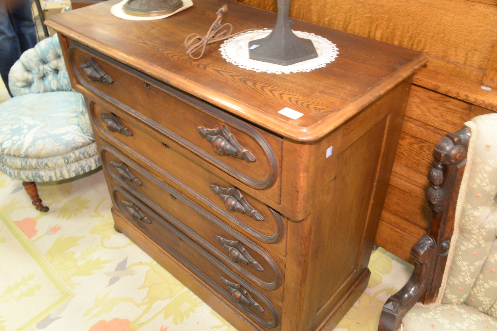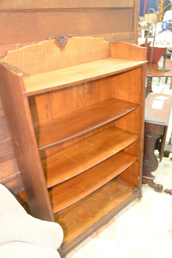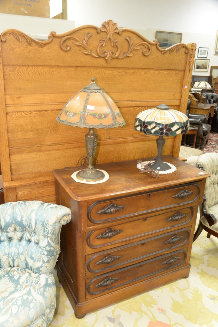 4 piece Victorian lot, oak bookcase, Victorian walnut drop-leaf table, chestnut chest and high back bed Height 46, top 19 x 39-1/2 chest Provenance: Thirty-five year collection of Dana Cooley, Old Lyme, Connecticut