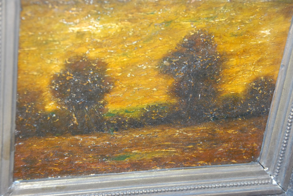 Attributed to Ralph Albert Blakelock 1847-1919 Landscape oil on board 7 x 9