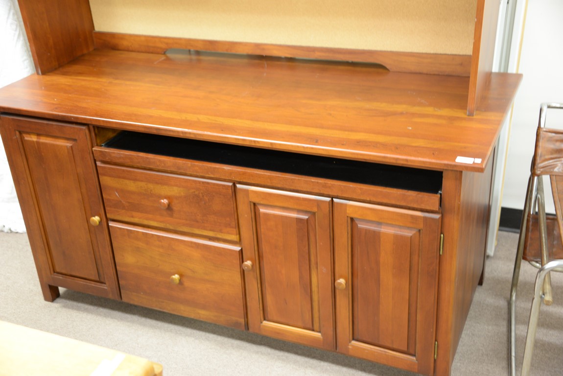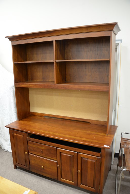 Lot 344: Cherry computer desk with large pull out and bookcase top. ht. 84 in. wd. 66 in. dp. 26 in.