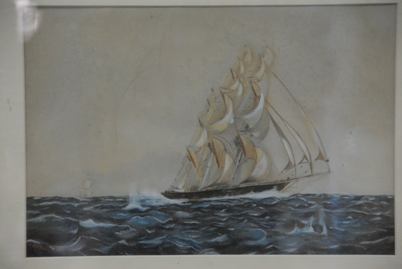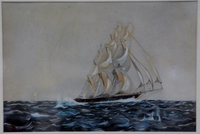 Lot 344: Frederic Schiller Cozzens 1846-1928 Windy Sails watercolor signed lower left Fred S. Cozzens, 9 1/2 x 14.