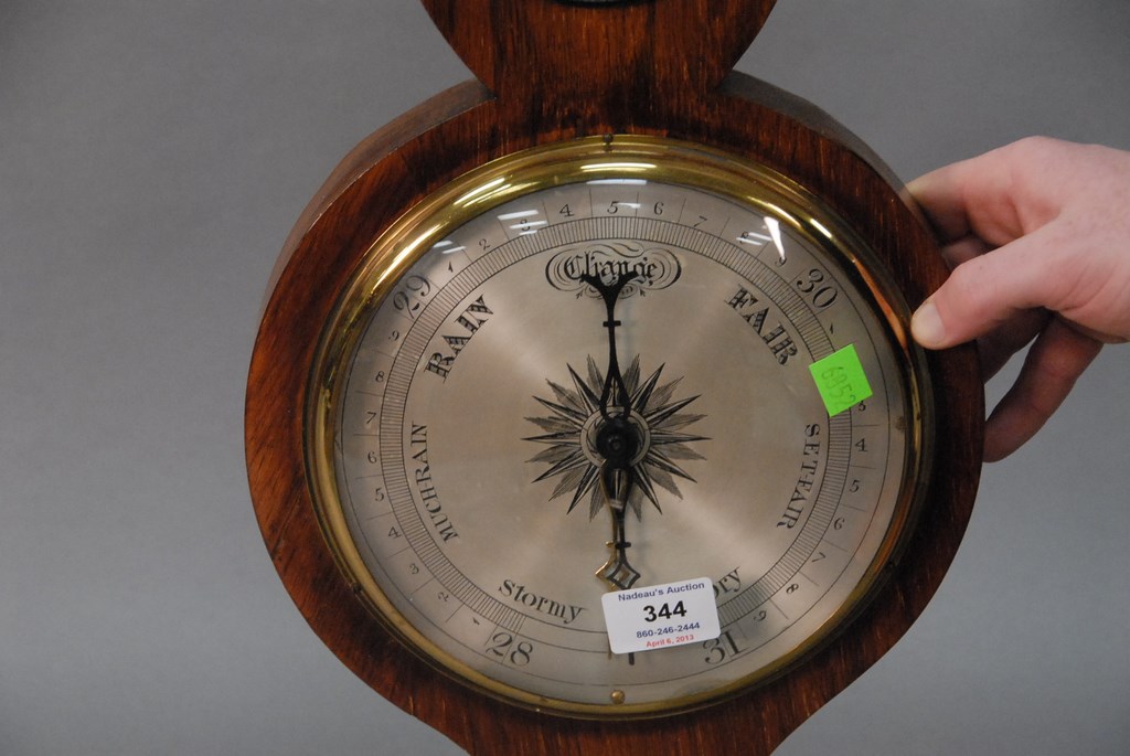 Rosewood barometer, 19th century veneer damage to top. ht. 38in.