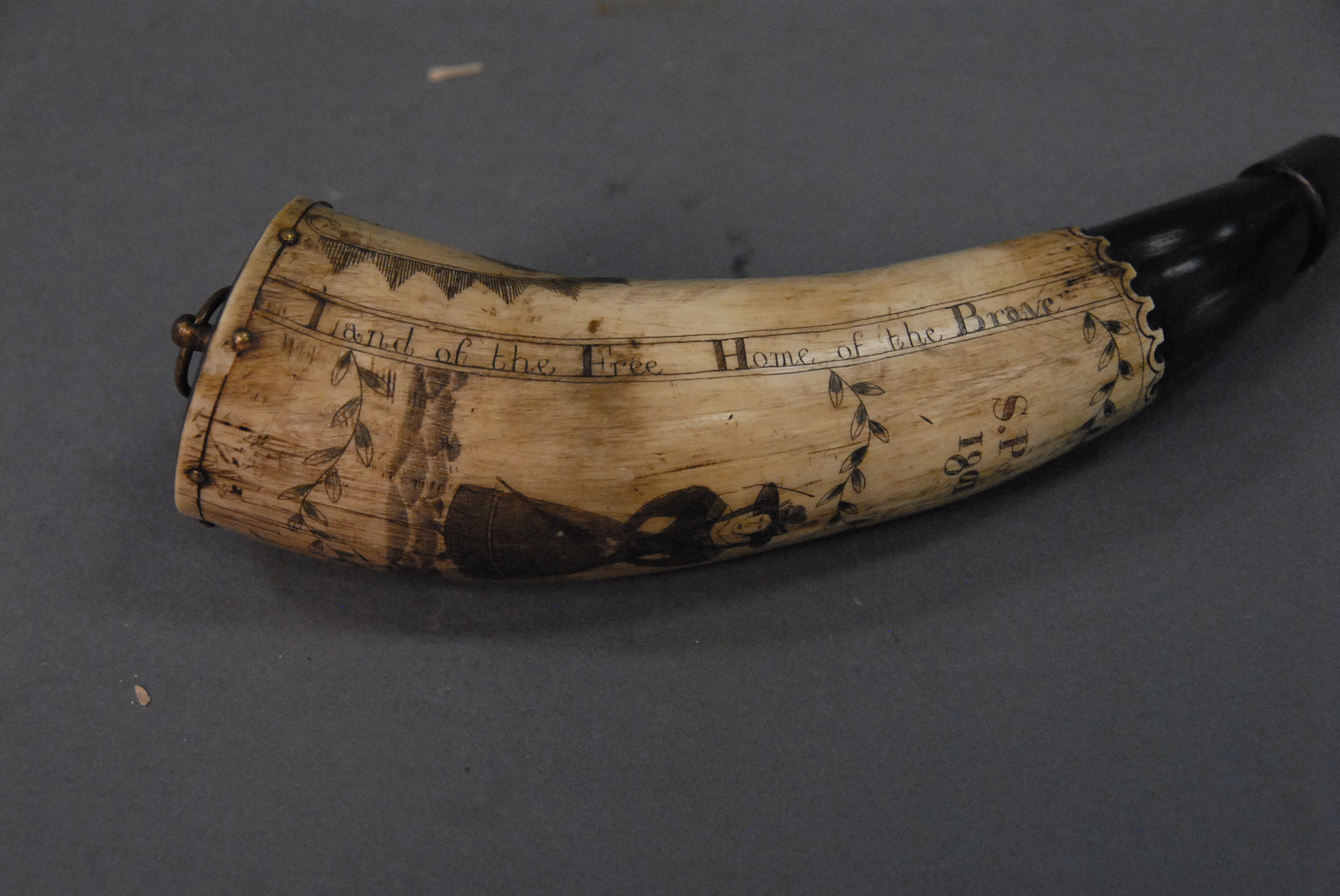 Lot 344: S. Potts 1801 signed powder horn with an eagle