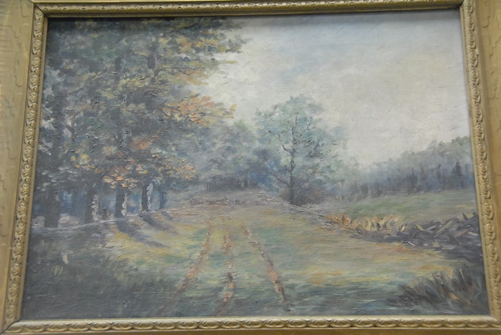 Small oil on canvas wooded landscape with a road, 12 x 16.