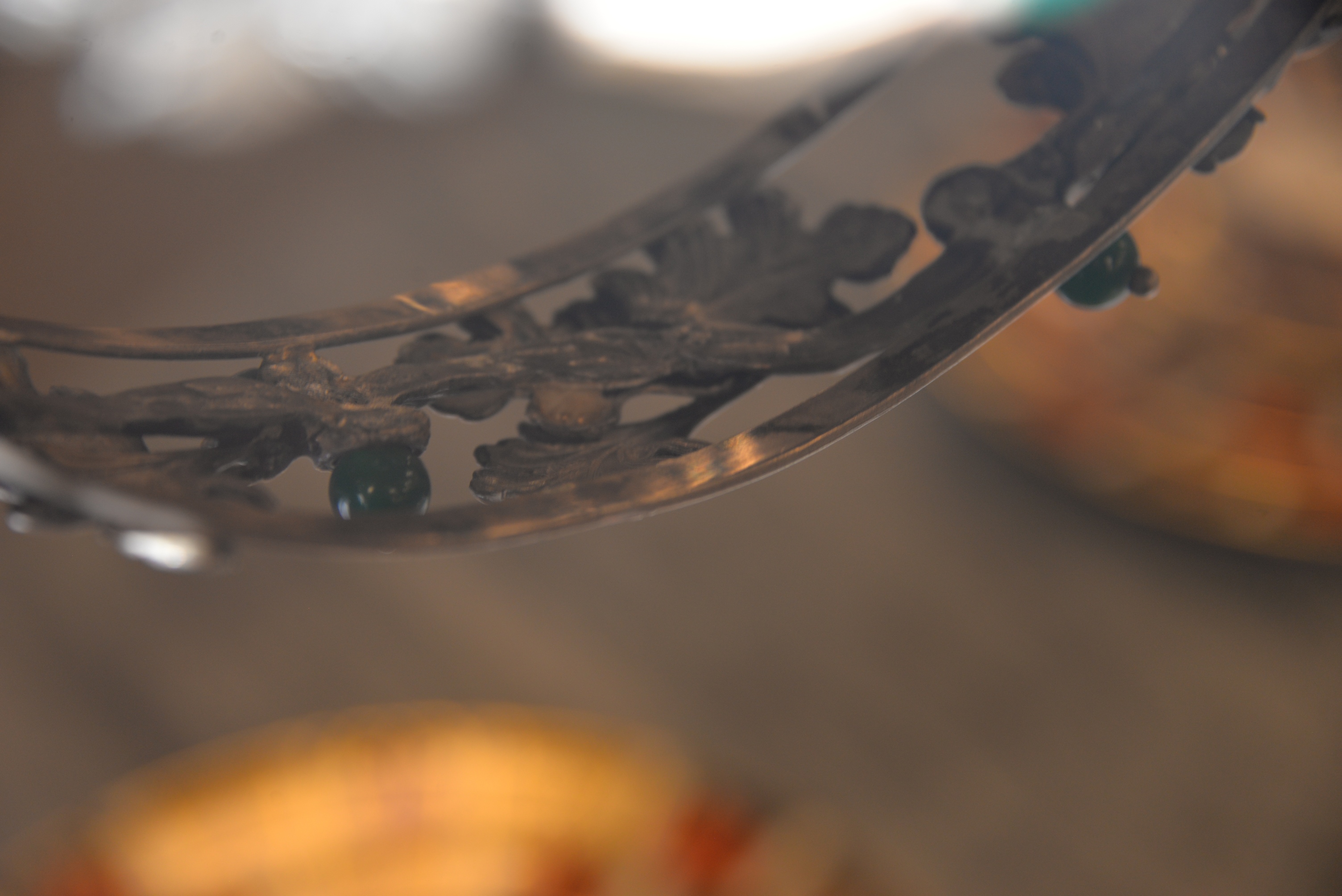 Condition: overall good, light scratches throughout, some loose acorns, possible repairs