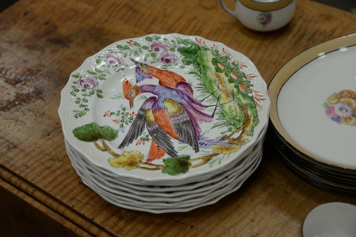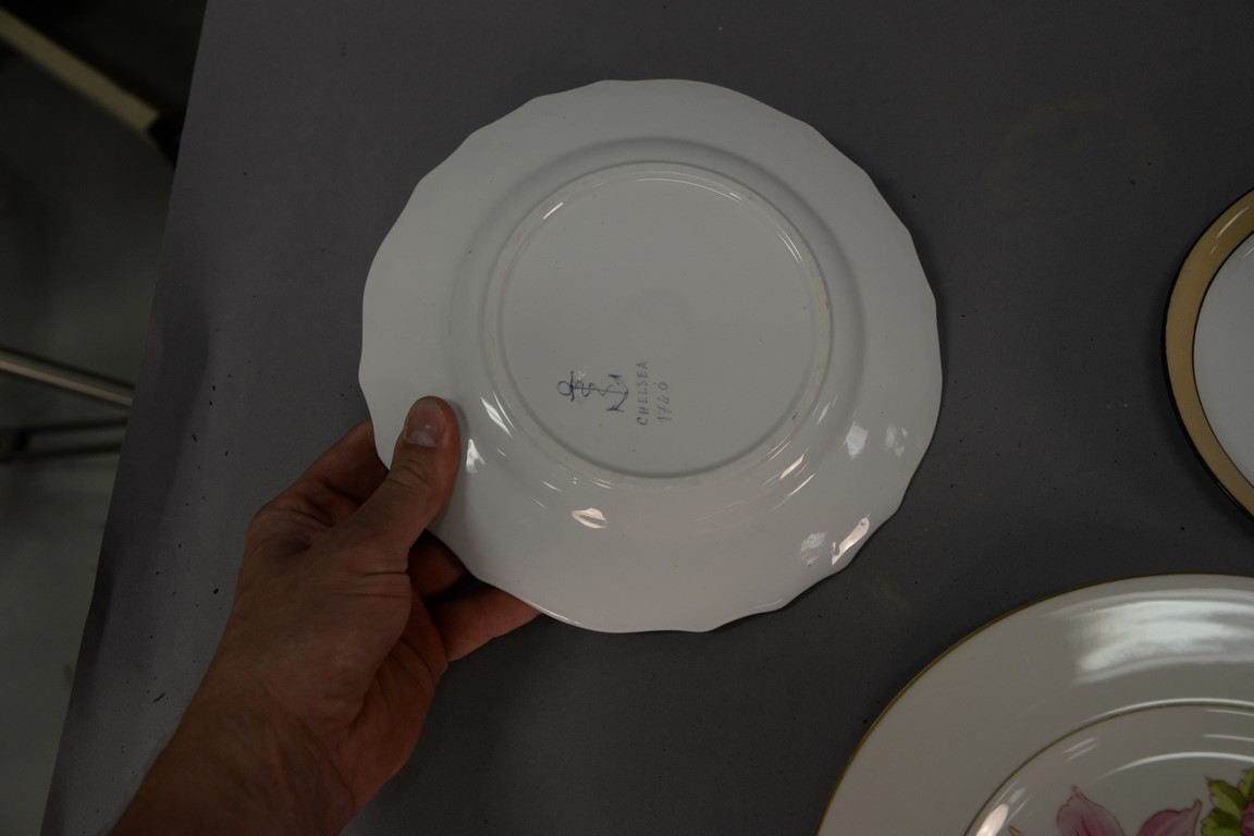 Lot 344: Three sets of plates including Pickard, Chelsea, and R.S. Germany. dia. 8 3/4in. to 10 3/4in.