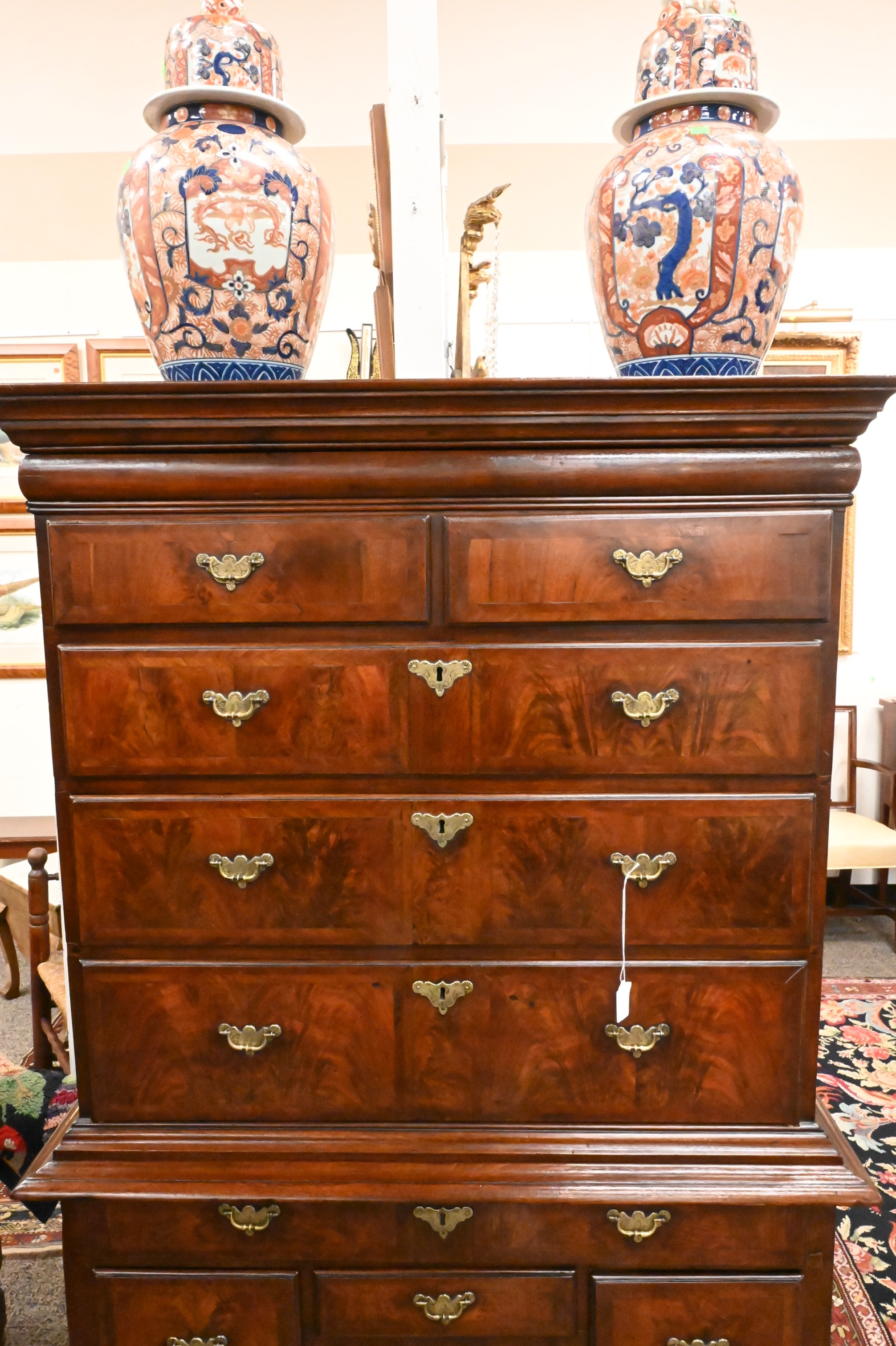 In two parts, having cornice drawer over two drawers over 3 drawers