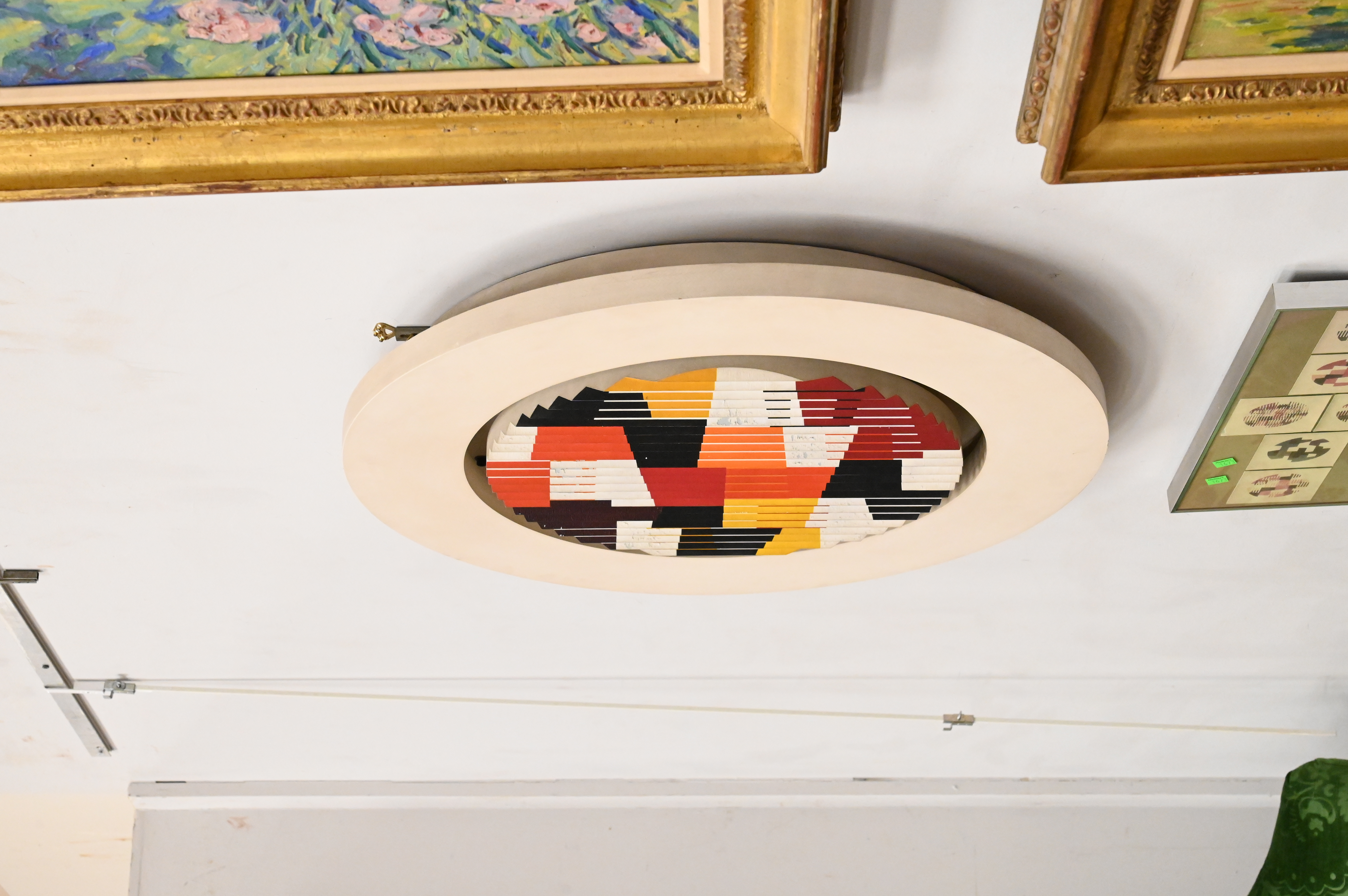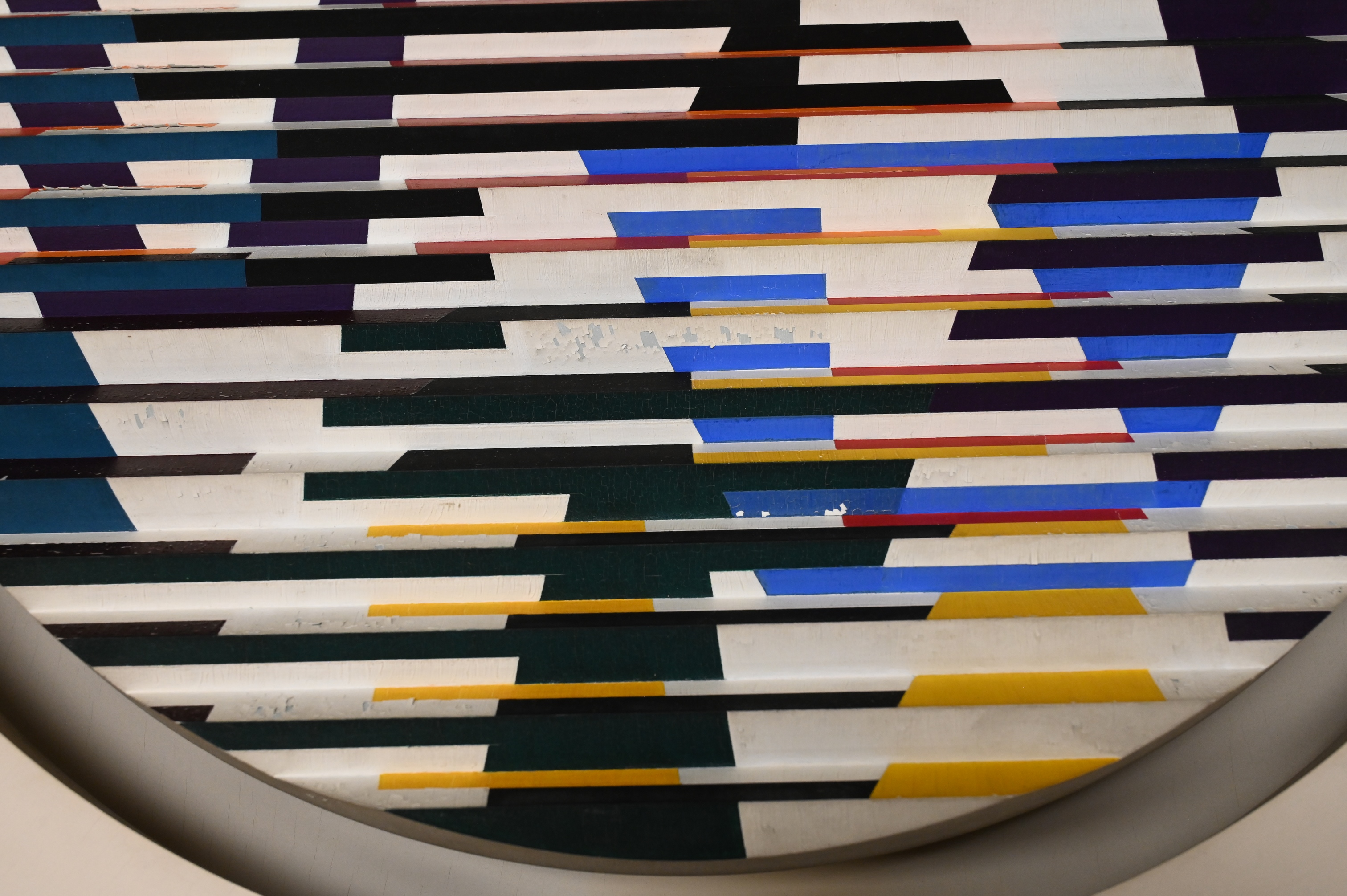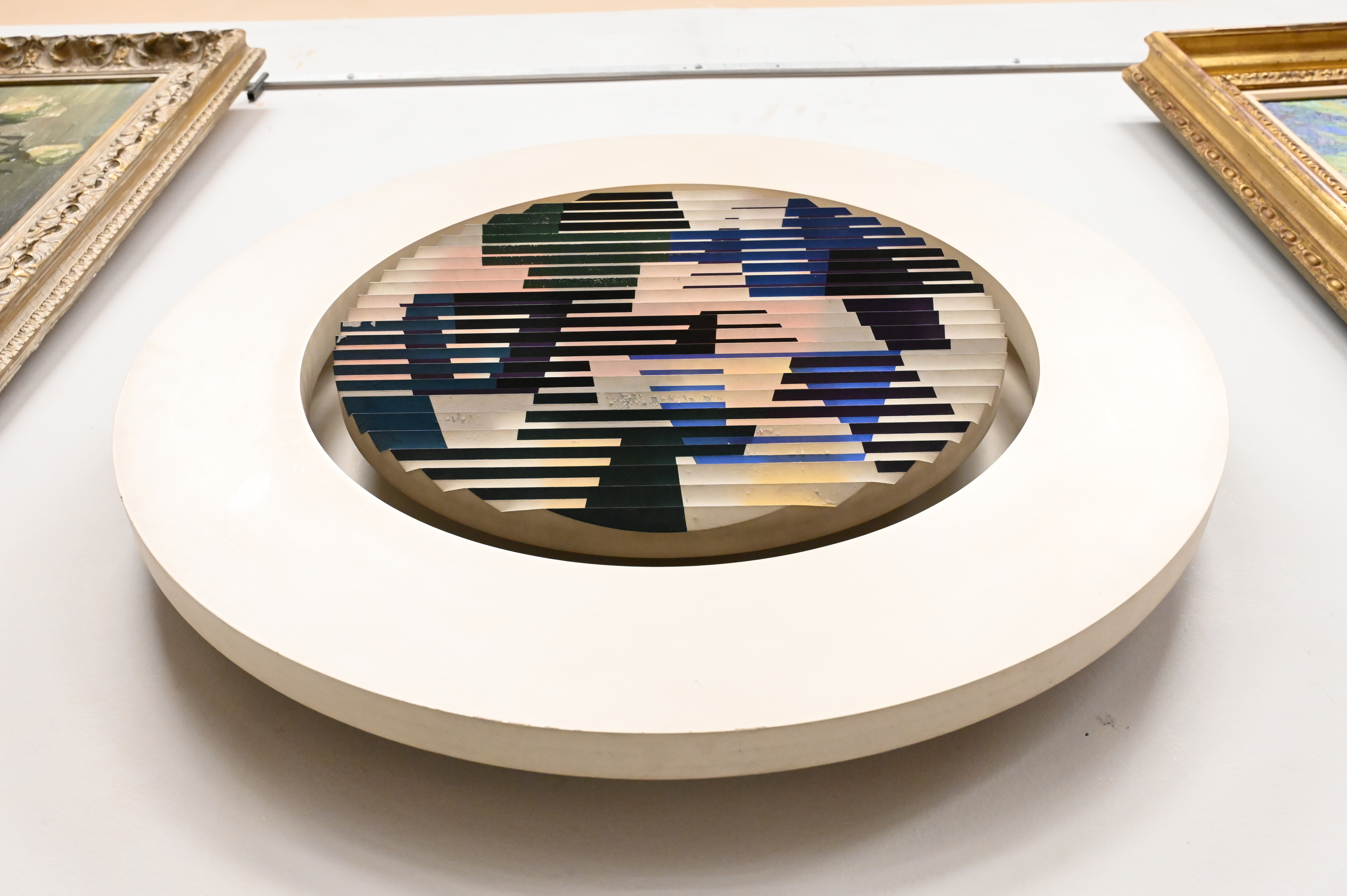 Polymorphic painting demonstrating liberation from gravity rotating on its axis, it can be placed in any position 360 degrees, having 6 painted views