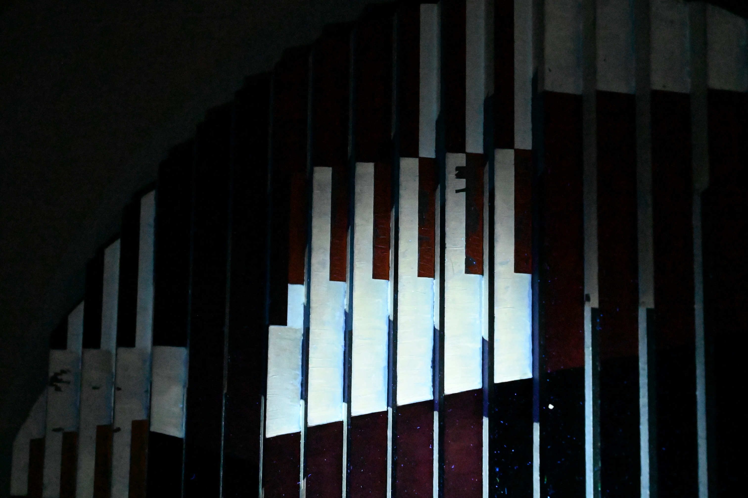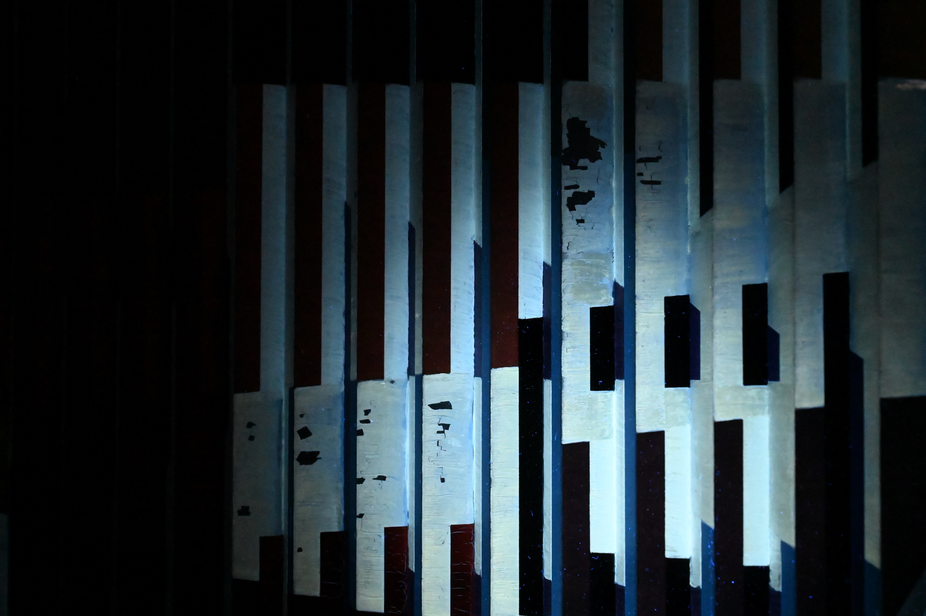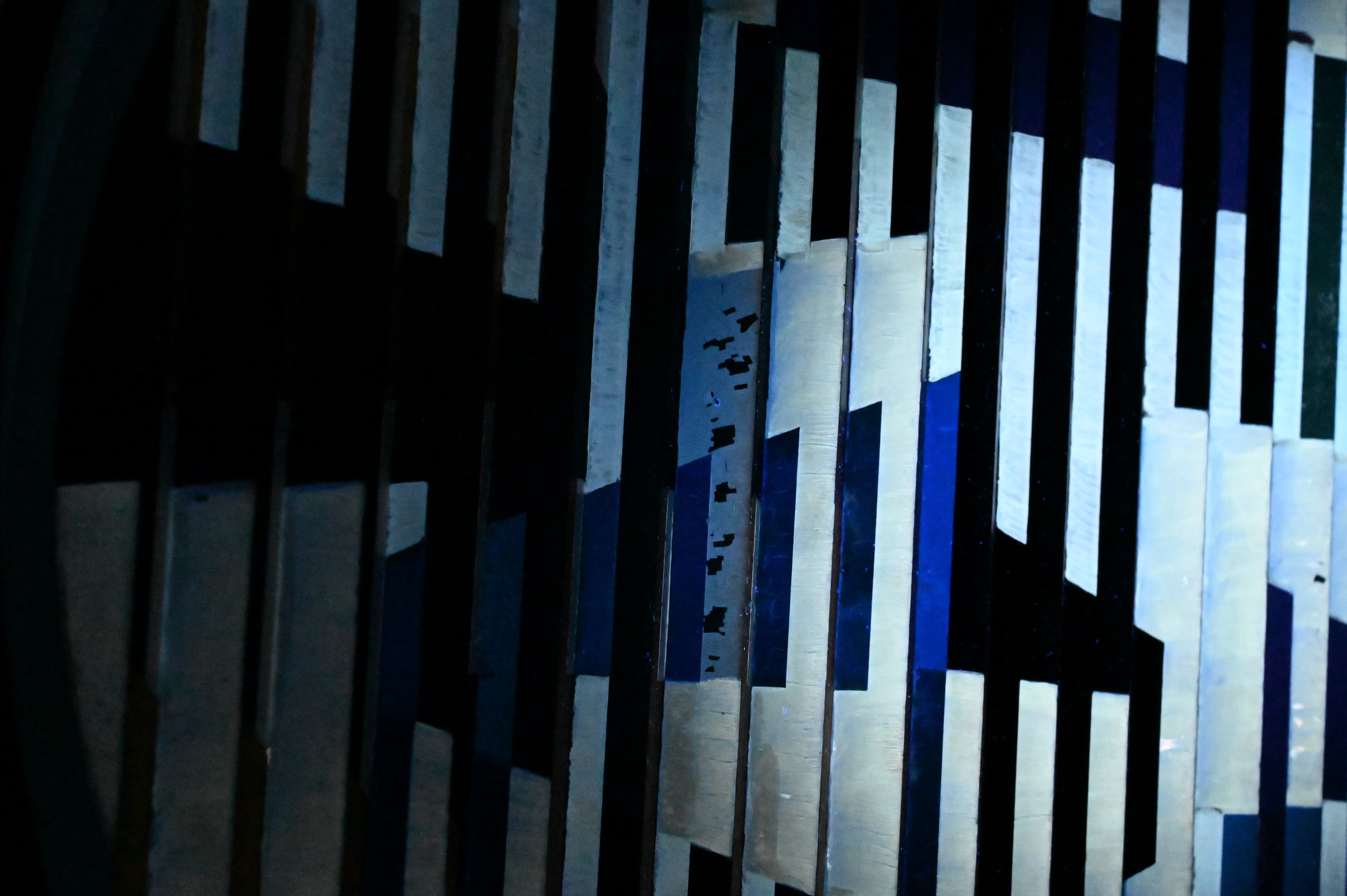 Polymorphic painting demonstrating liberation from gravity rotating on its axis, it can be placed in any position 360 degrees, having 6 painted views