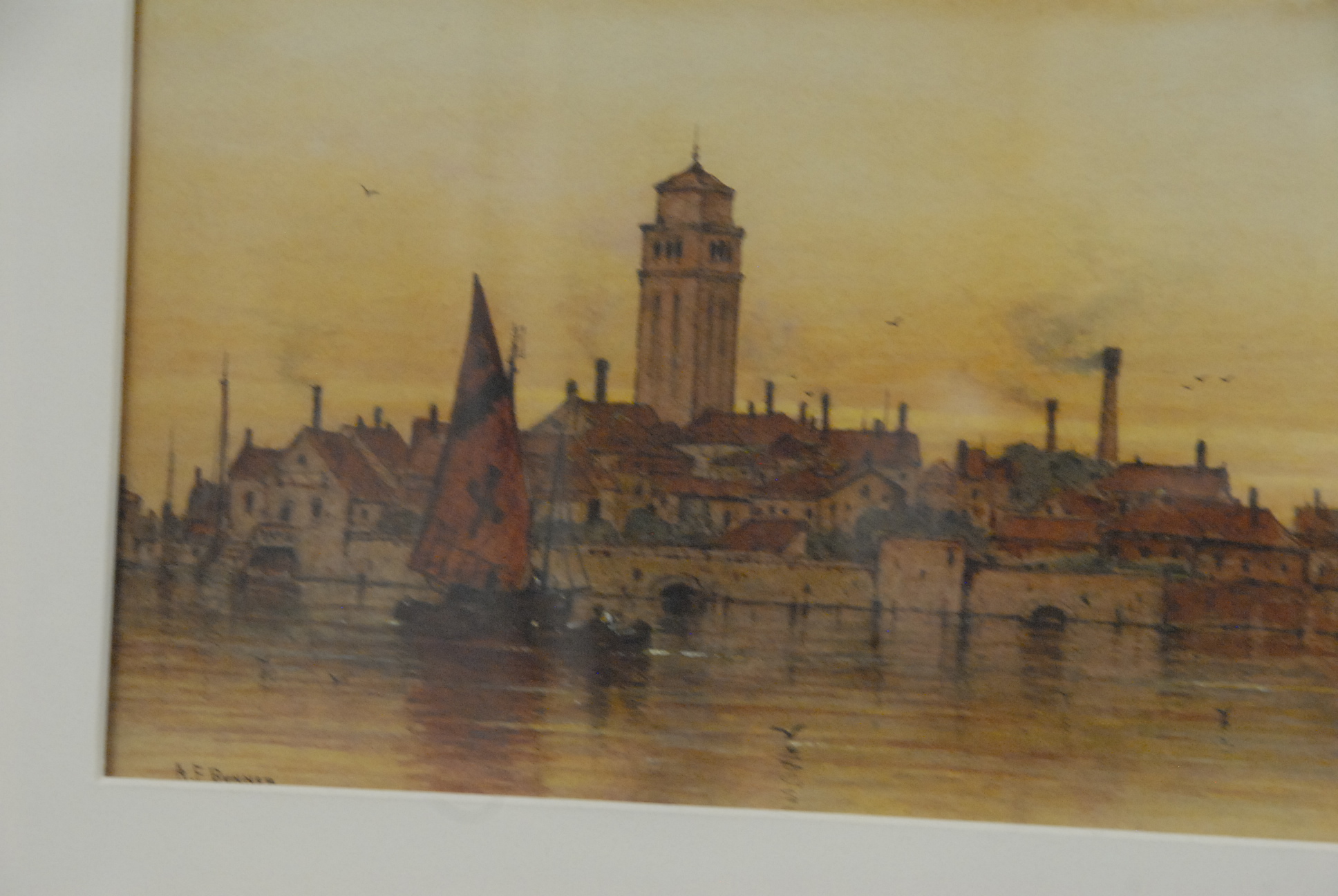 Andrew Fisher Bunner 1841-1897 watercolor of city’s edge signed lower left A.F. Bunner, 8 x 17.