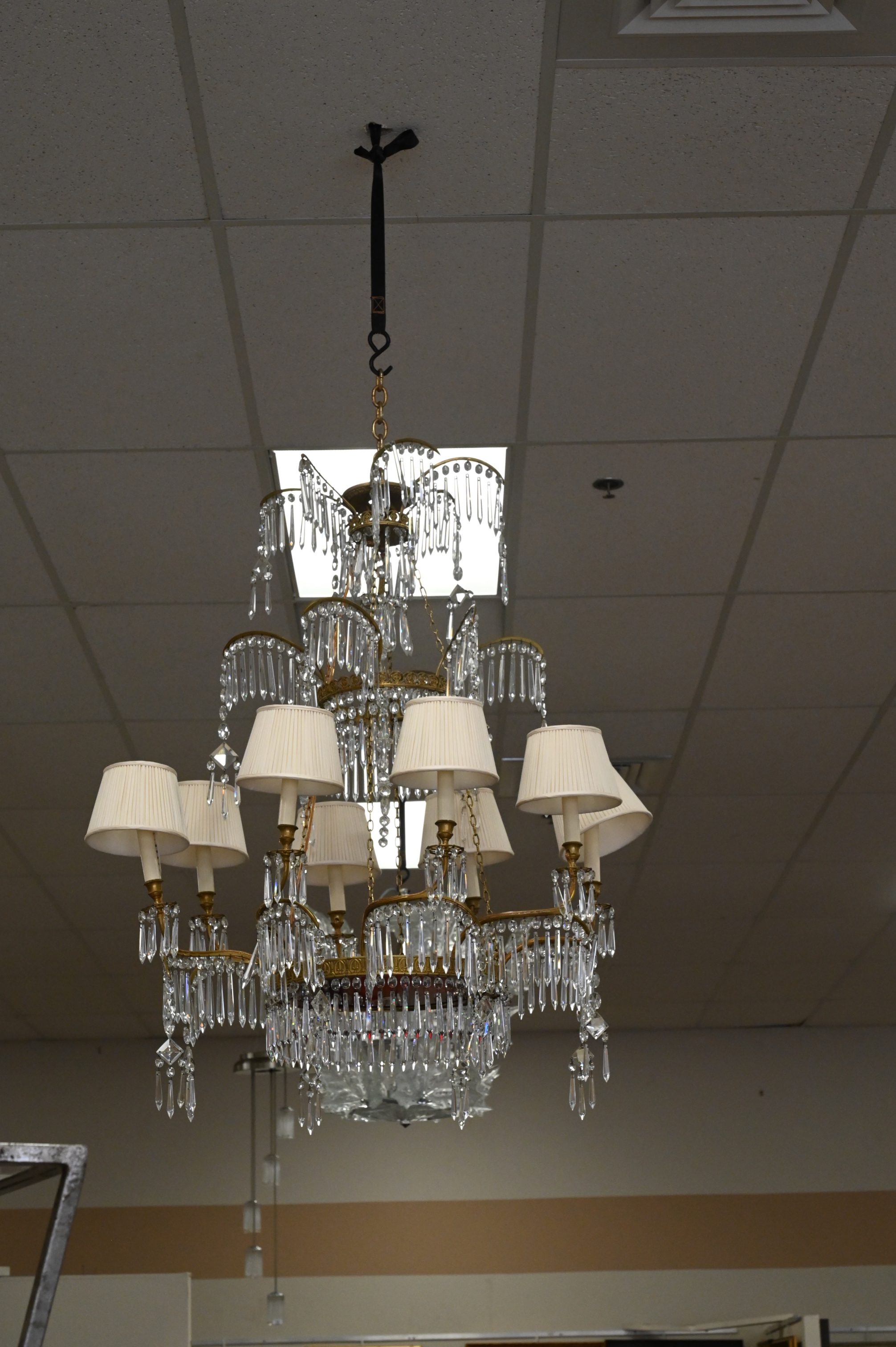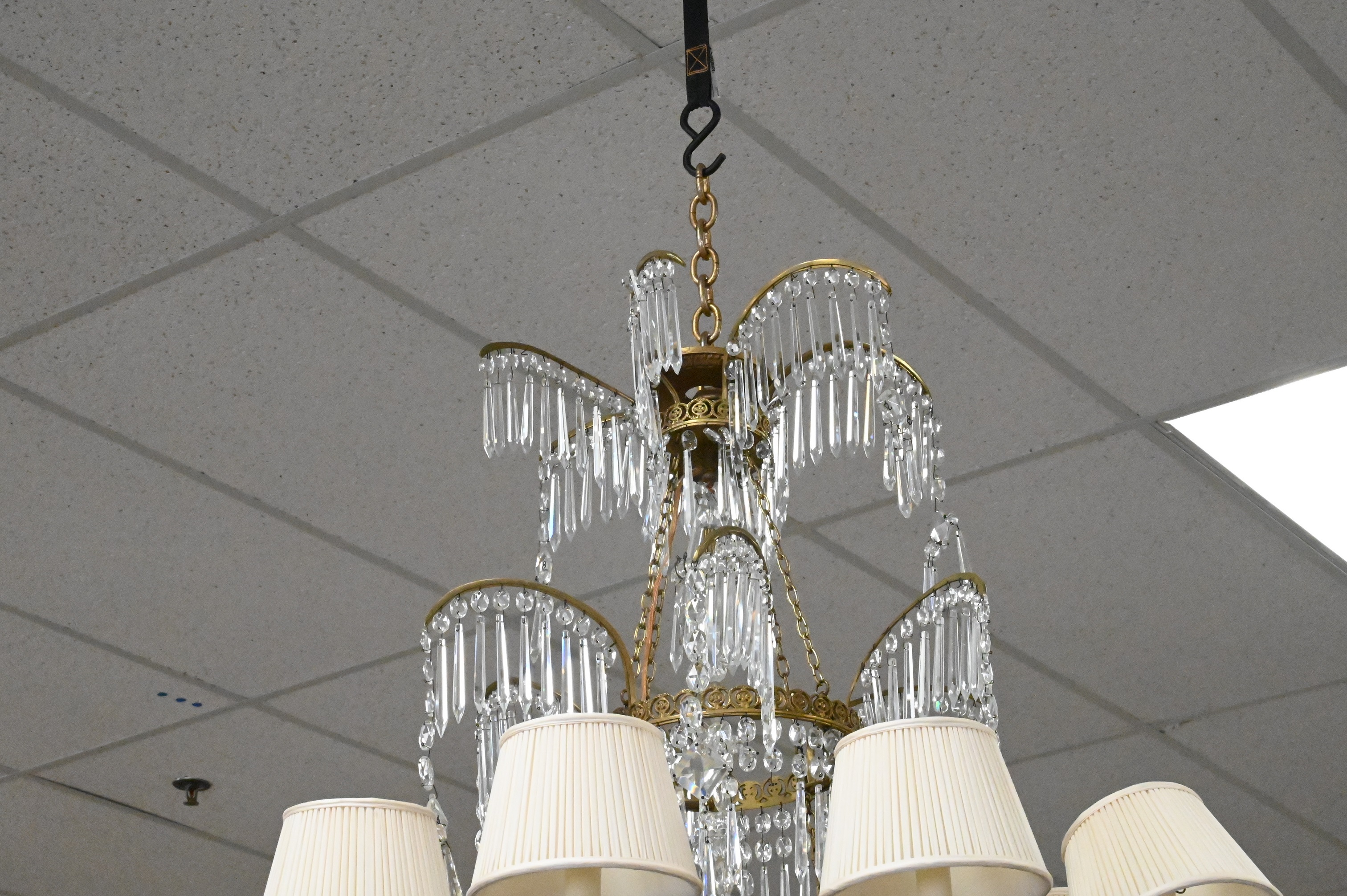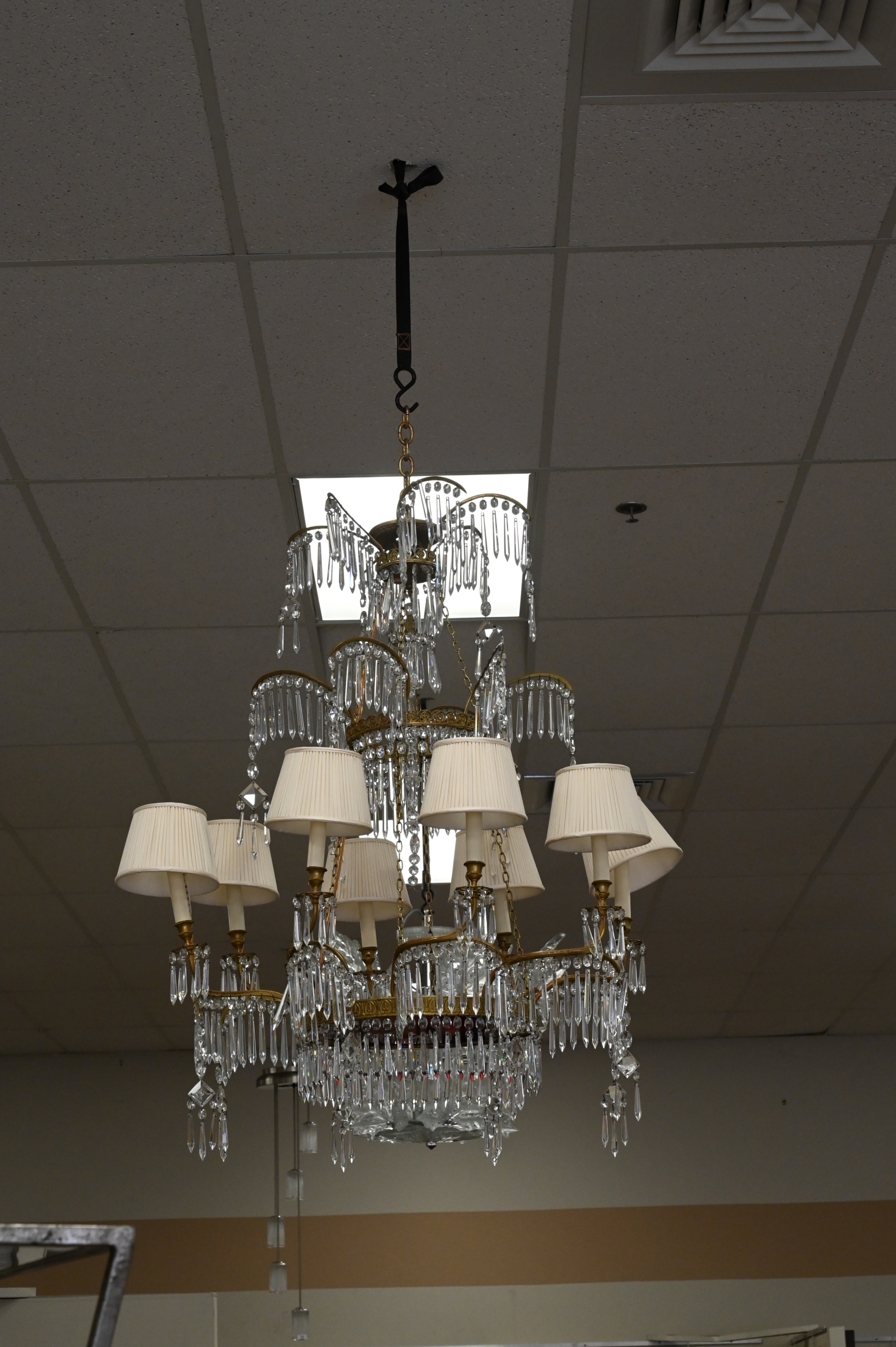 Lot 345: Baltic Gilt Metal Cut Glass and Ruby Glass Eight Light Chandelier