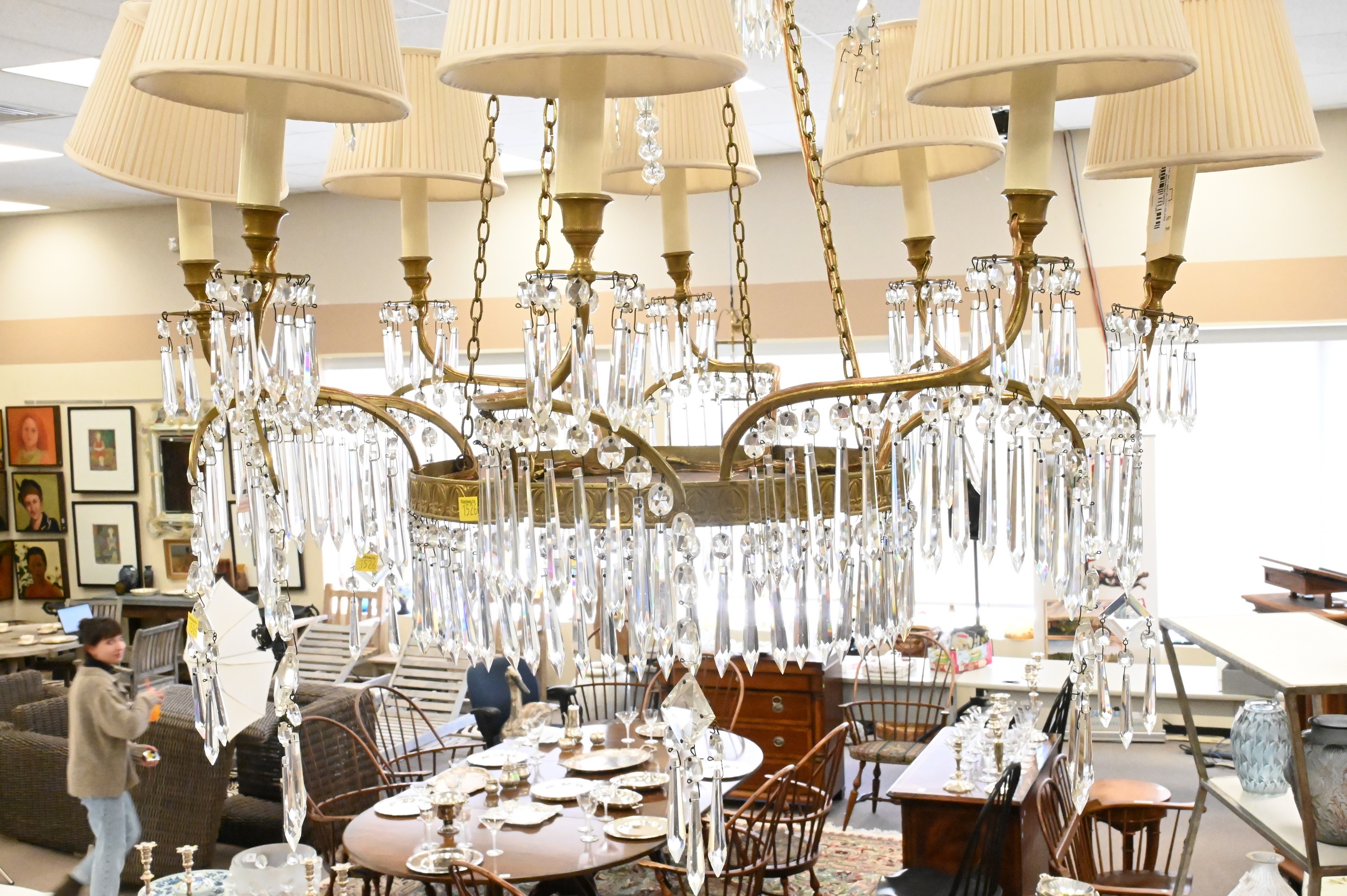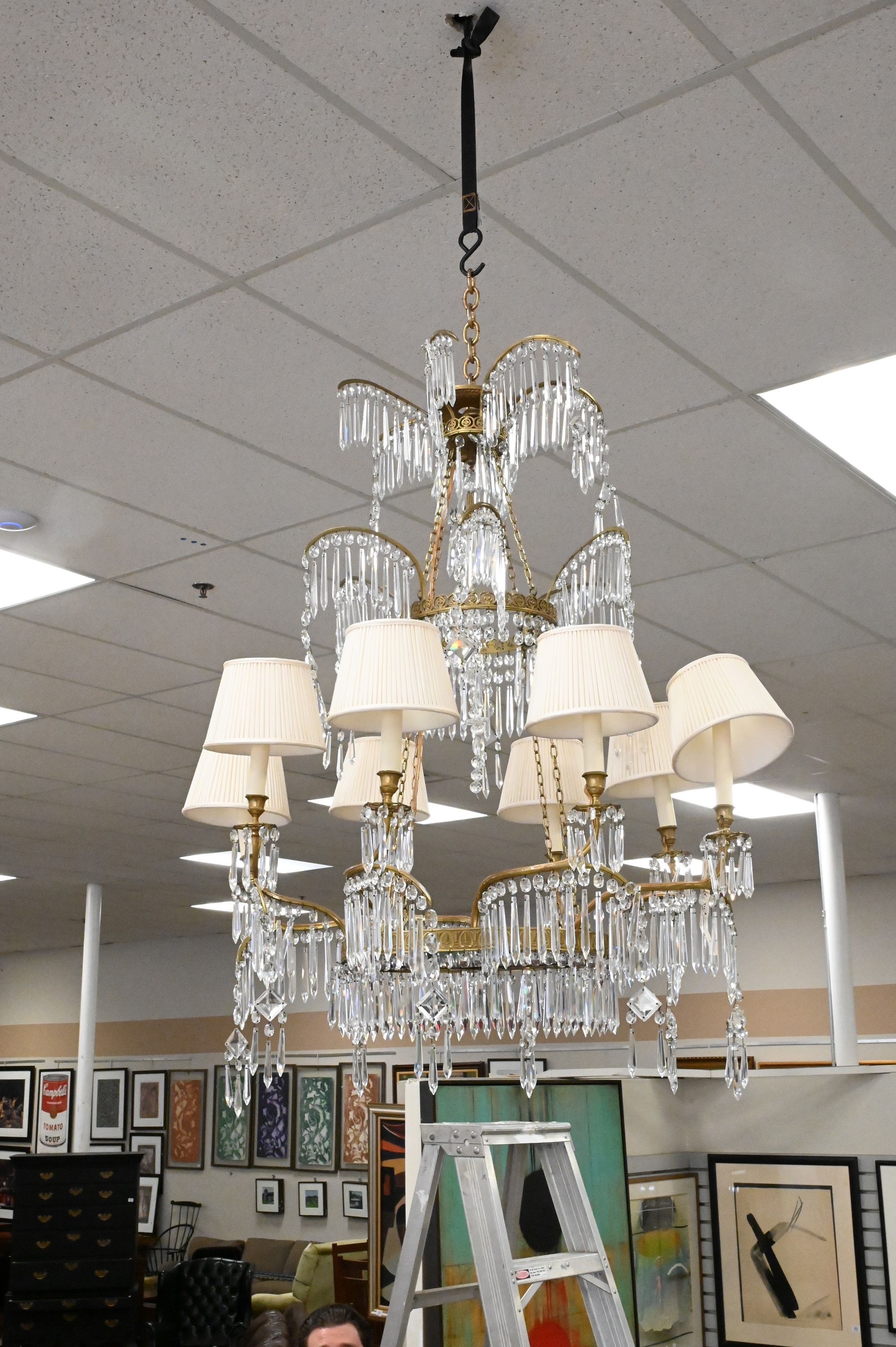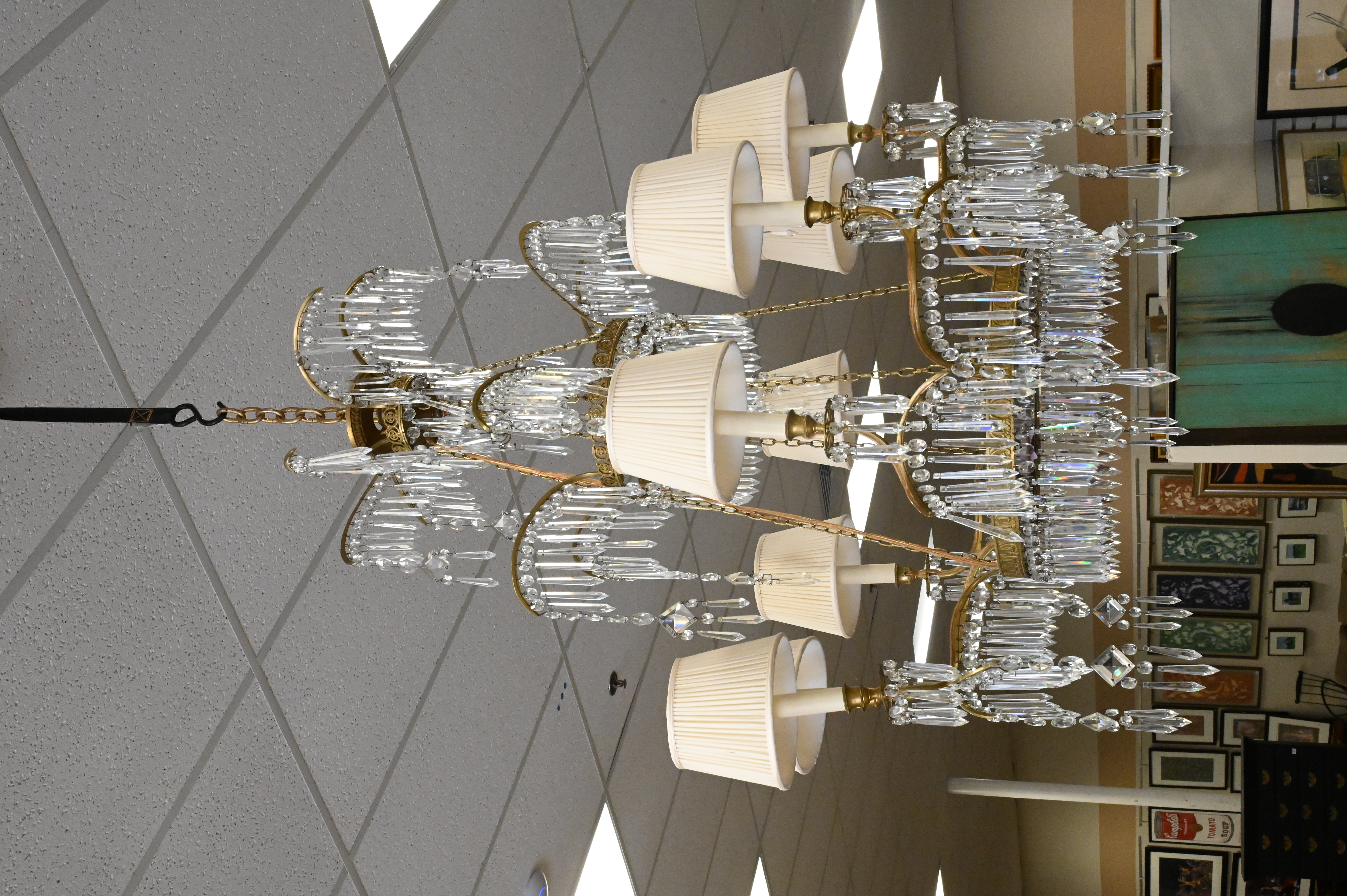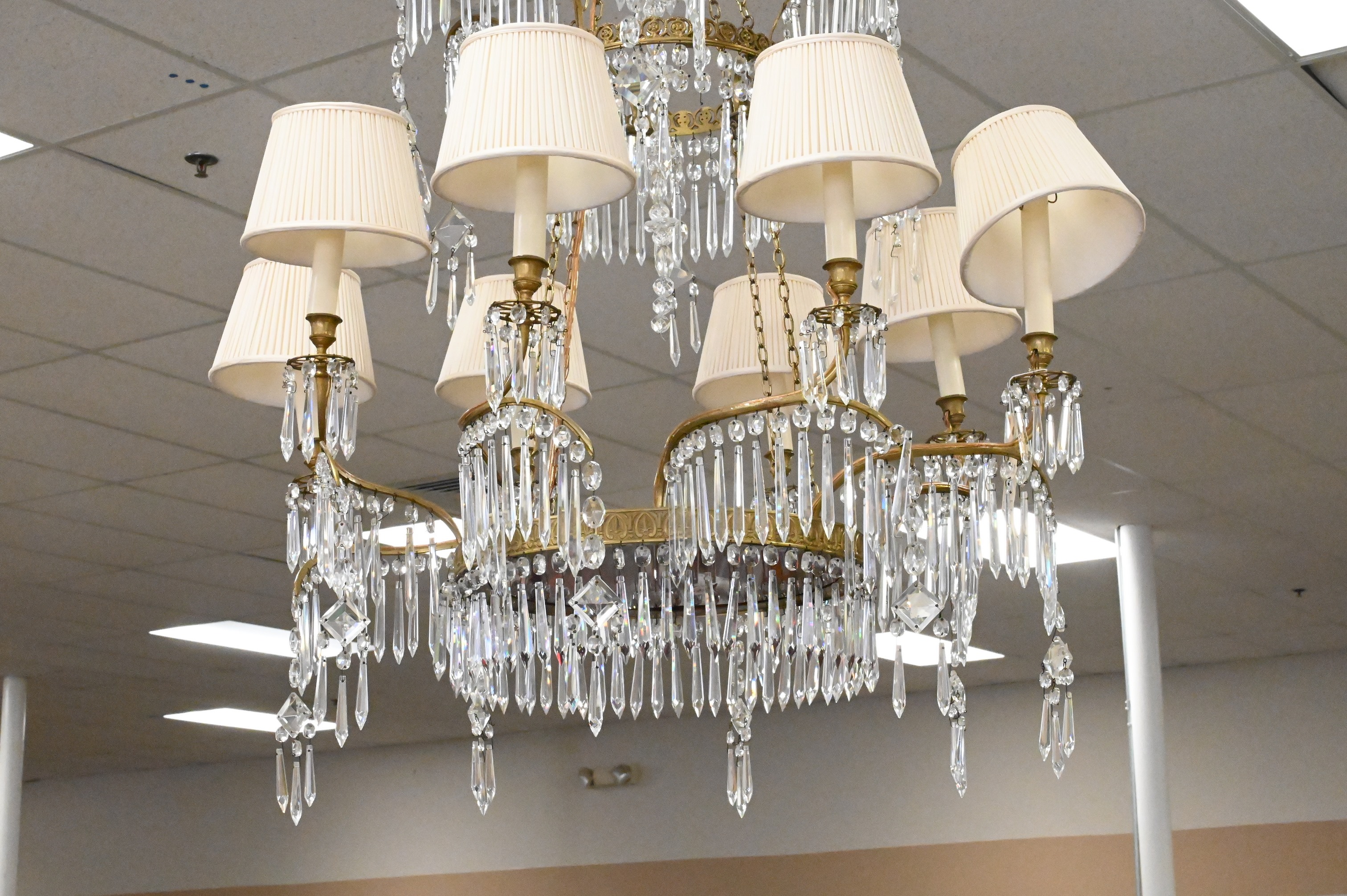 Lot 345: Baltic Gilt Metal Cut Glass and Ruby Glass Eight Light Chandelier