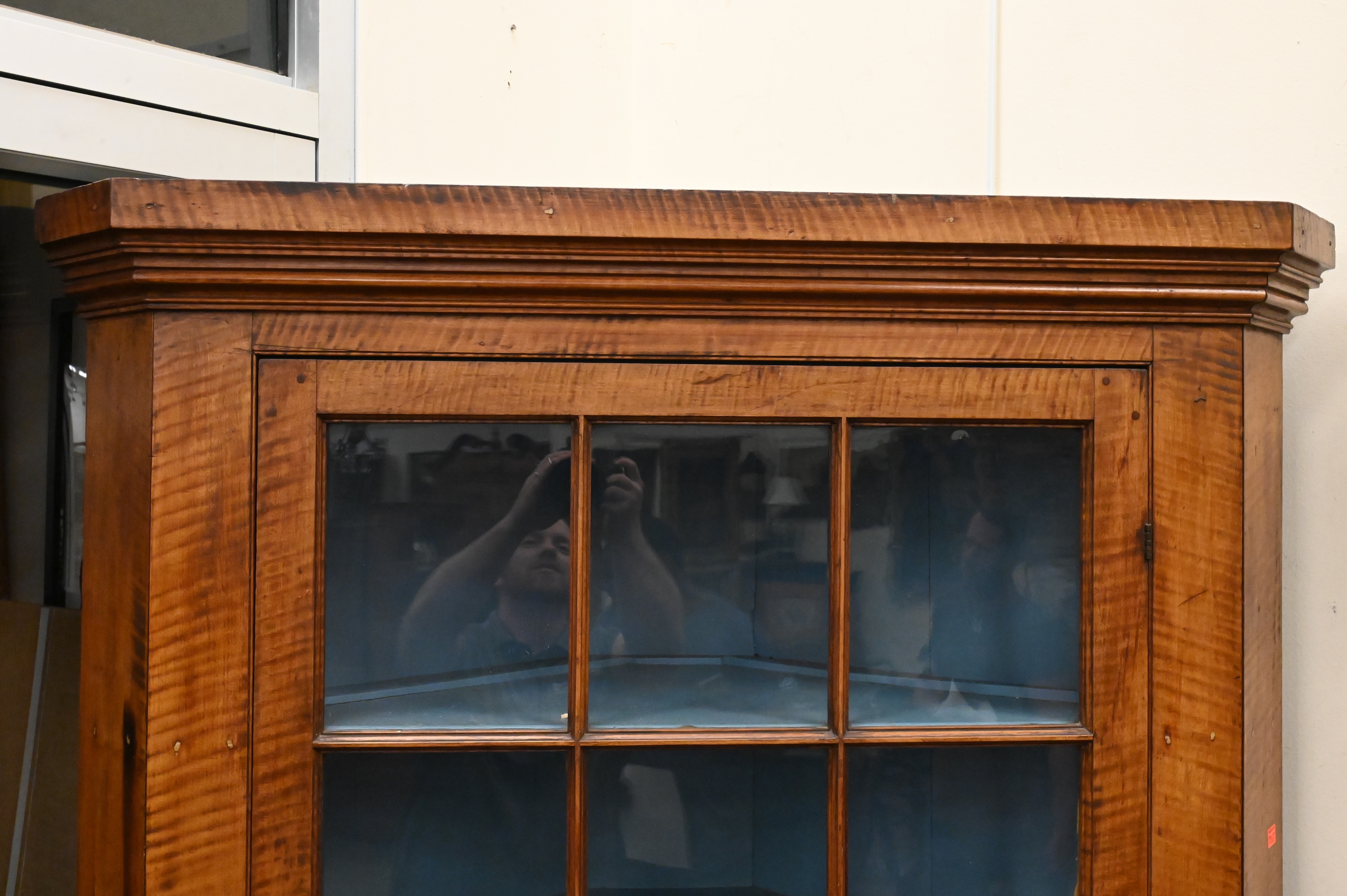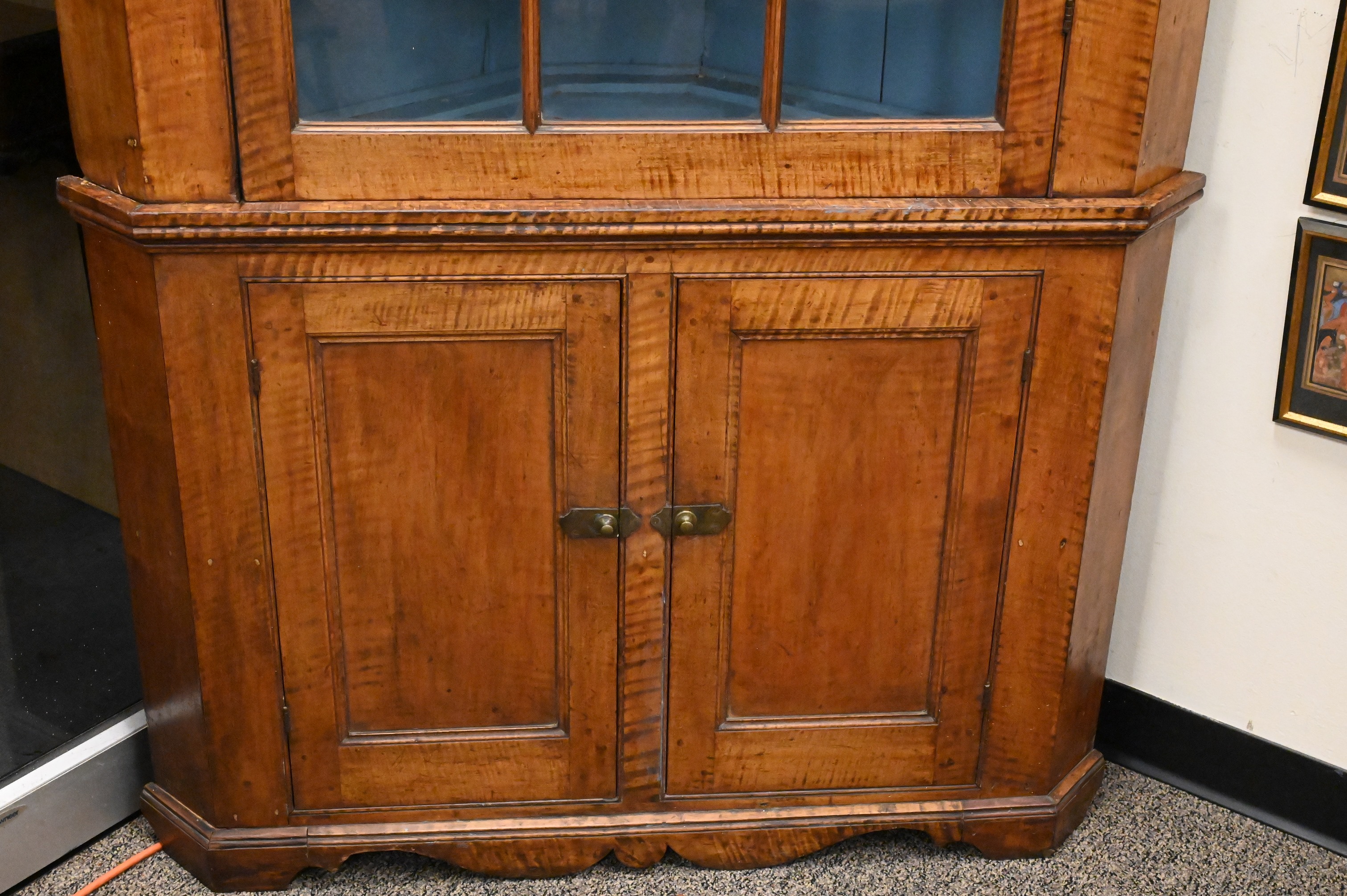 Lot 345: Chippendale Tiger Maple Corner Cupboard in Two Parts