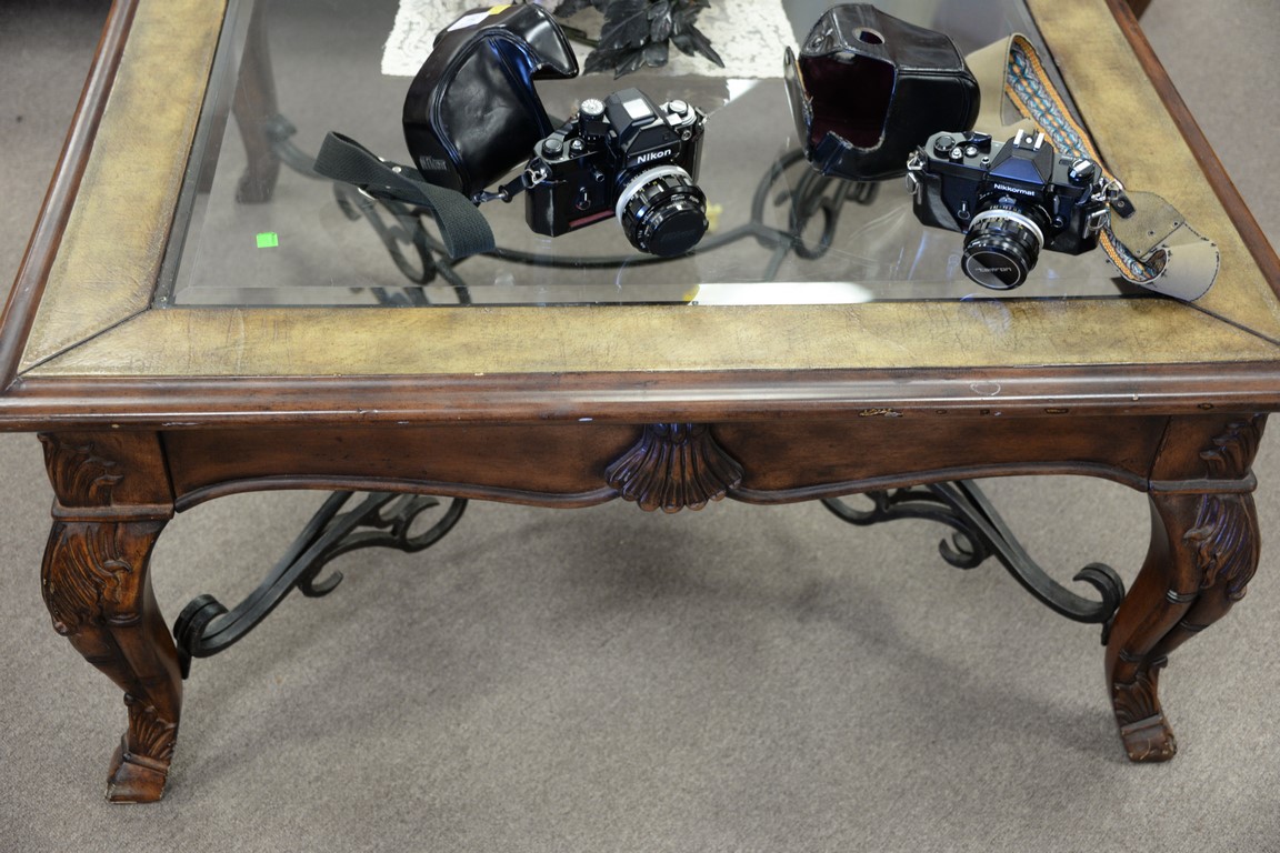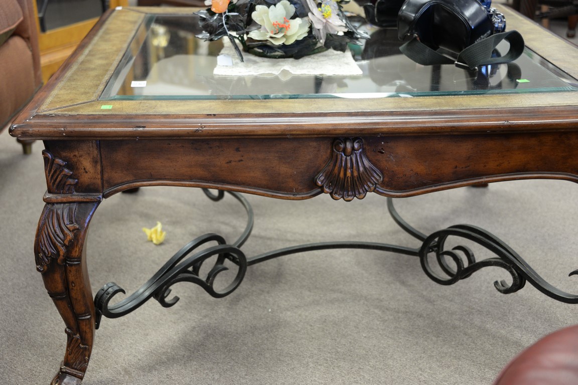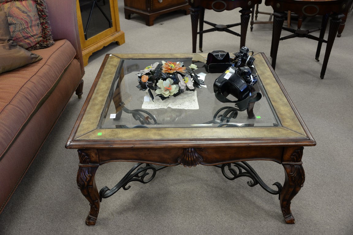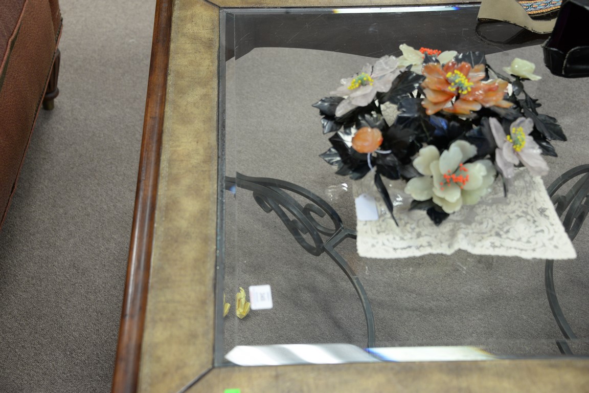 Glass top coffee table. ht. 20in., top: 42 x 42