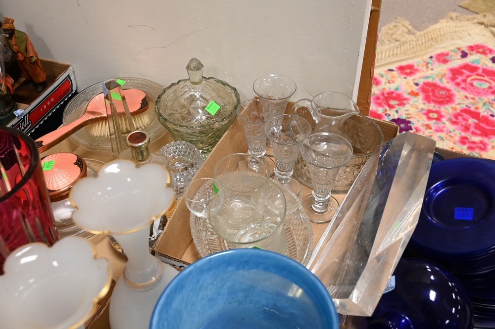 Group of Six Tray Lots of Glass, to include vases, plates, bowls, etc.