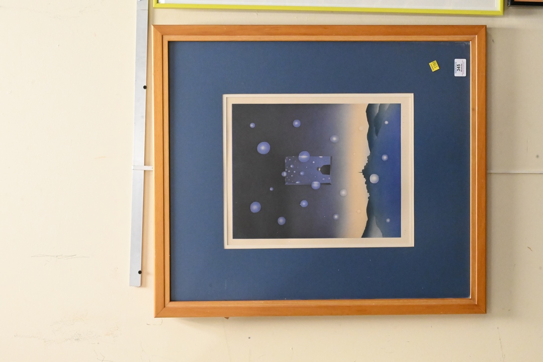 Jean Michel Folon (1934 – 2005), Un Matin, colored etching, pencil signed and numbered, 16 1/2″ x 13″.