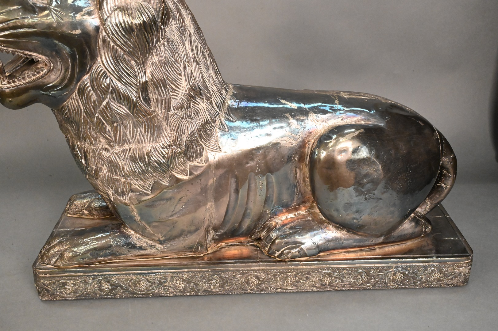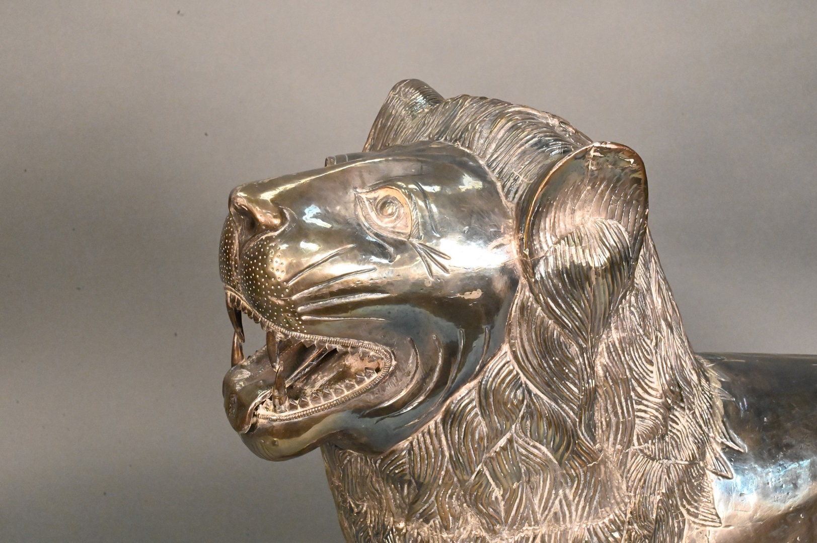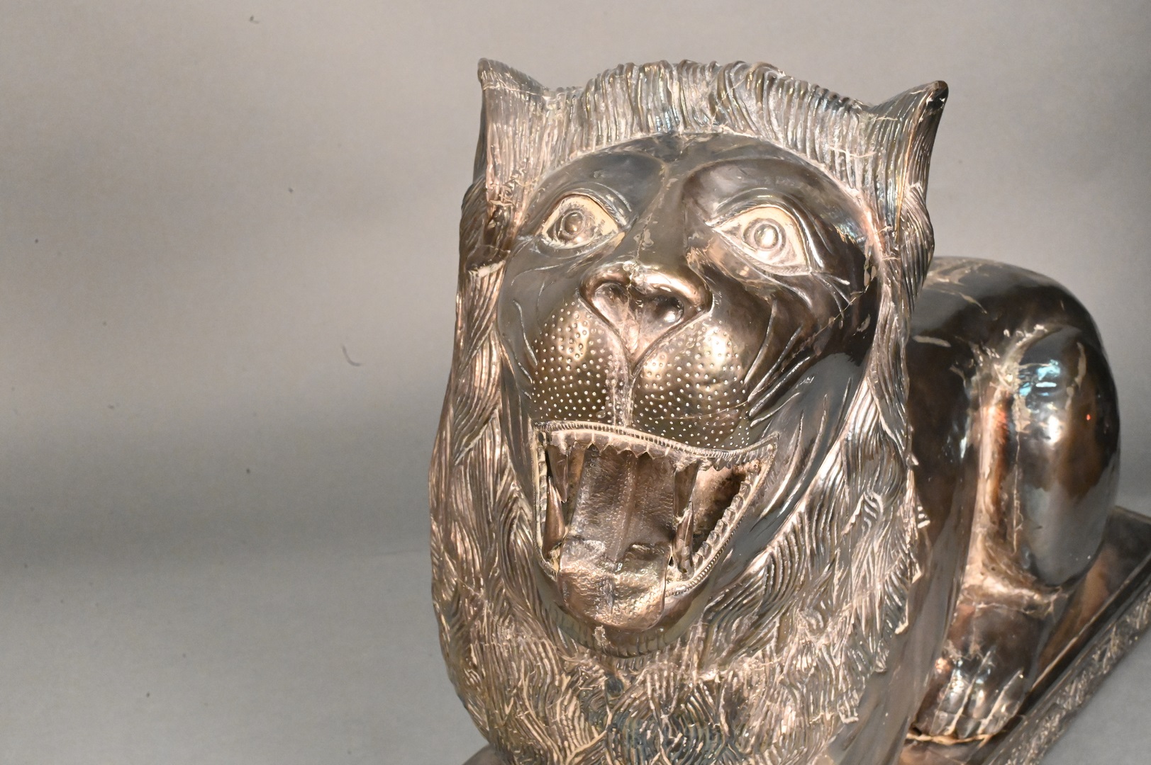 Lot 345: Large Indian Silver Recumbent Lion Figure
