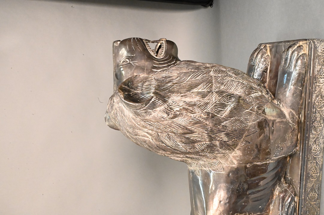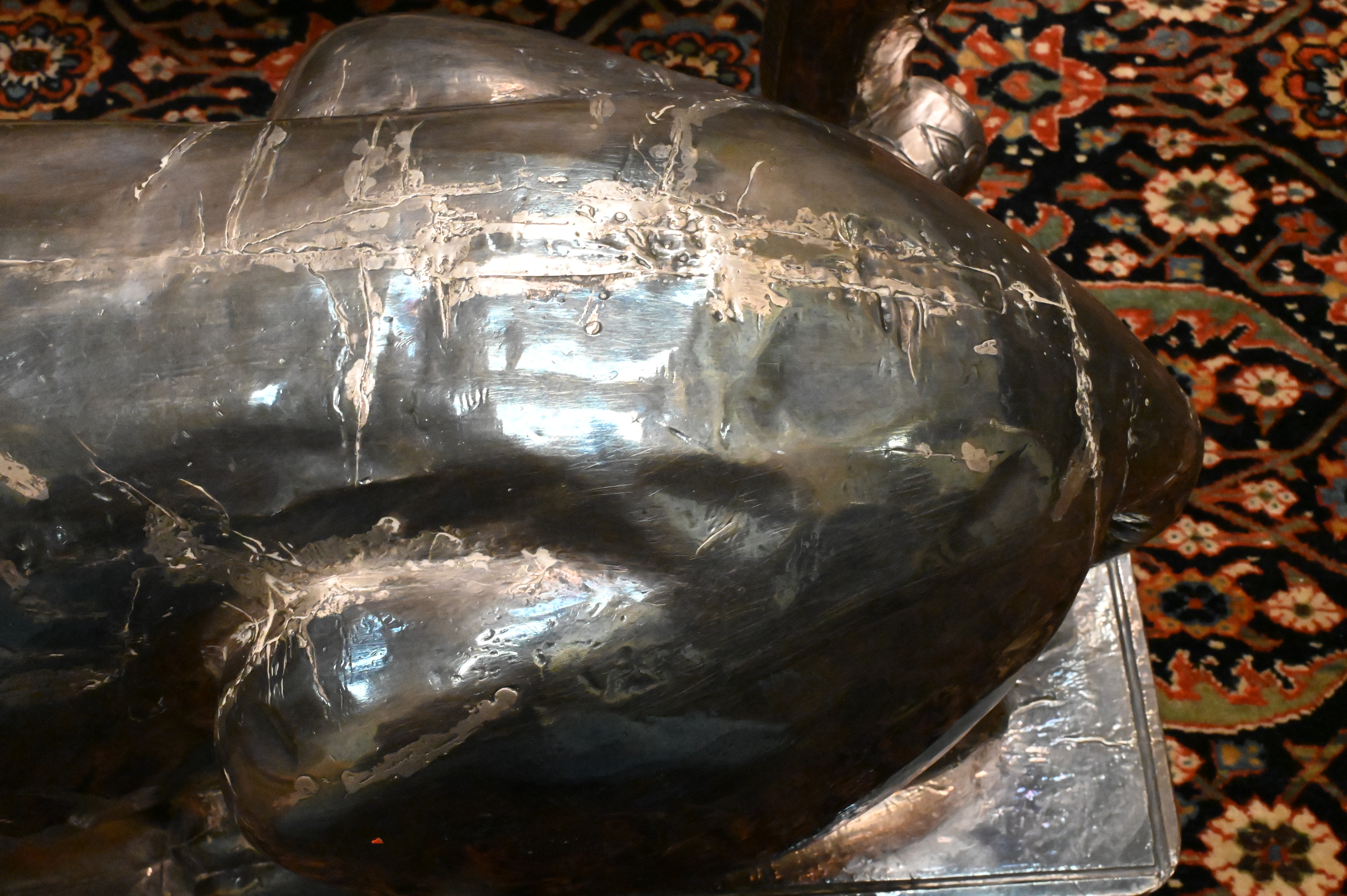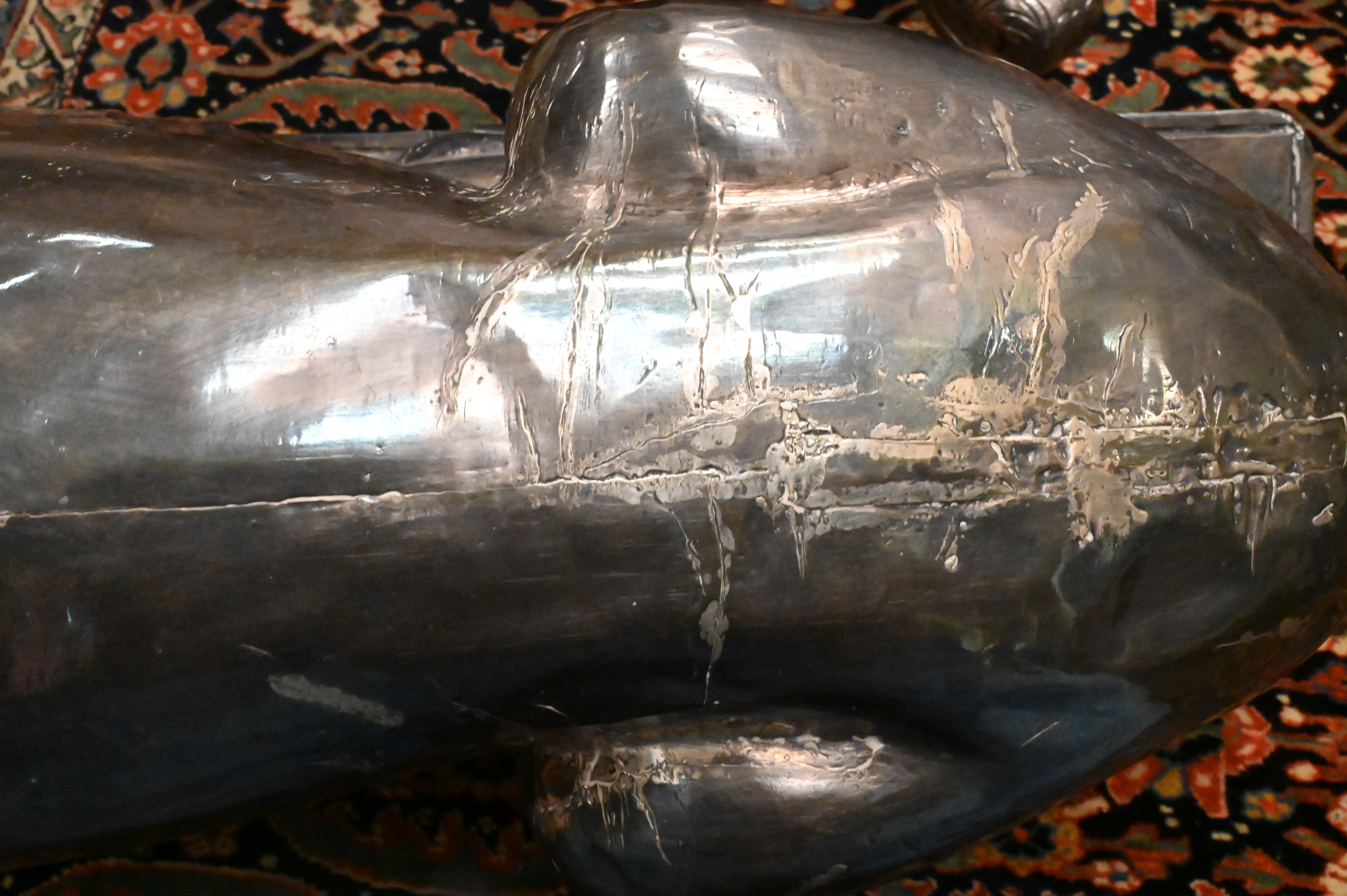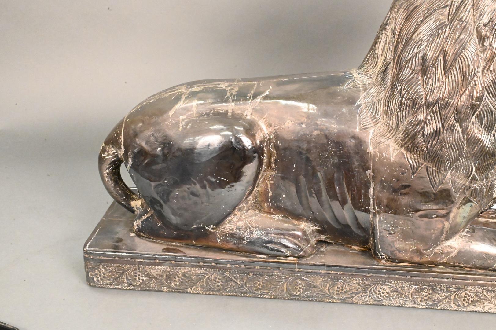 Lot 345: Large Indian Silver Recumbent Lion Figure
