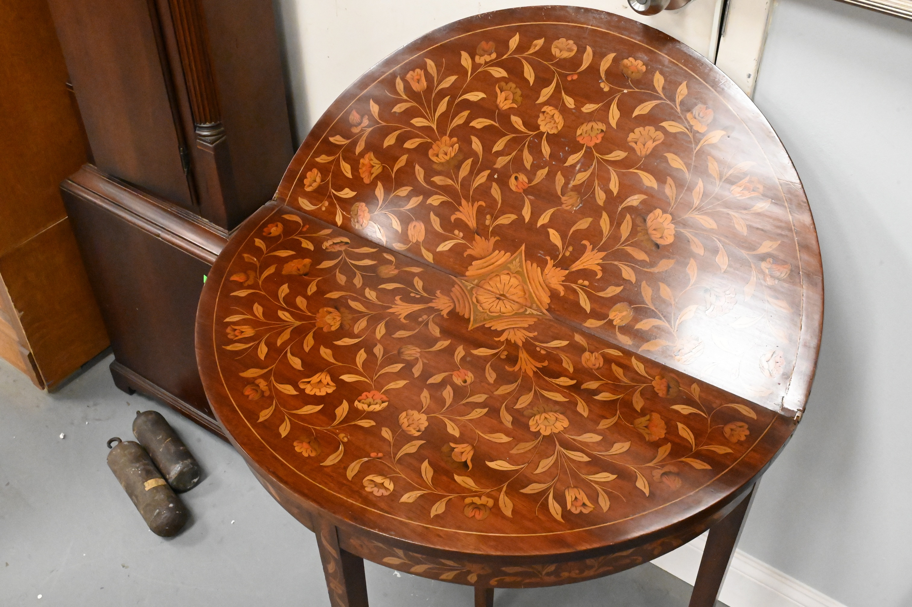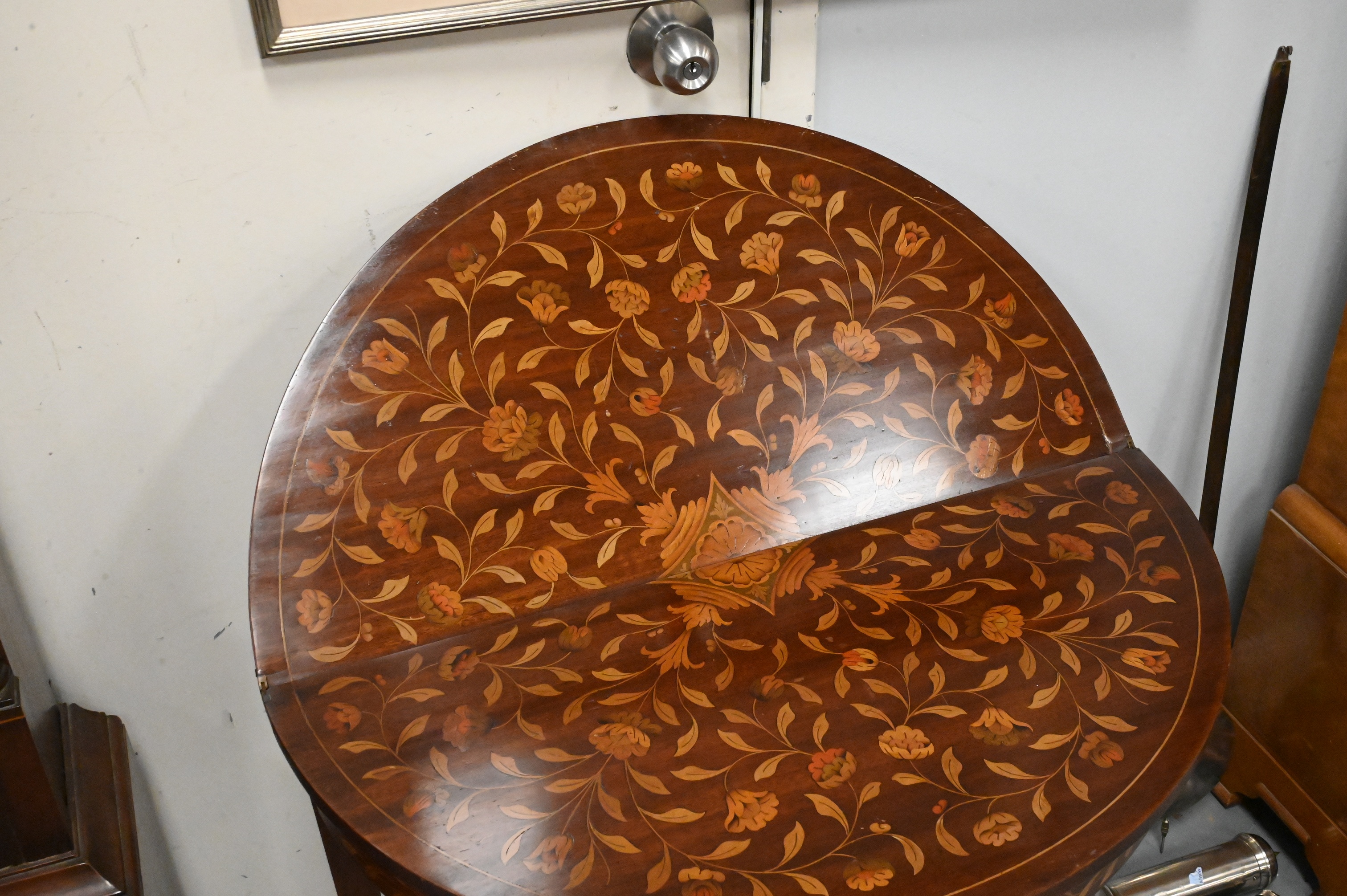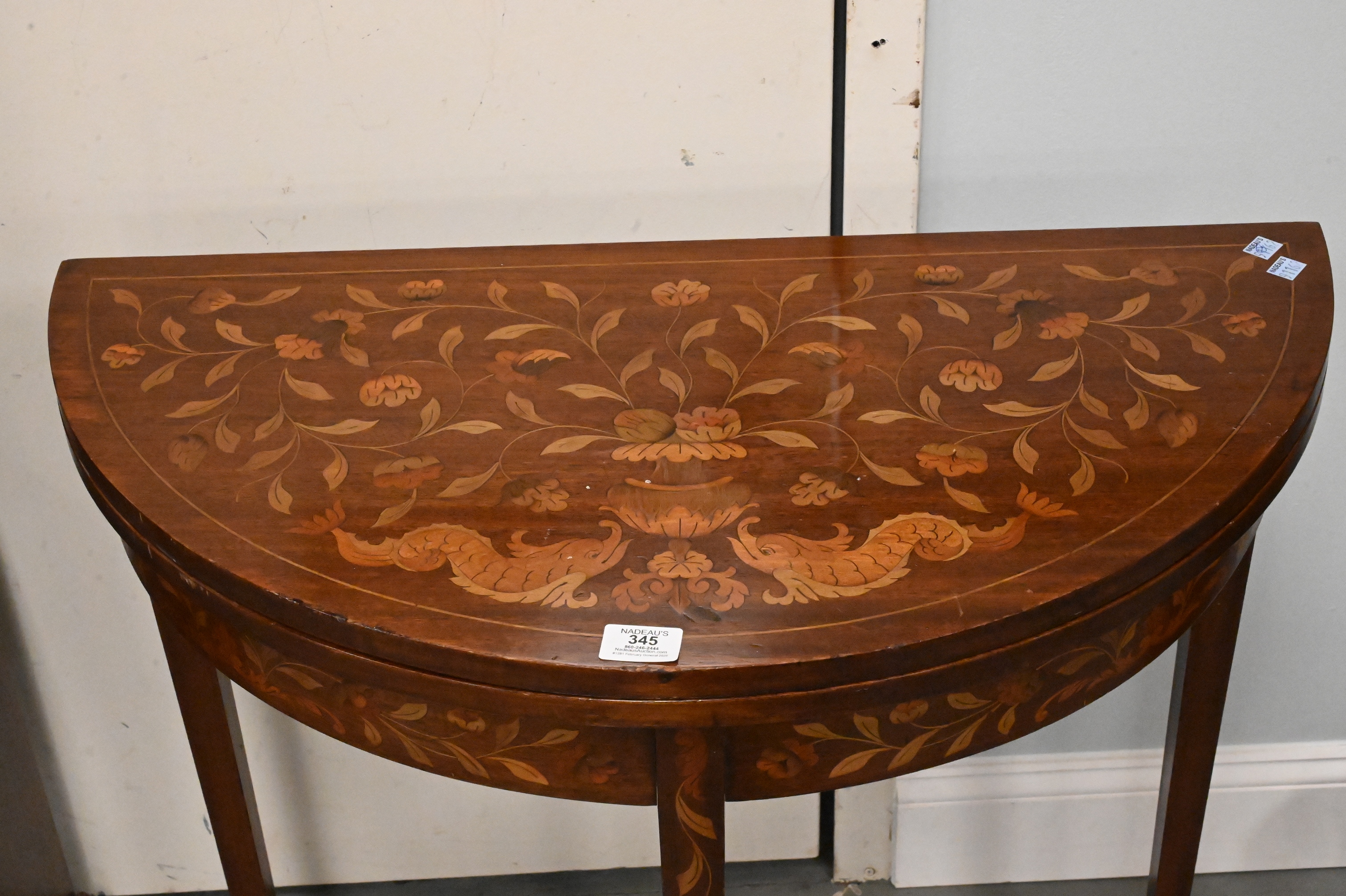 Lot 345: Marquetry Mahogany Inlaid Demilune Games Table