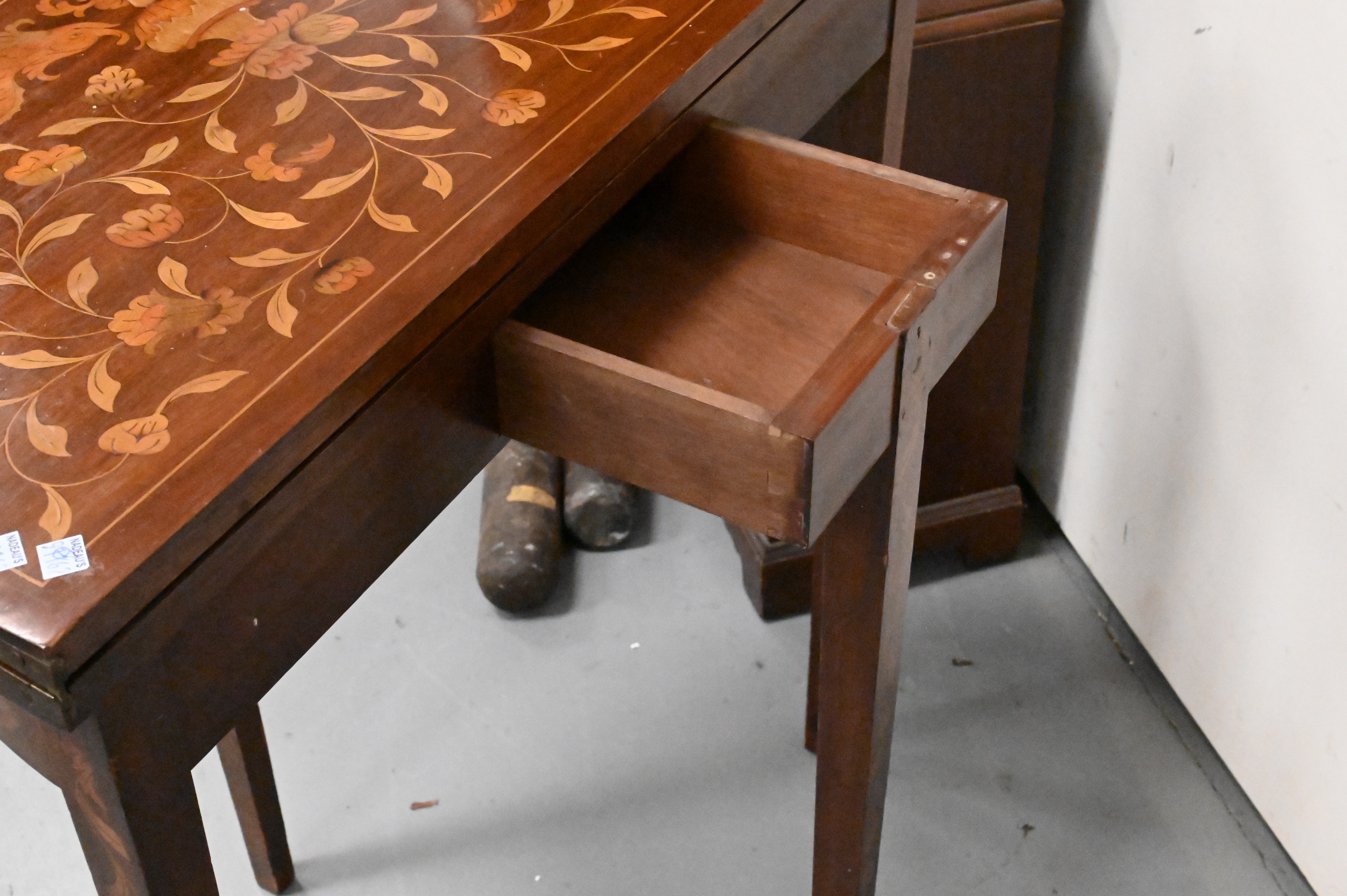 having floral and dolphin inlay, interior having floral inlay and secret drawer