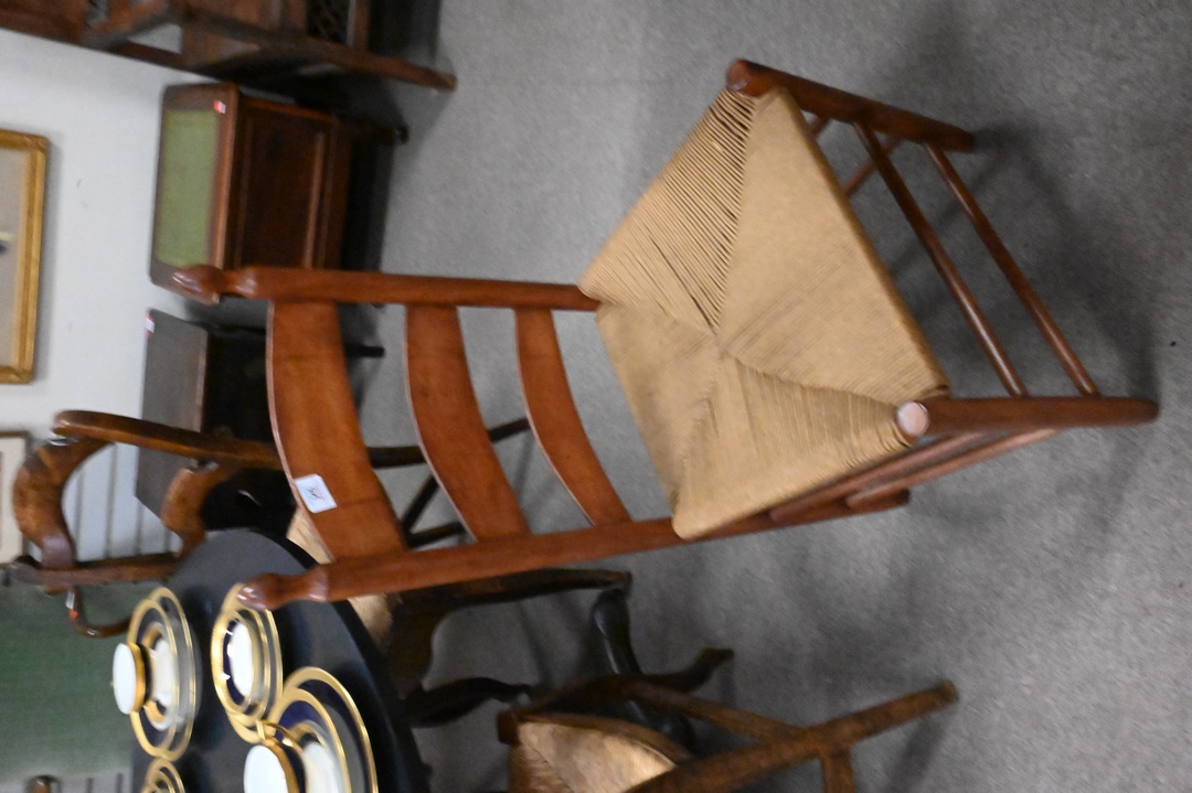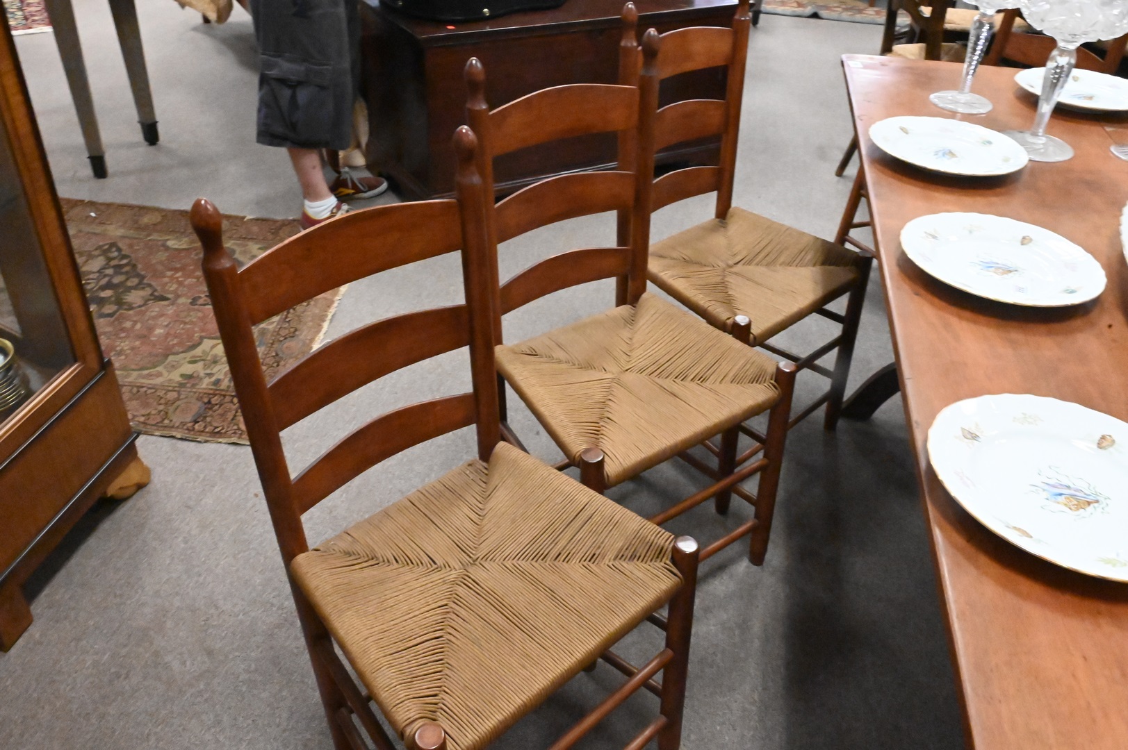 Set of 10 Shaker Style Ladder Back Dining Chairs, having rush seats, height 36 1/2 inches, seat height 18 inches.