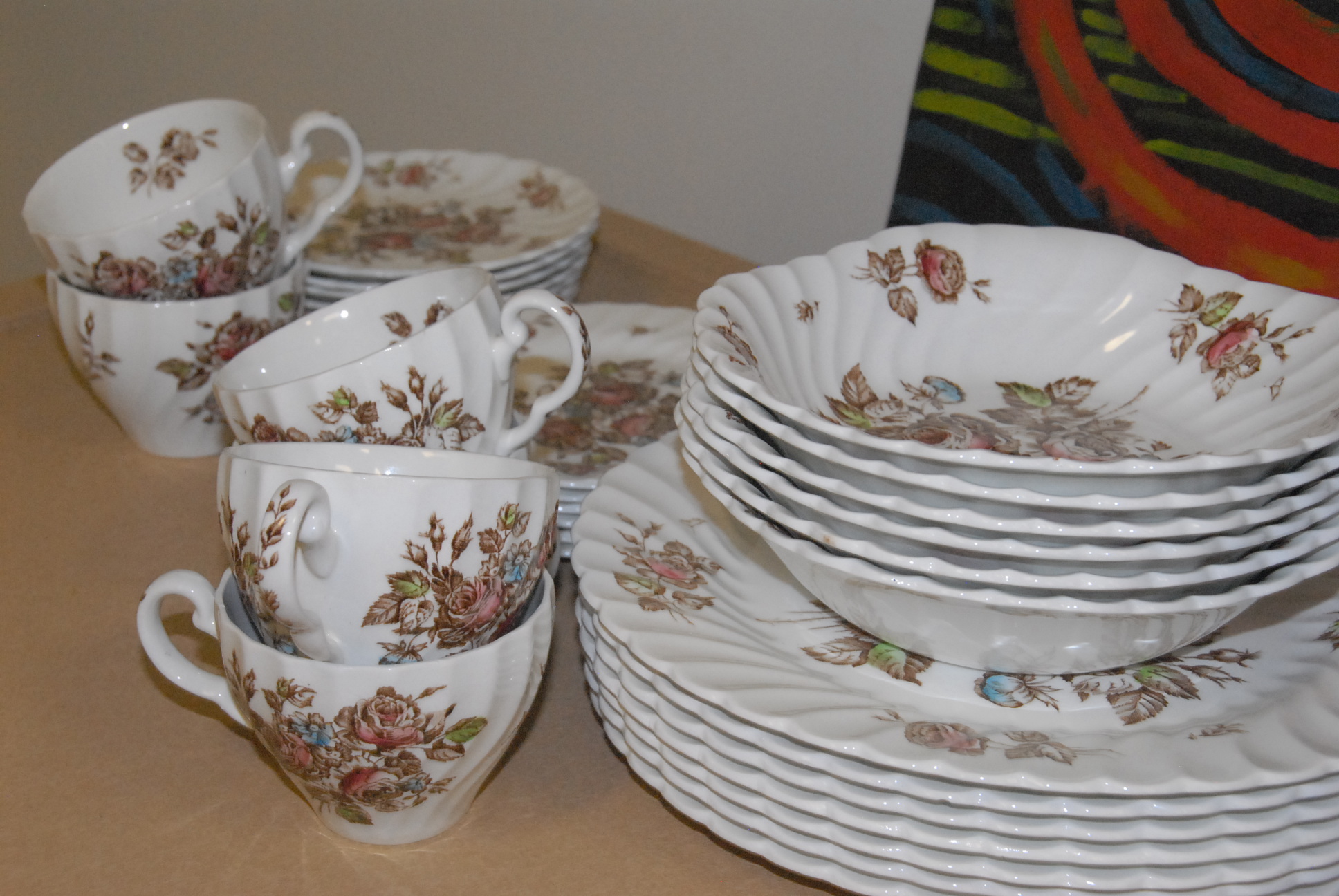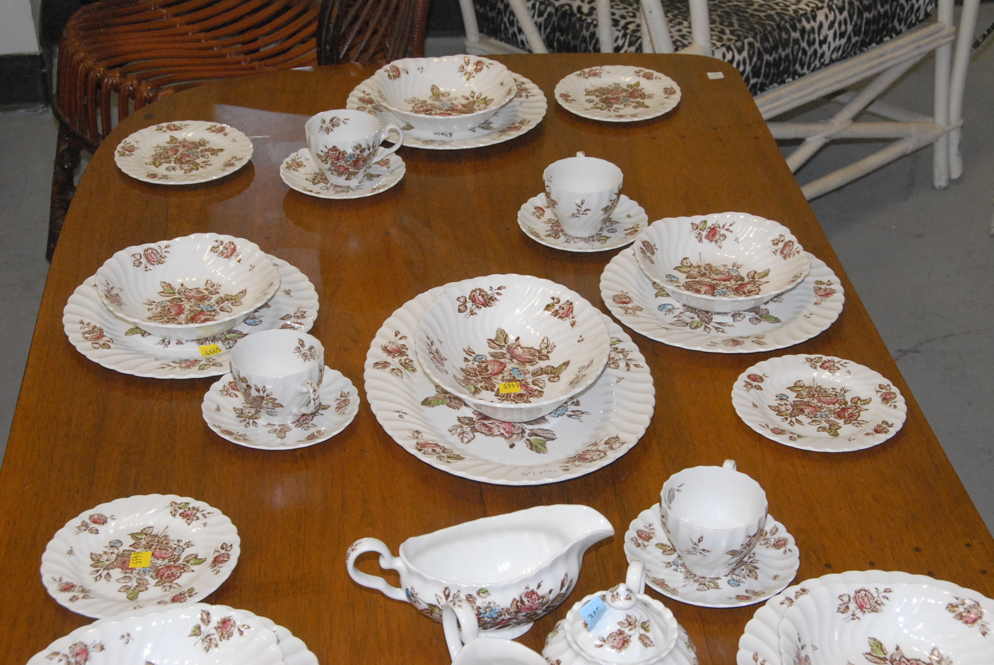 Set of Johnson Brothers Devon Sprays china dinnerware, 67 pieces.