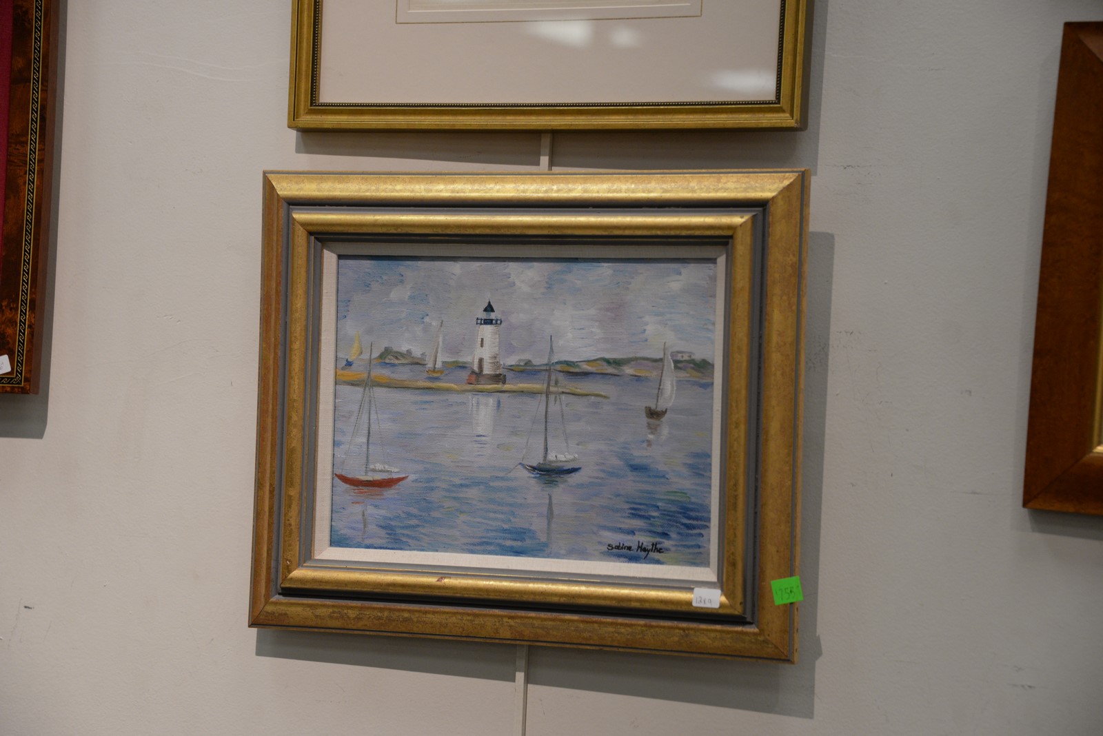 Lot 345: Seven framed prints and paintings including five Chas Crombie Rule prints, oil on canvas Sabine Haythe, and colored bird print.9…