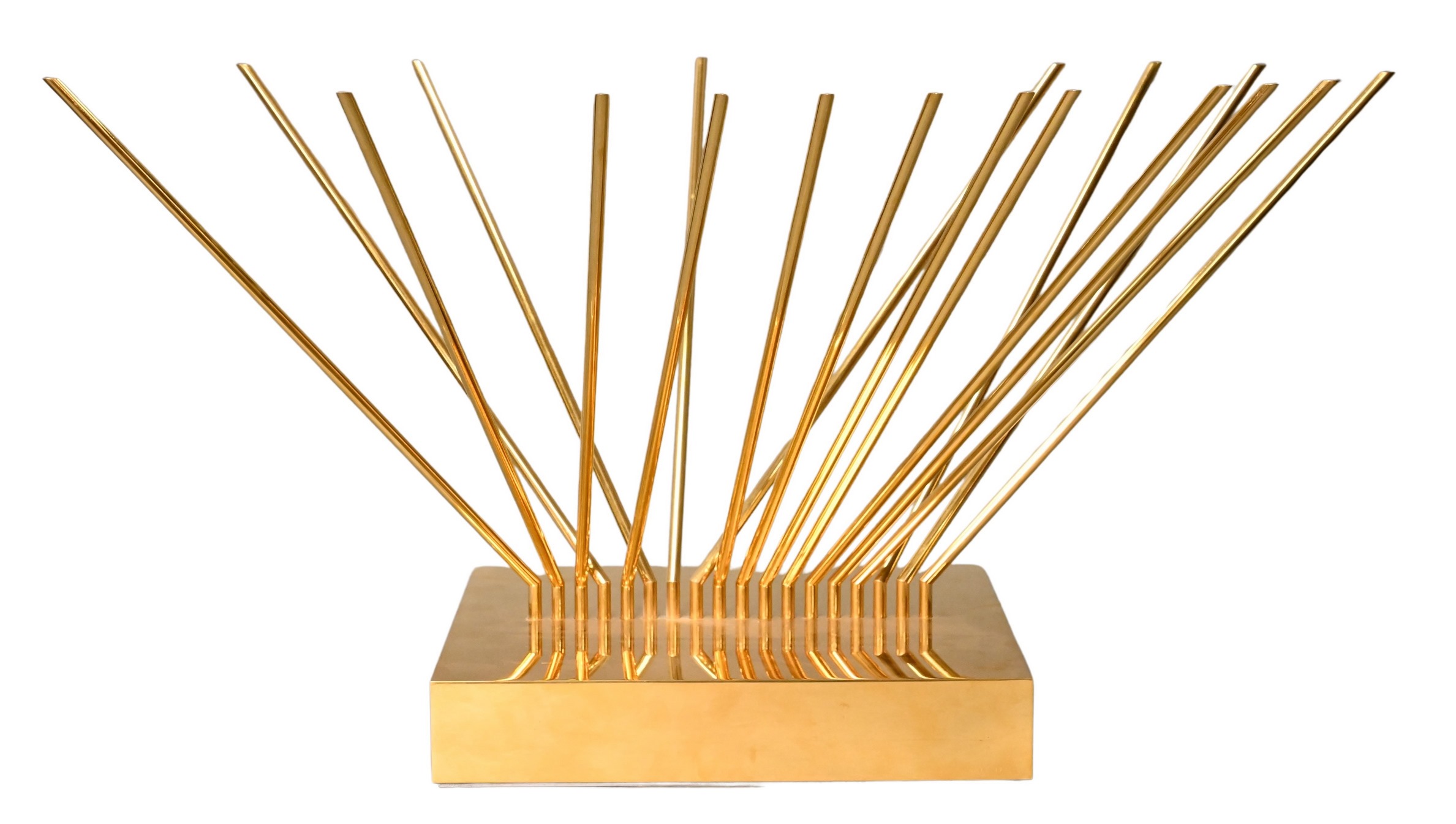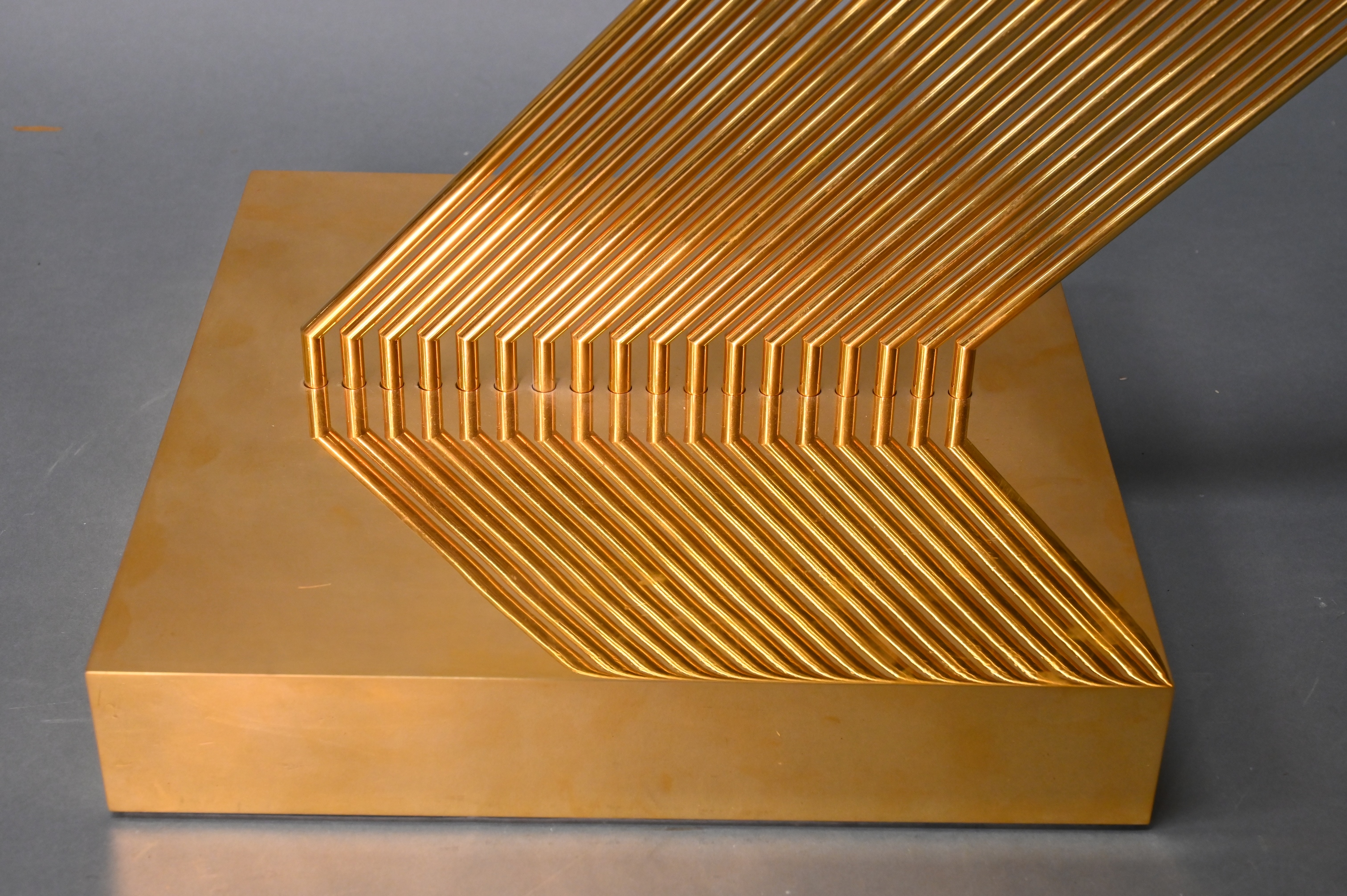 Brass with gold plating kinetic sculpture with multiple views, having 18 rods