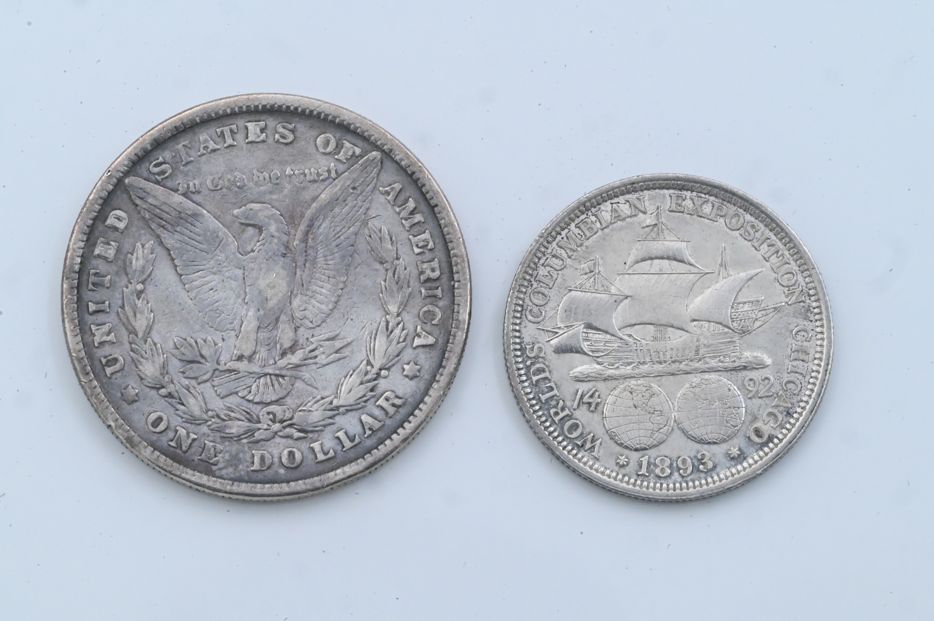 and an 1893 Columbian Exposition silver half dollar